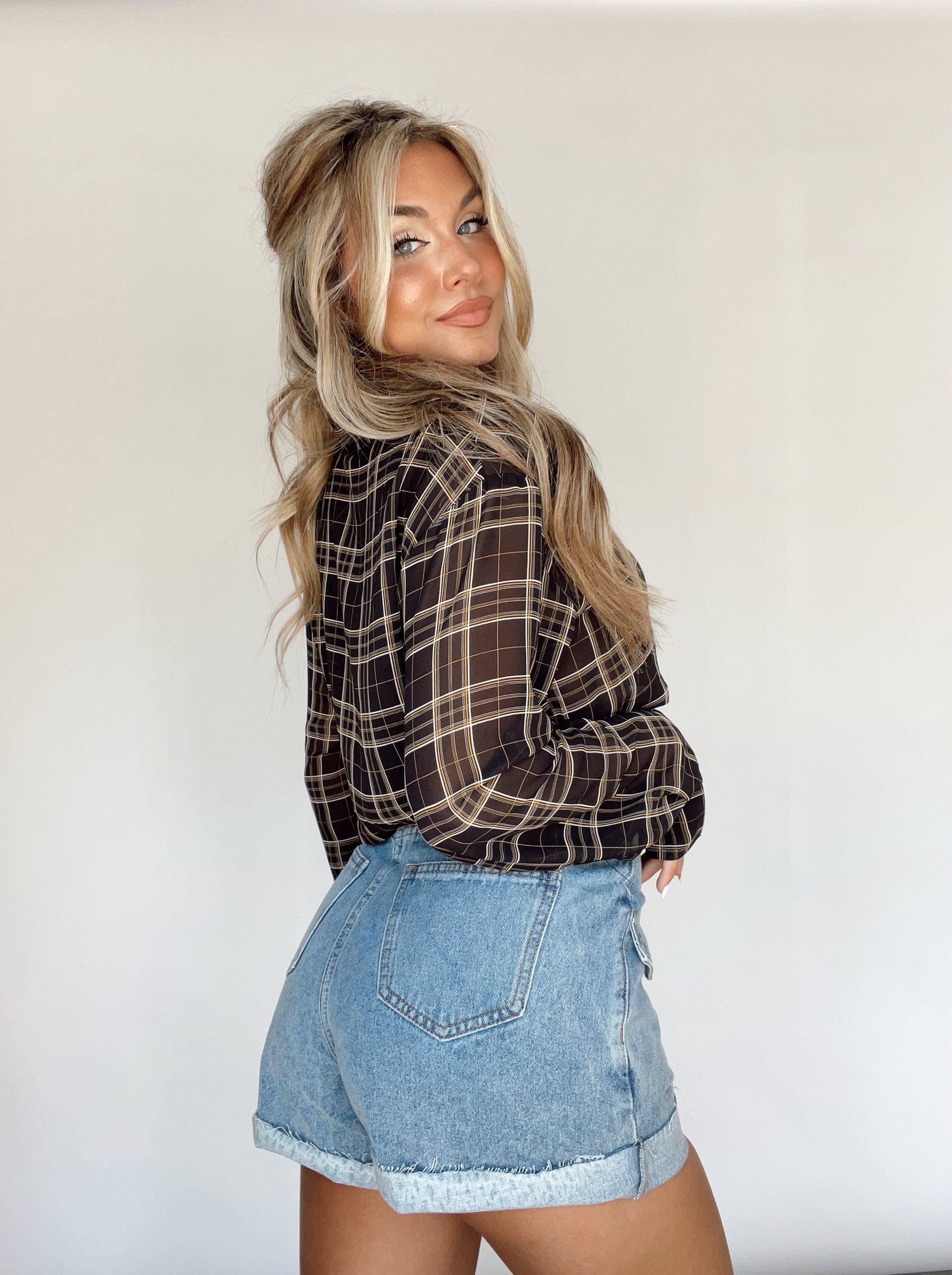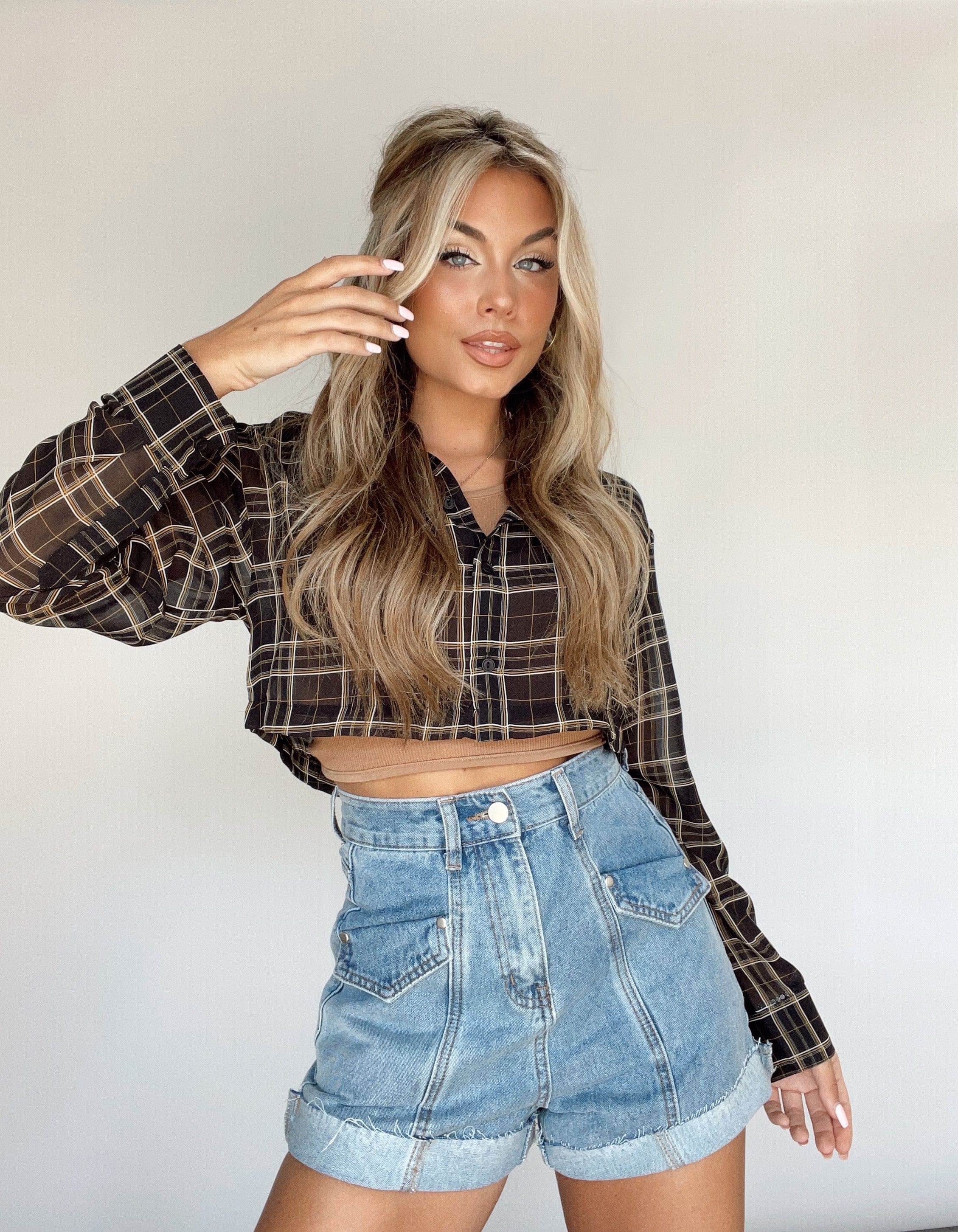 Shake up your weekday wardrobe with Lane 201's From The City Plaid Top! This sheer top features button closures and a cropped cut. You can keep it casual and simple with this top by pairing it with some denim and sneakers! This top is perfect for a fashion look that does not need much effort! Perfect to wear going out to eat with some friends!