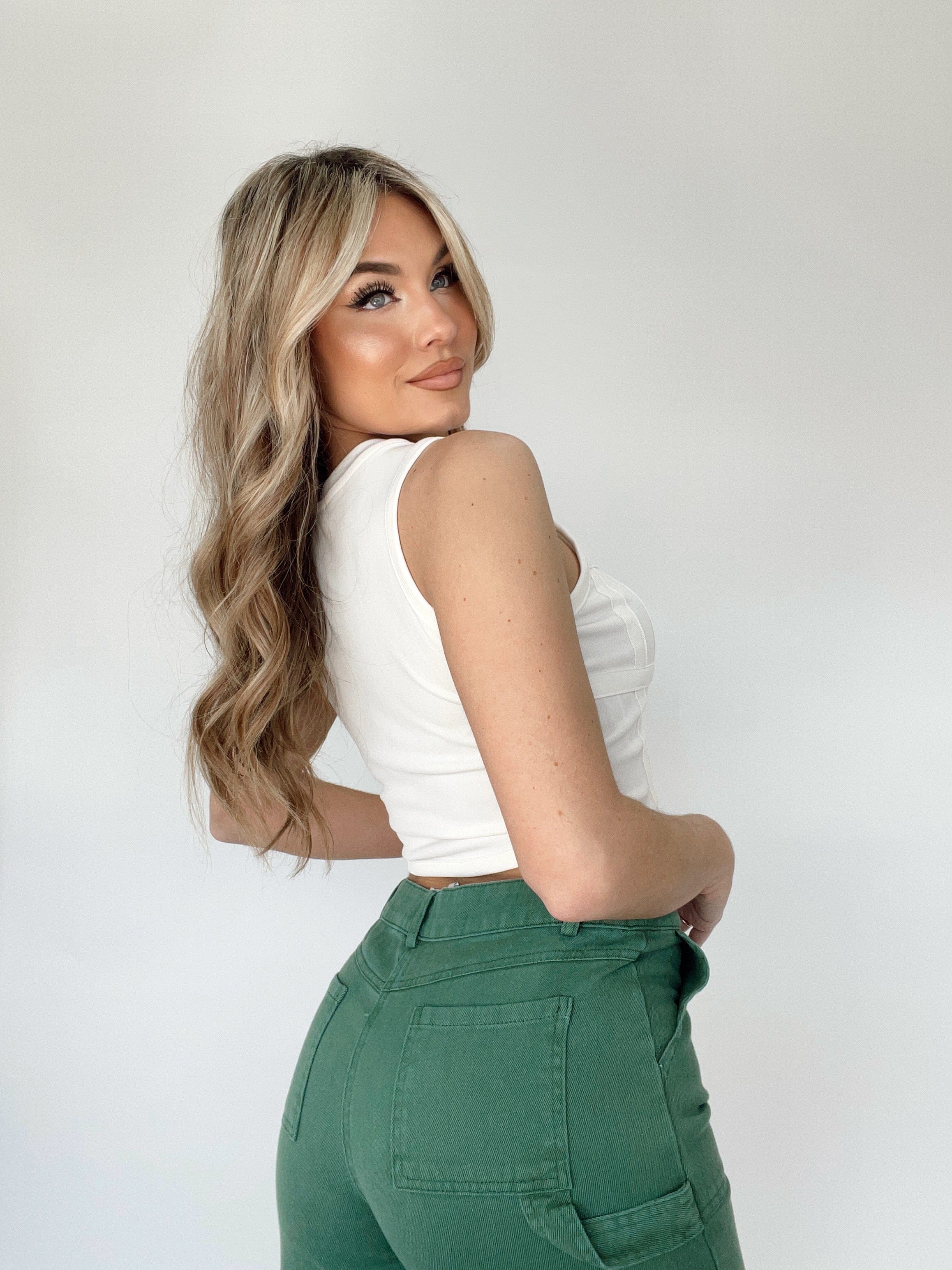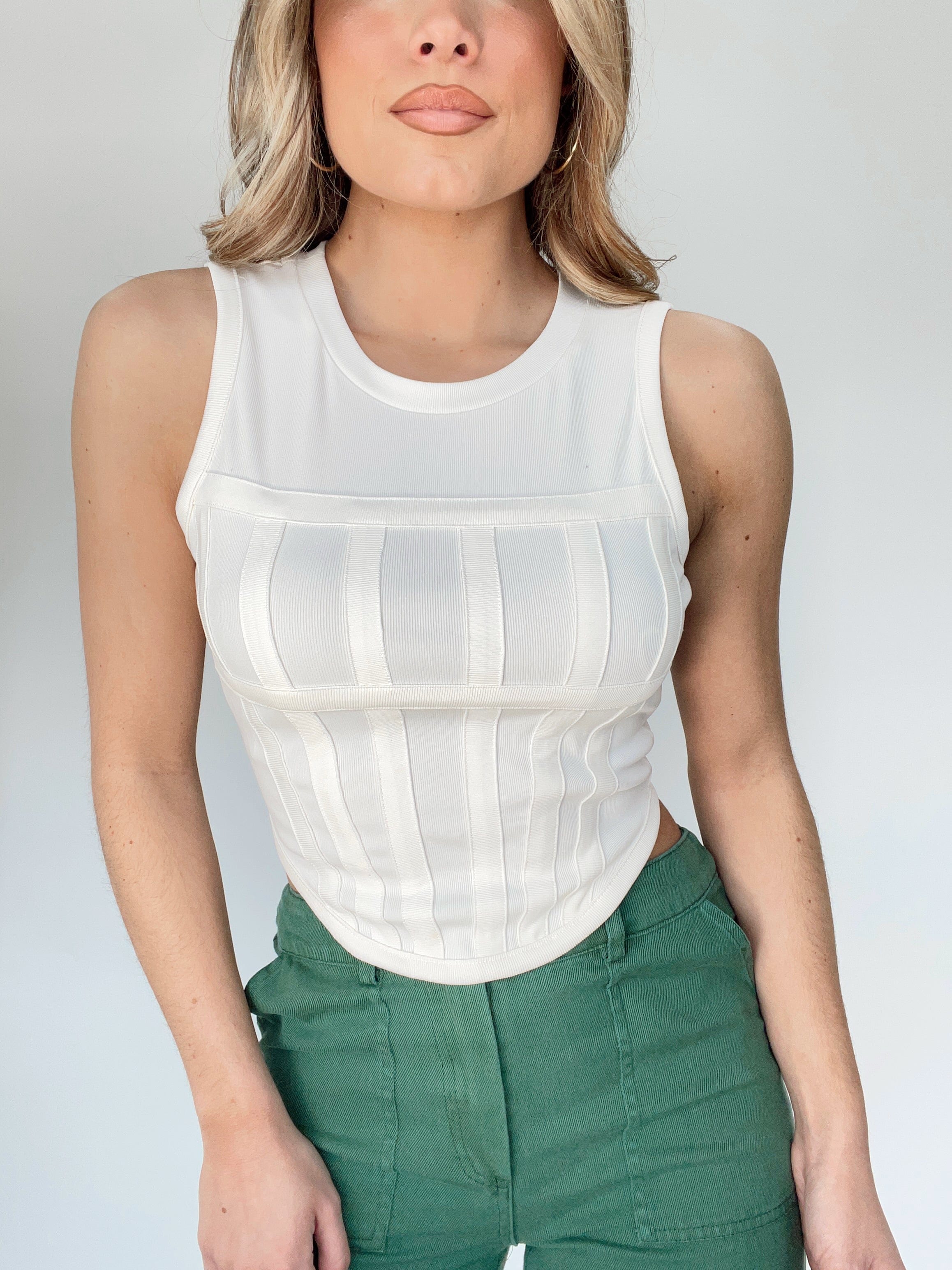 Stay looking fierce in Lane 201's Give Me A Reason Tank! This top features a super soft and stretchy ribbed knit material, a rounded neckline, corset details, a rounded hem, and a slightly cropped fit. The perfect piece to pair with your favorite cargos for an edgy and trendy look!