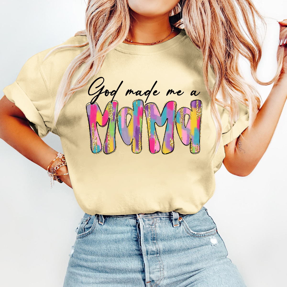 God Made Me A Mama Printed Round Neck Short Sleeve T-Shirt 9517344
