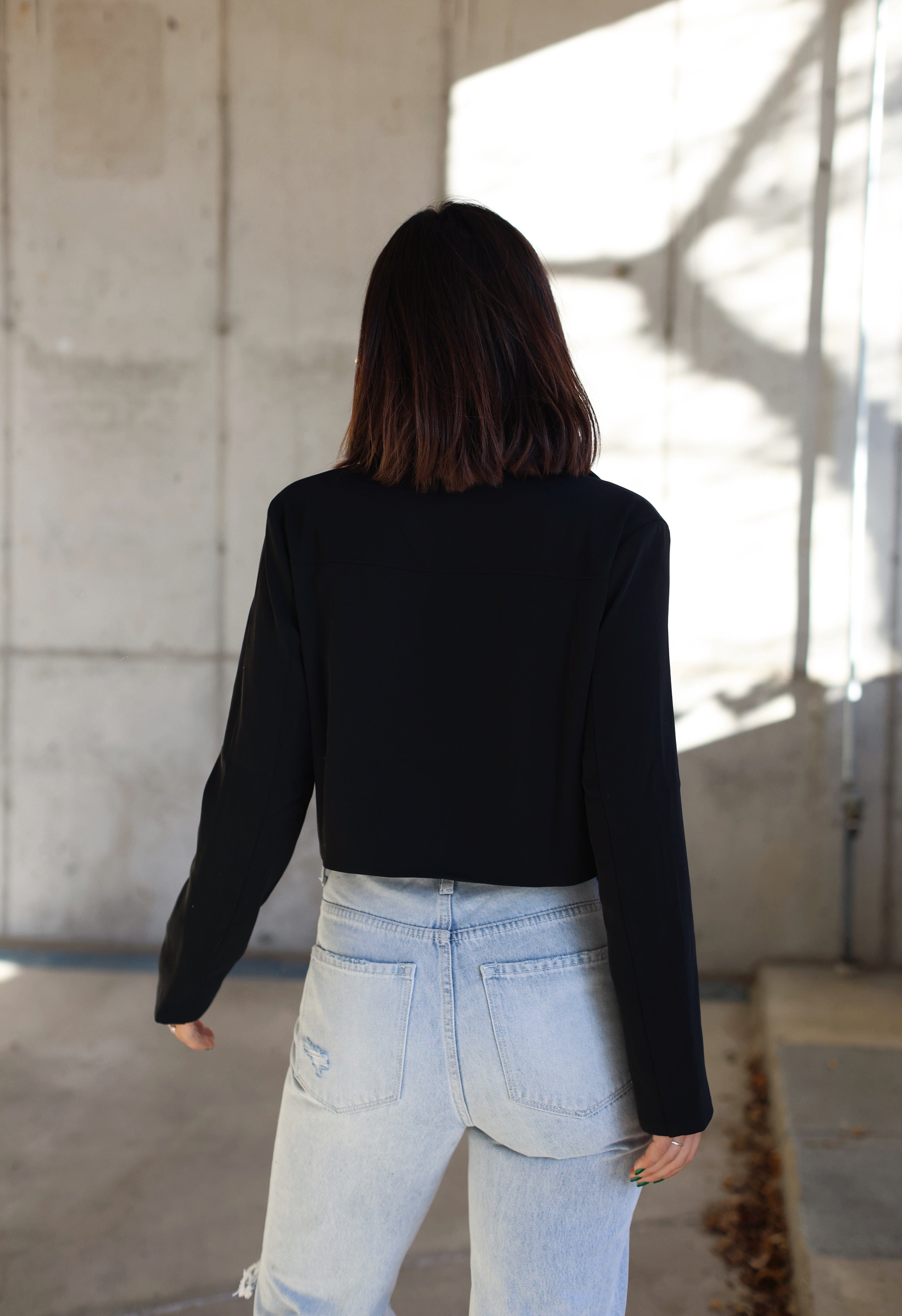 Experience luxury with the Good Rebel Jacket. Its sleek leather detailing, pocket details, and button closures provide both fashion and function, while its collar neckline and cropped silhouette offer a sophisticated and edgy look. This versatile transition piece is both soft and comfortable, with an elevated style that’s both chic and timeless. Perfect for any occasion.