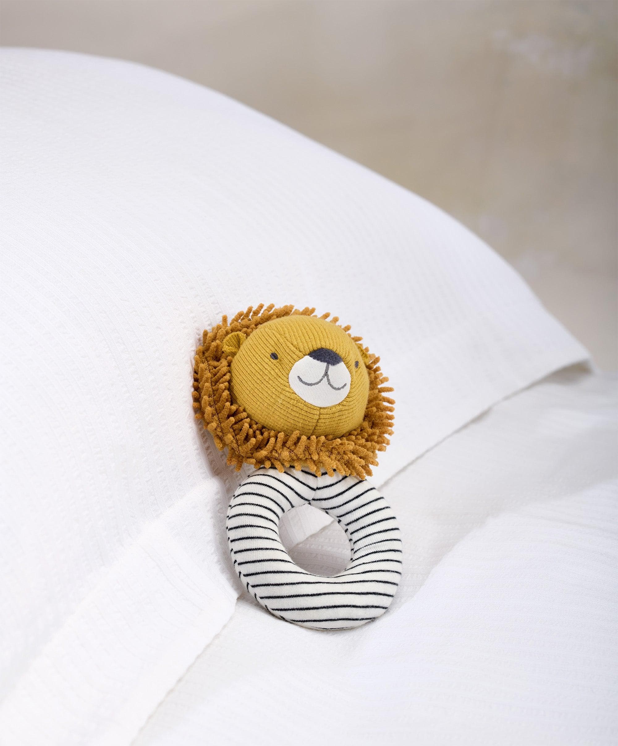 Little hands love to grab this playful lion. Watch as they discover what he’s hiding, a hidden rattle that noises when shaken!