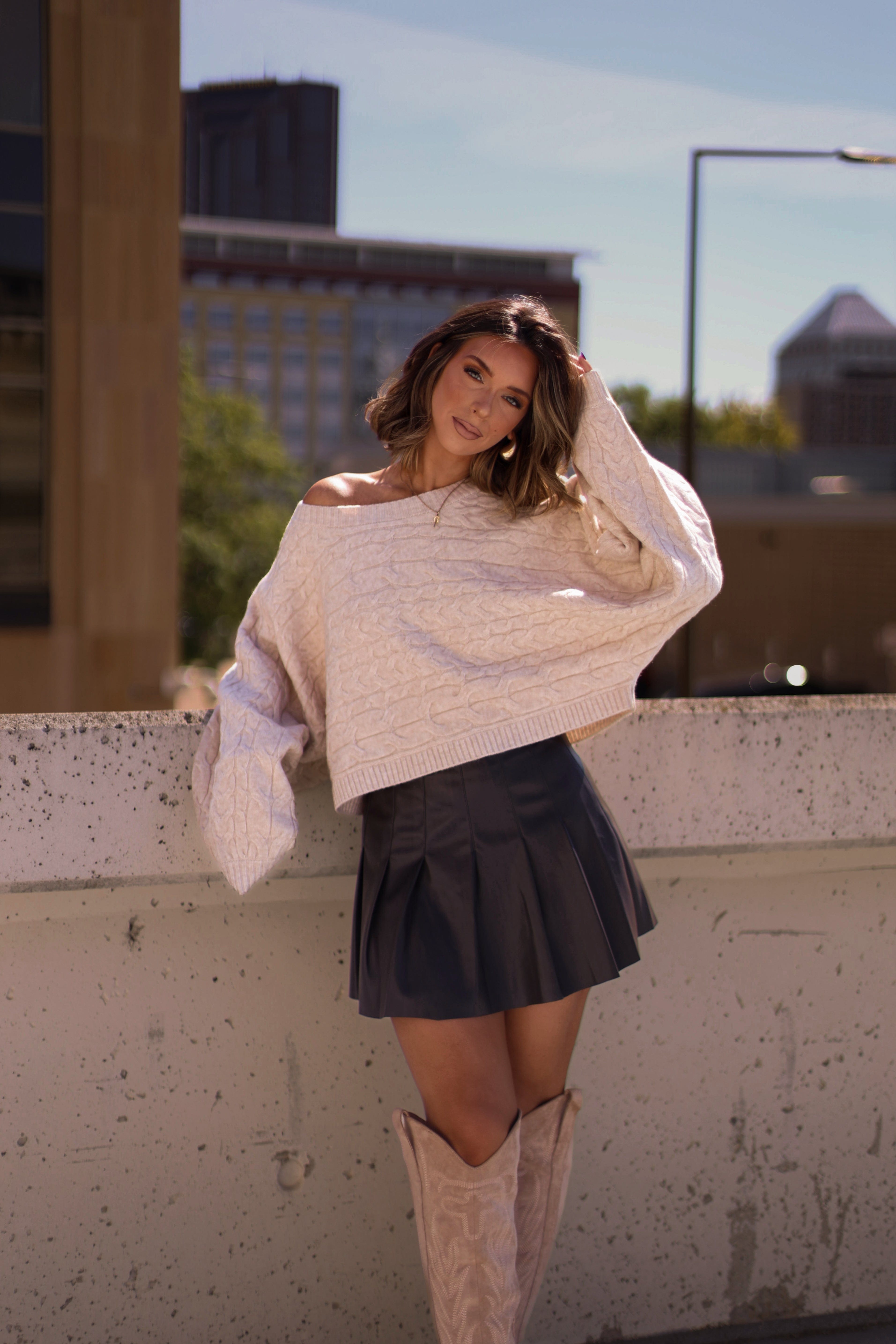 Make a statement with the sophisticated and stylish Grateful Gathering Sweater, featuring a rounded neckline, knit cable stitch, and neutral color to add subtle elegance to any ensemble. Crafted with soft, stretchy fabric, the relaxed fit and versatile style makes it the perfect elevated staple to easily transition from brunch to dinner with friends, shopping, or work. Feel cozy and warm in the must-have fall piece for a memorable evening.