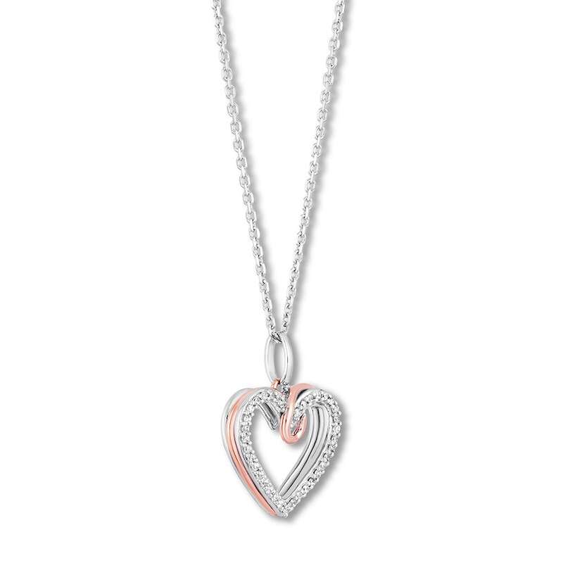 Hallmark Diamonds Heart Necklace 1/10 ct tw Sterling Silver & 10K Rose Gold 18"