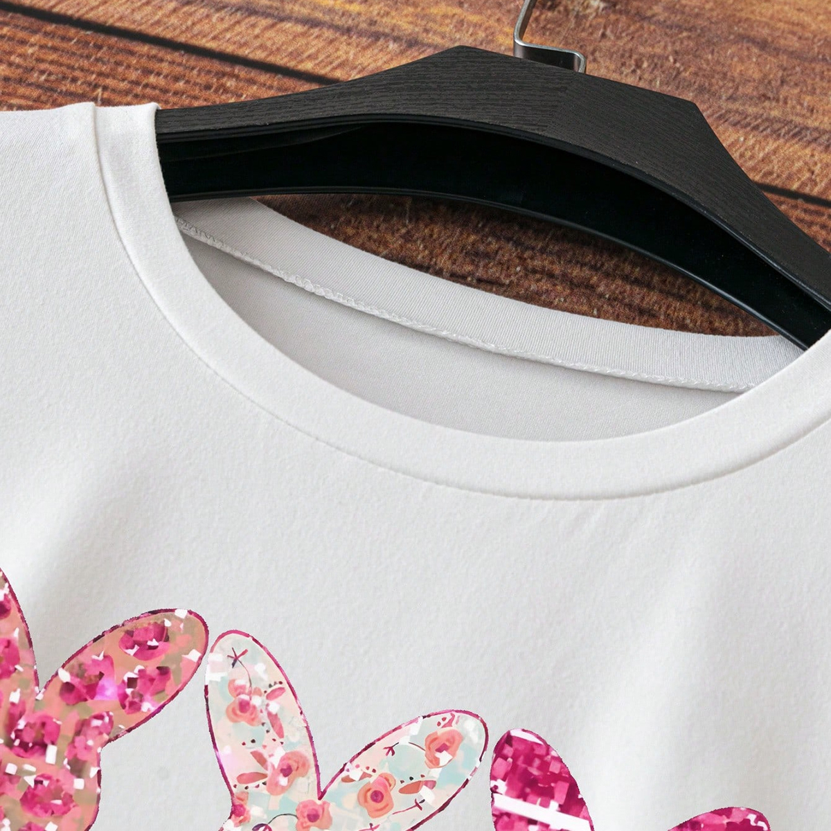 Happy Easter Printed Round Neck Short Sleeve T-Shirt