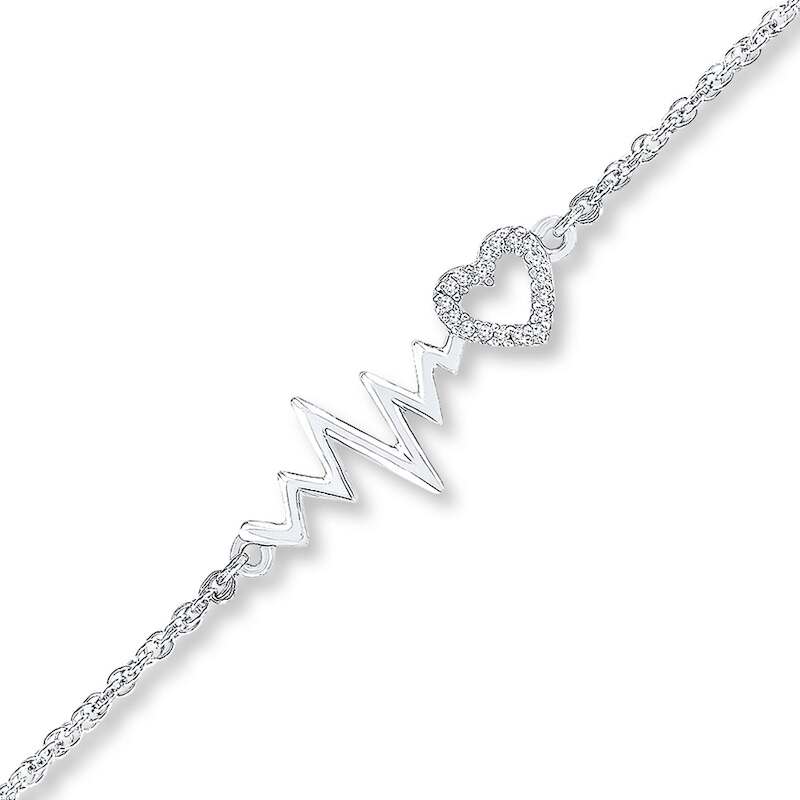 Twinkling diamond accents adorn this pretty heartbeat anklet for her. Styled in sterling silver, the 9-inch rope chain fastens with a lobster clasp.