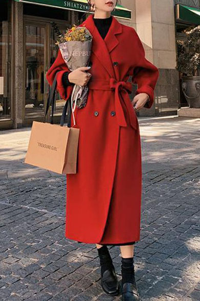 Hepburn Solid Color Double Breasted Wool Coat 169247