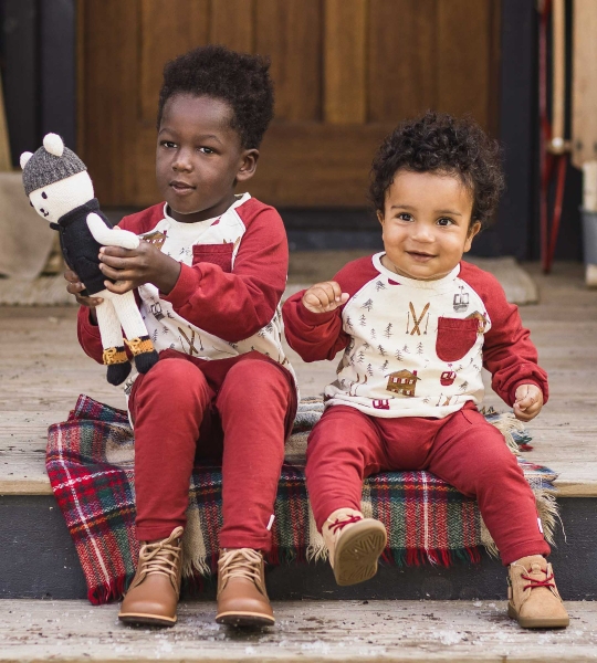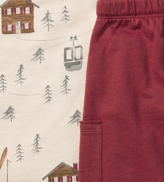 Gear up for alpine adventures and holiday cheer with our Holiday in the Alps Shirt and Pant Set, designed for cozy winter fun. Playful hand-painted alpine-themed print captures the charm of snowy mountain adventures.