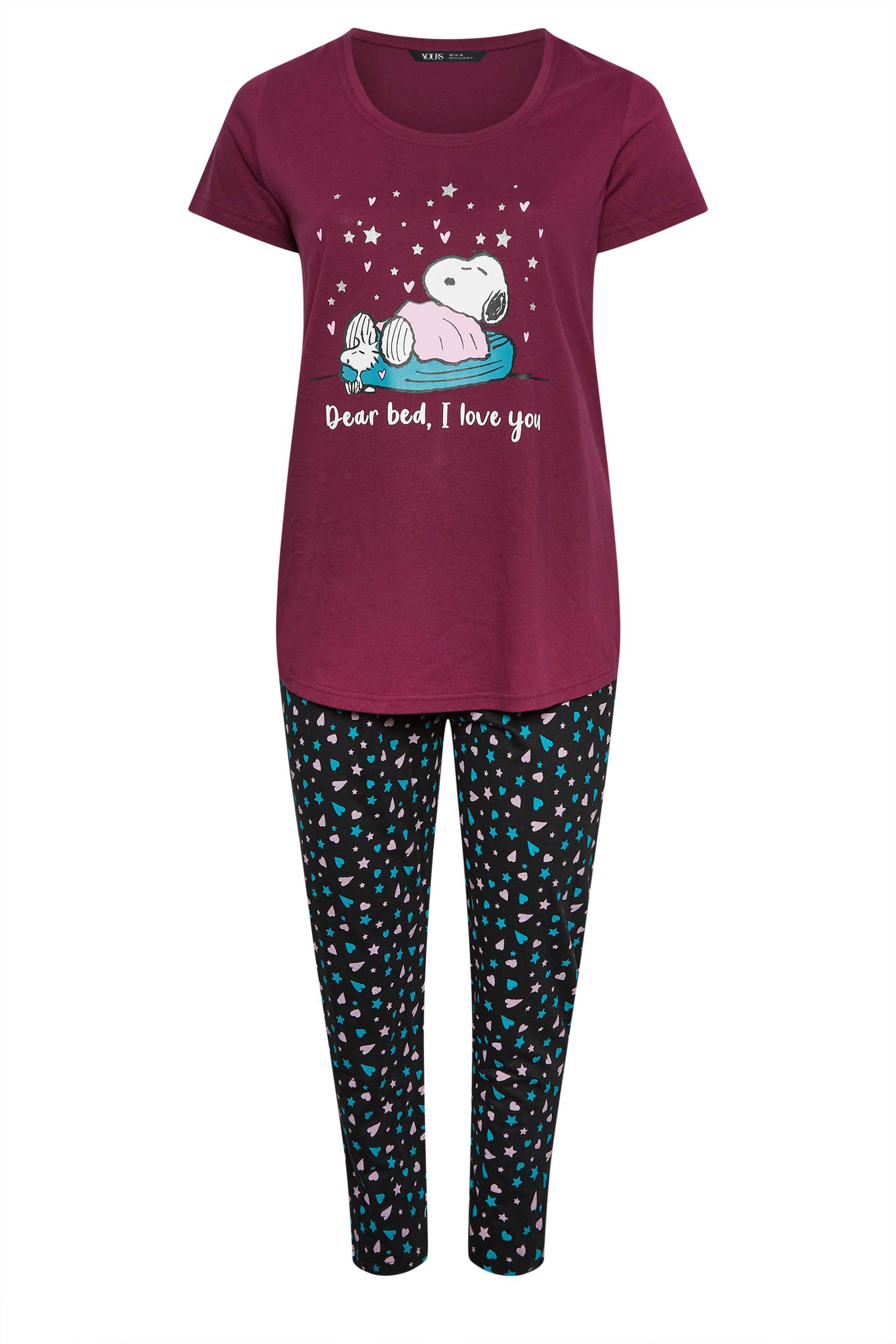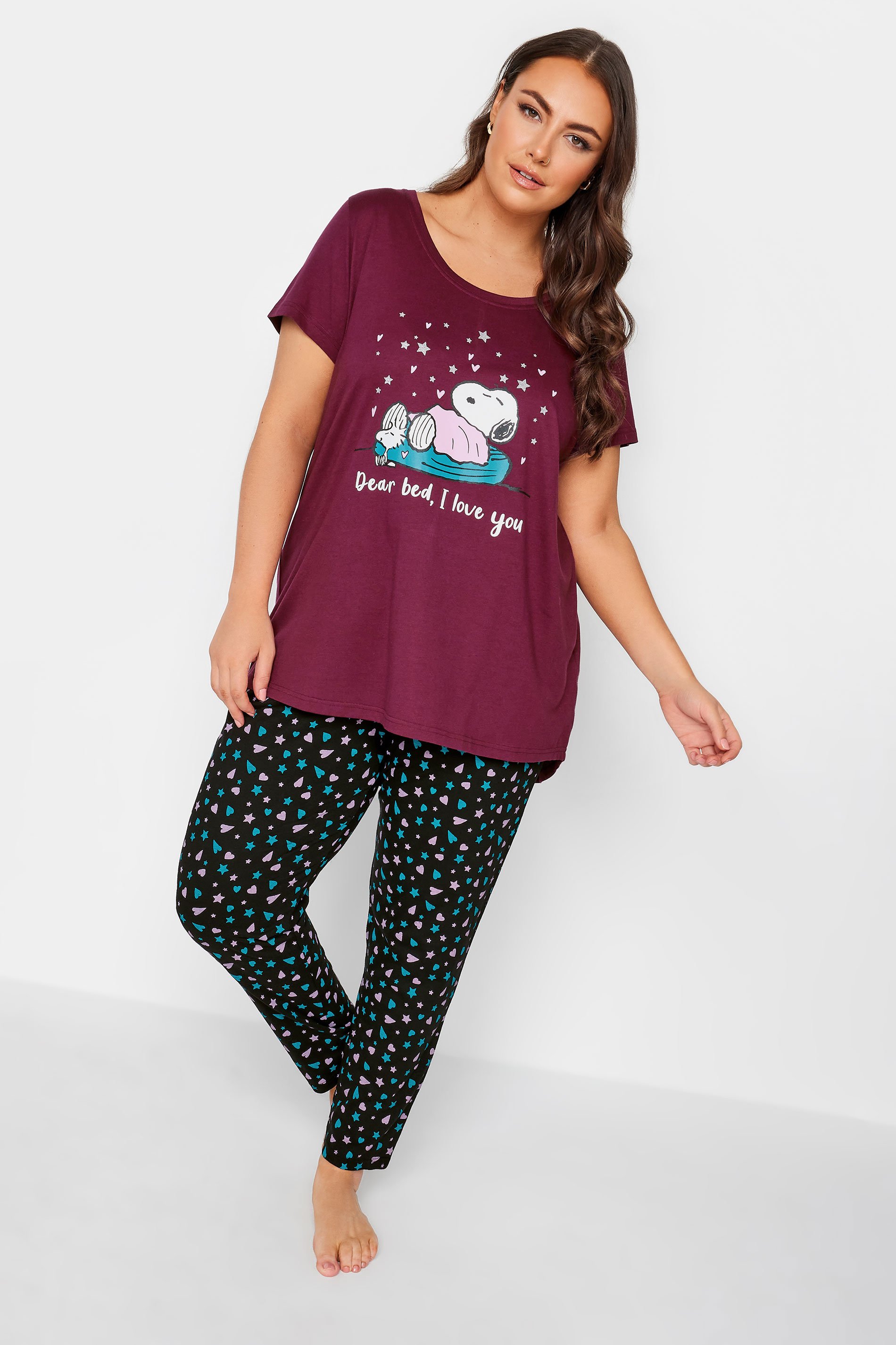 YOURS Curve Burgundy Red 'I Love You Snoopy' Slogan Pyjama Set 251854