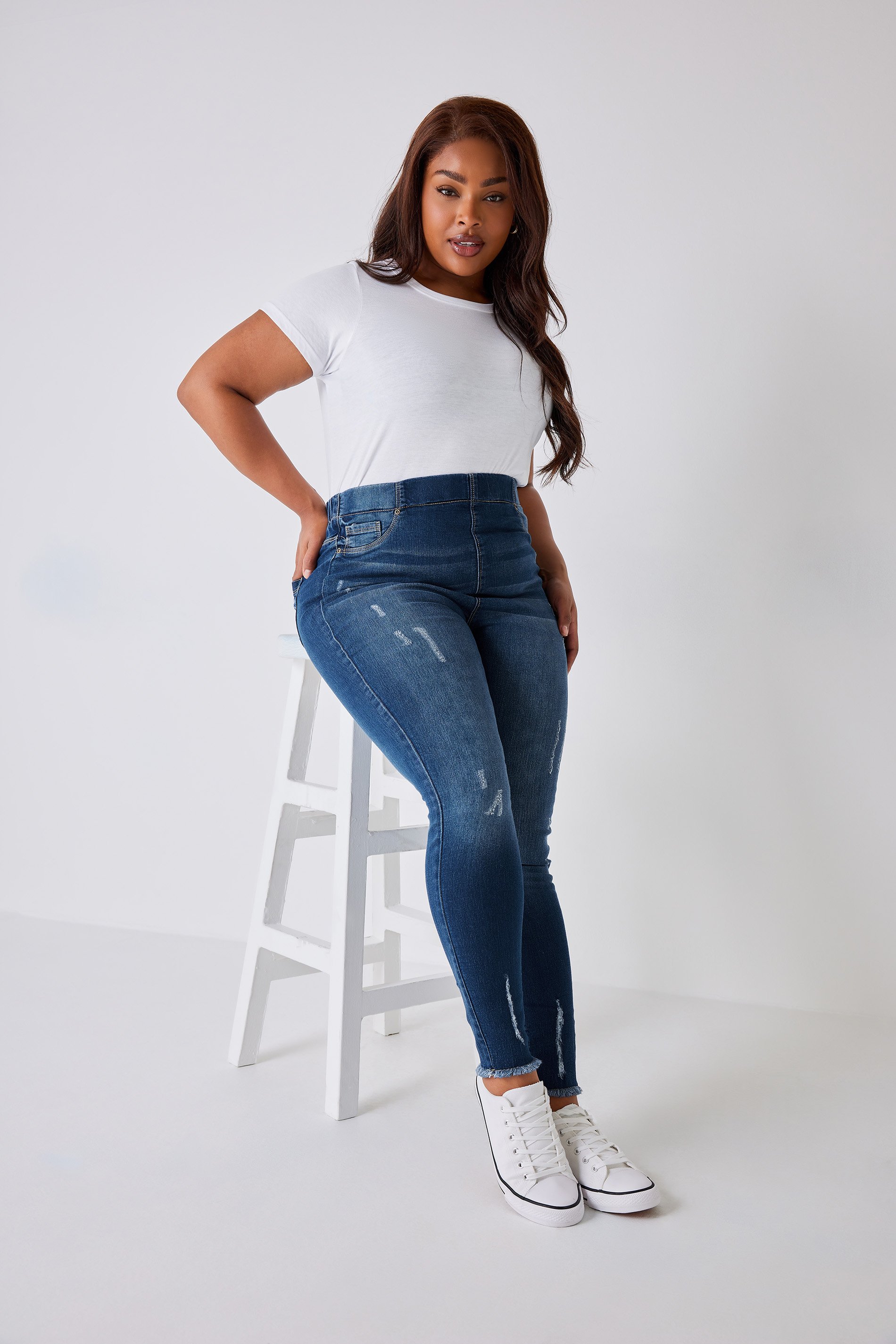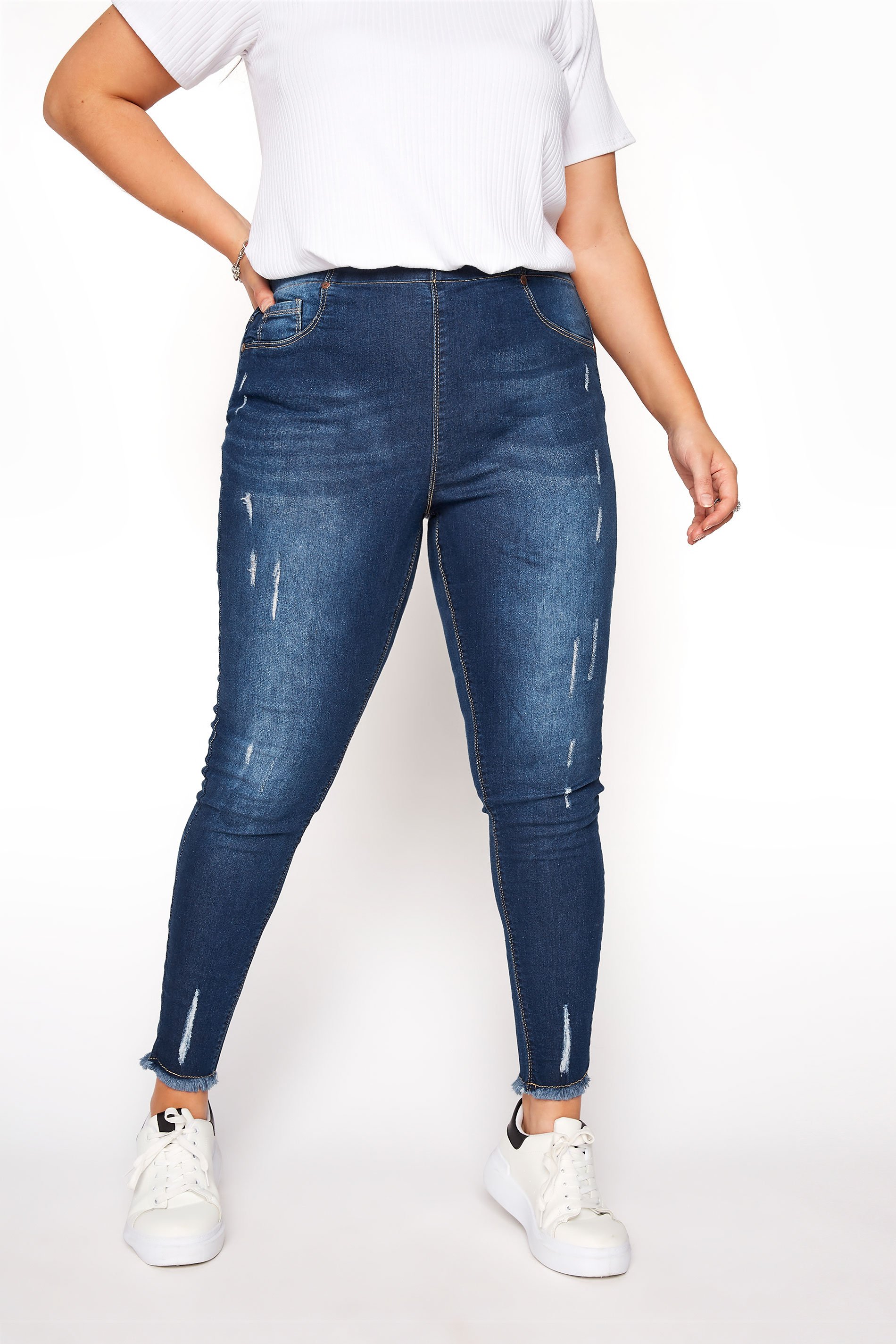 Freshen up your denim collection with these stylish jeggings. Comfortable in responsibly sourced cotton and part of our 'Yours For Good' range, they feature distressed ripped details and a frayed hem for a fashion forward finish. Simply style with a slogan tee and trainers for off-duty appeal.