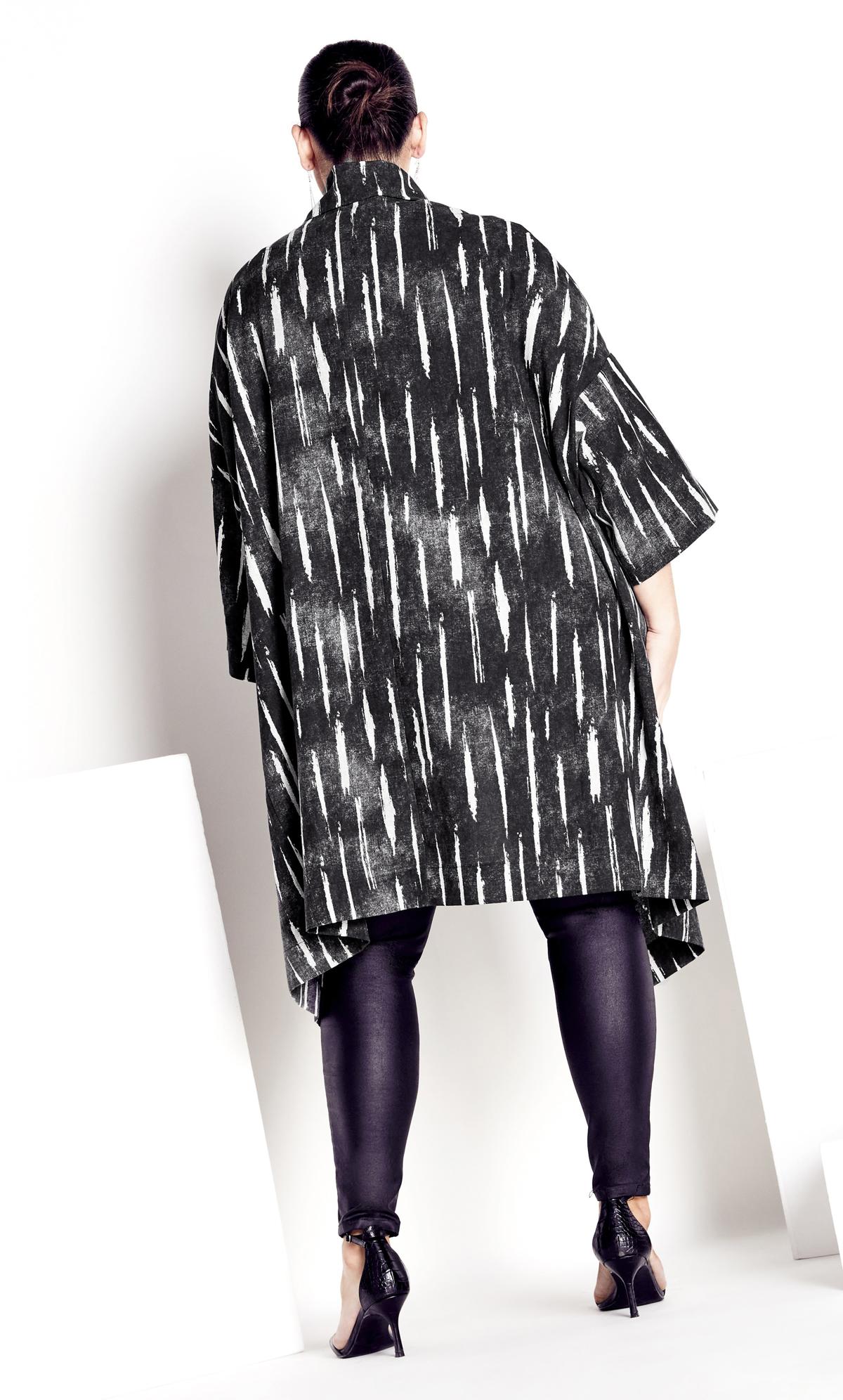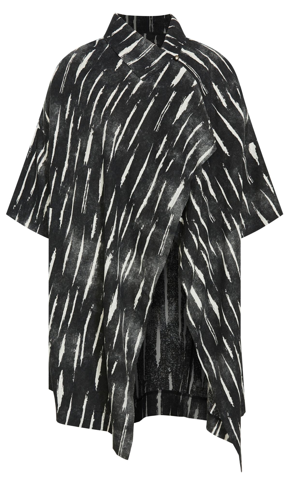 Elevate your style with the Navabi Black Stripe Cape Jacket. Combining classic black stripes with a modern cape style, this jacket is a versatile and elegant addition to any outfit. Perfect for both formal occasions and casual ensembles.