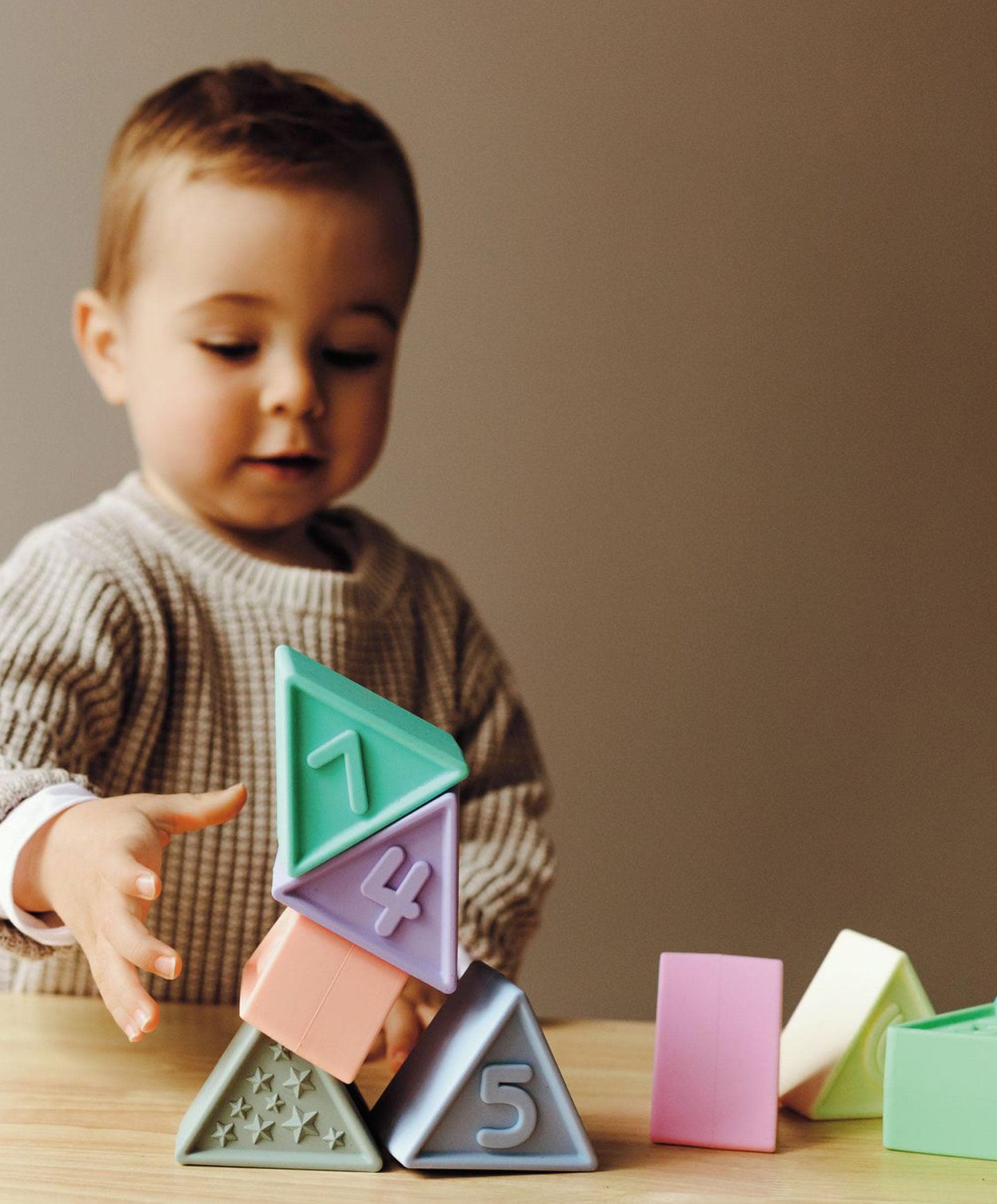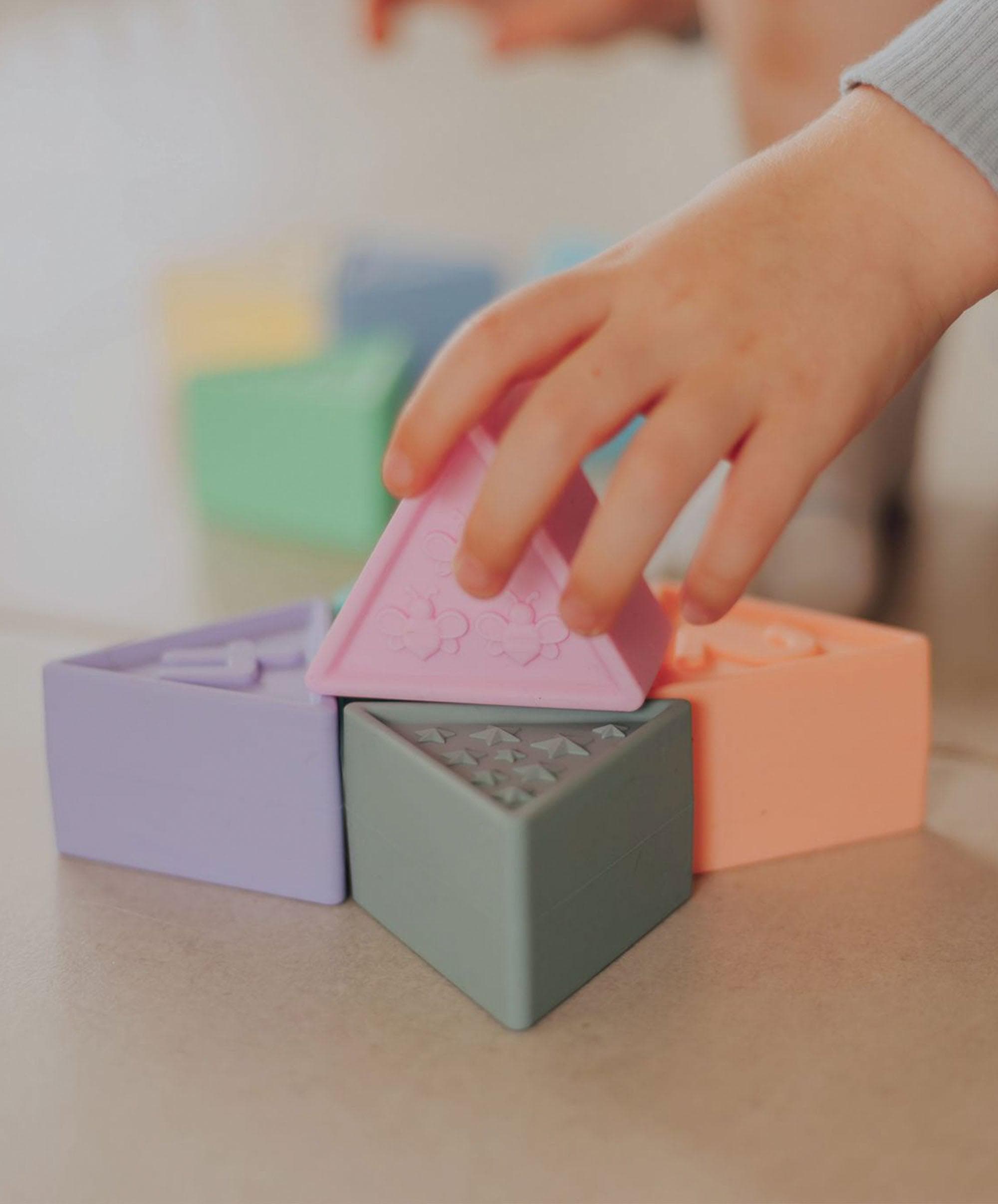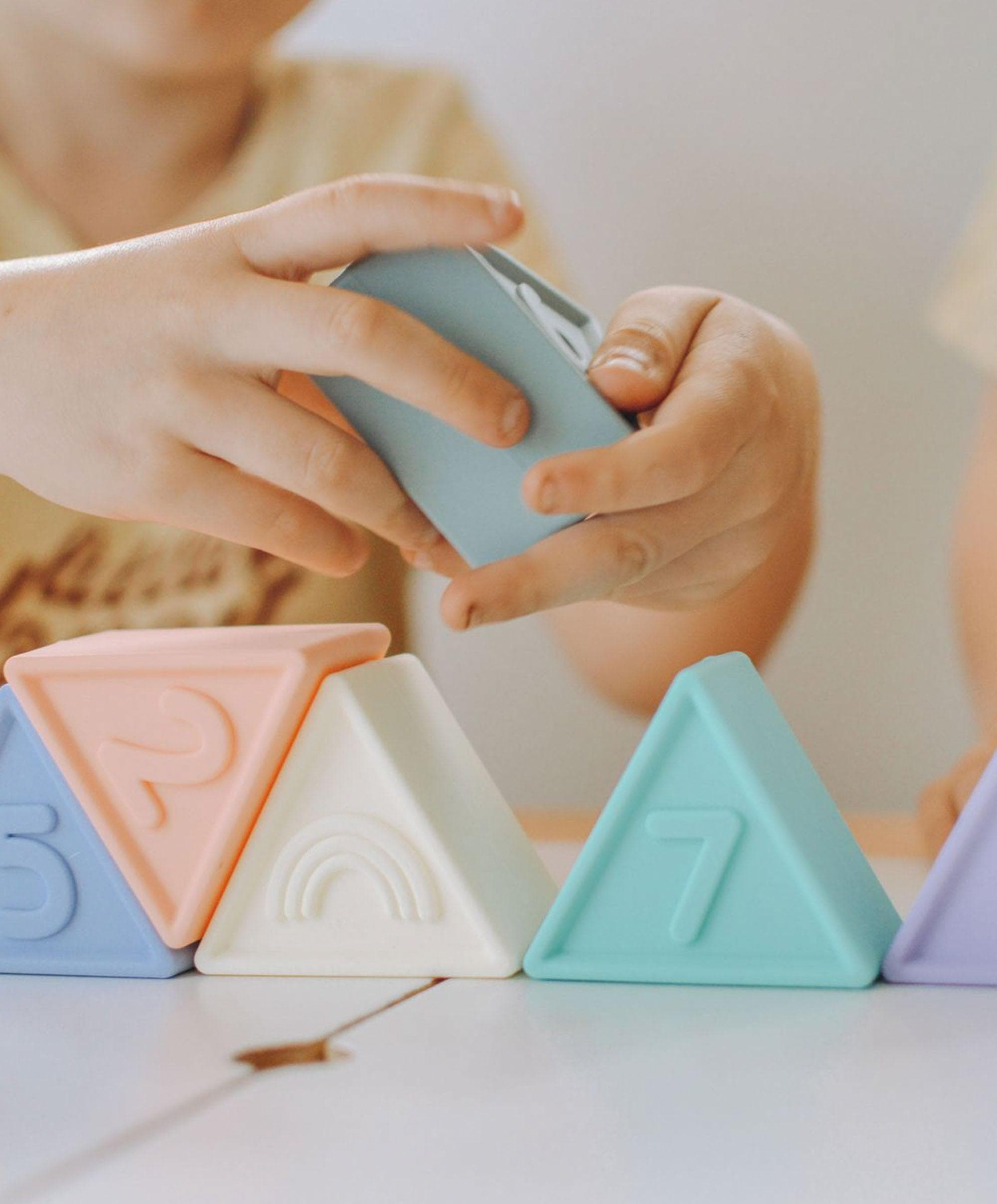 Introducing Jellystone Designs' Triblox! 9 Triangle Blocks made from toxic-free silicone that little ones can use to build, stack, and learn. Perfect for open-ended play, each colourful block features a number and corresponding illustration on the other side for added learning opportunities. Triblox is an excellent way for little ones to channel their own creativity and direct their own play!