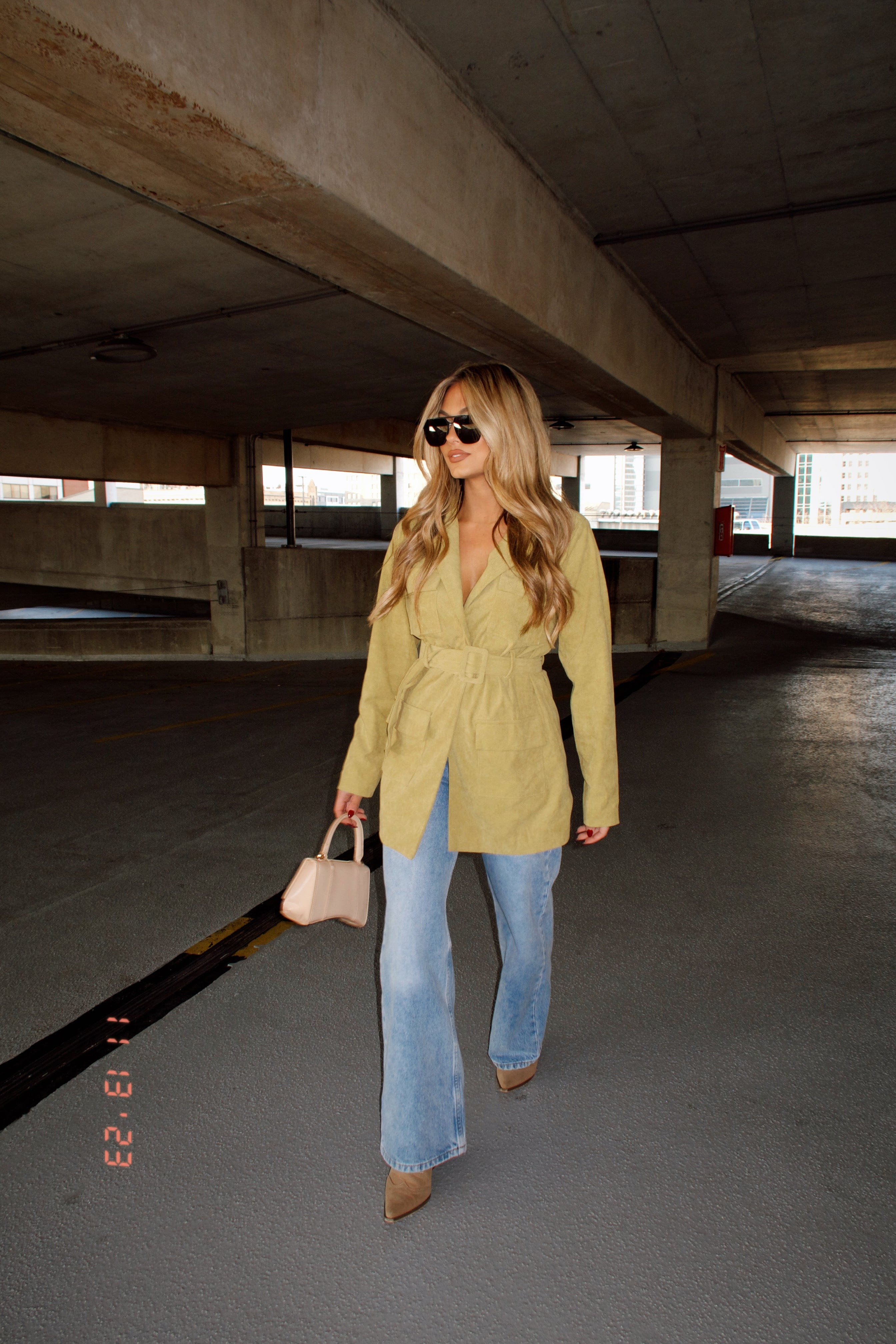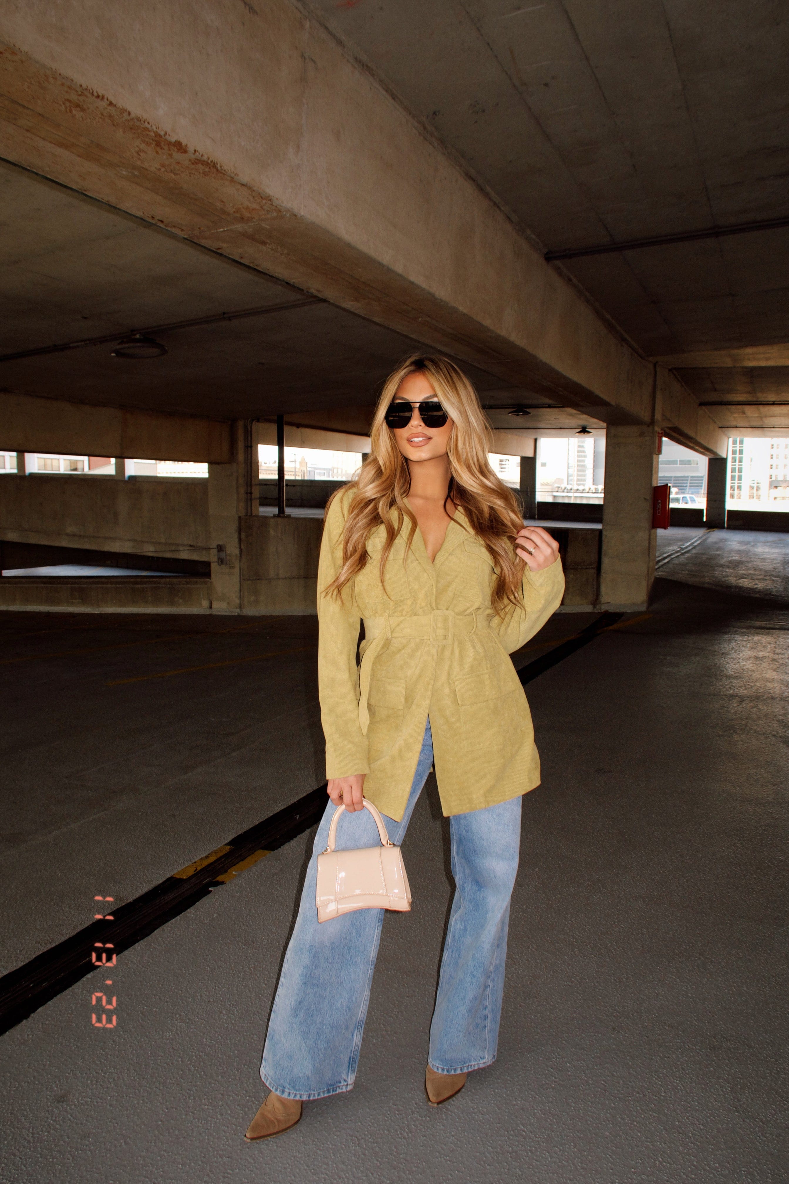 Ditch the ordinary and soar in style with this jet setting jacket, featuring a corduroy fabric and a chic collared neckline. The perfect blend of comfort and sophistication, this eye-catching piece's belt detail and relaxed fit adds a lively pop of color to any outfit, from an all-day workwear look to dinner and drinks. With its vibrant and fresh style, you'll be sure to stand out wherever the day takes you.