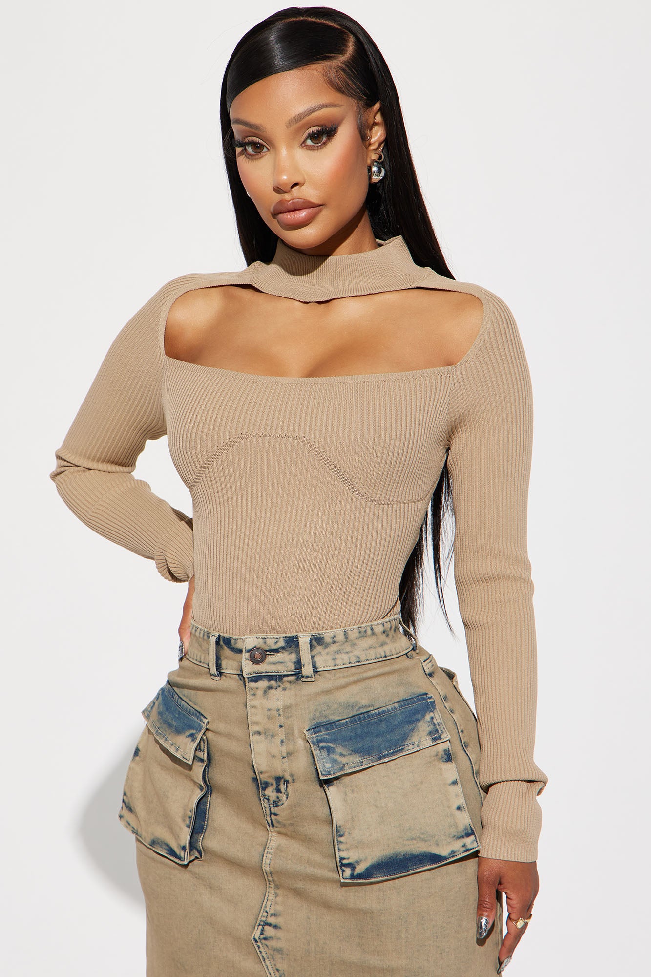 Jodeci Sweater Bodysuit - Taupe