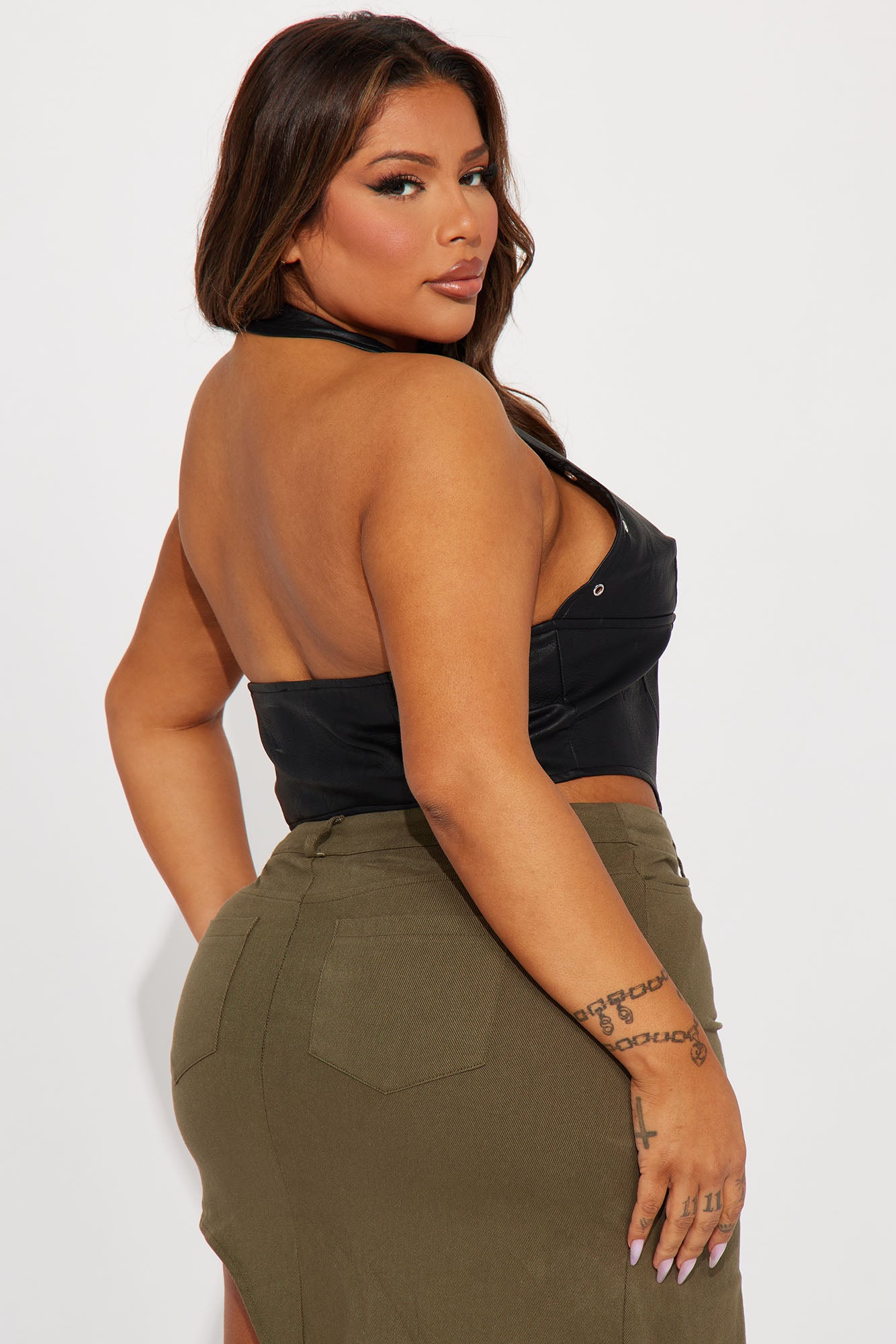• Faux Leather Corset Top