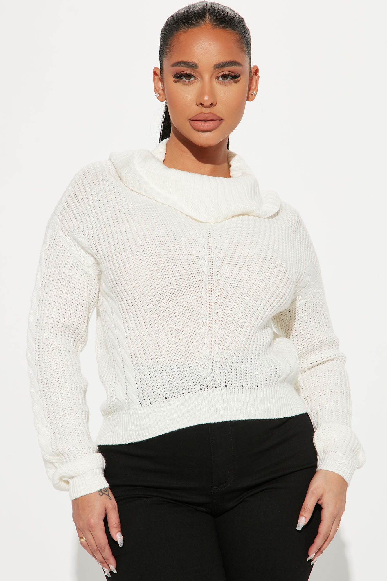 Keep On Guessin' Cowl Neck Sweater - Ivory 284739