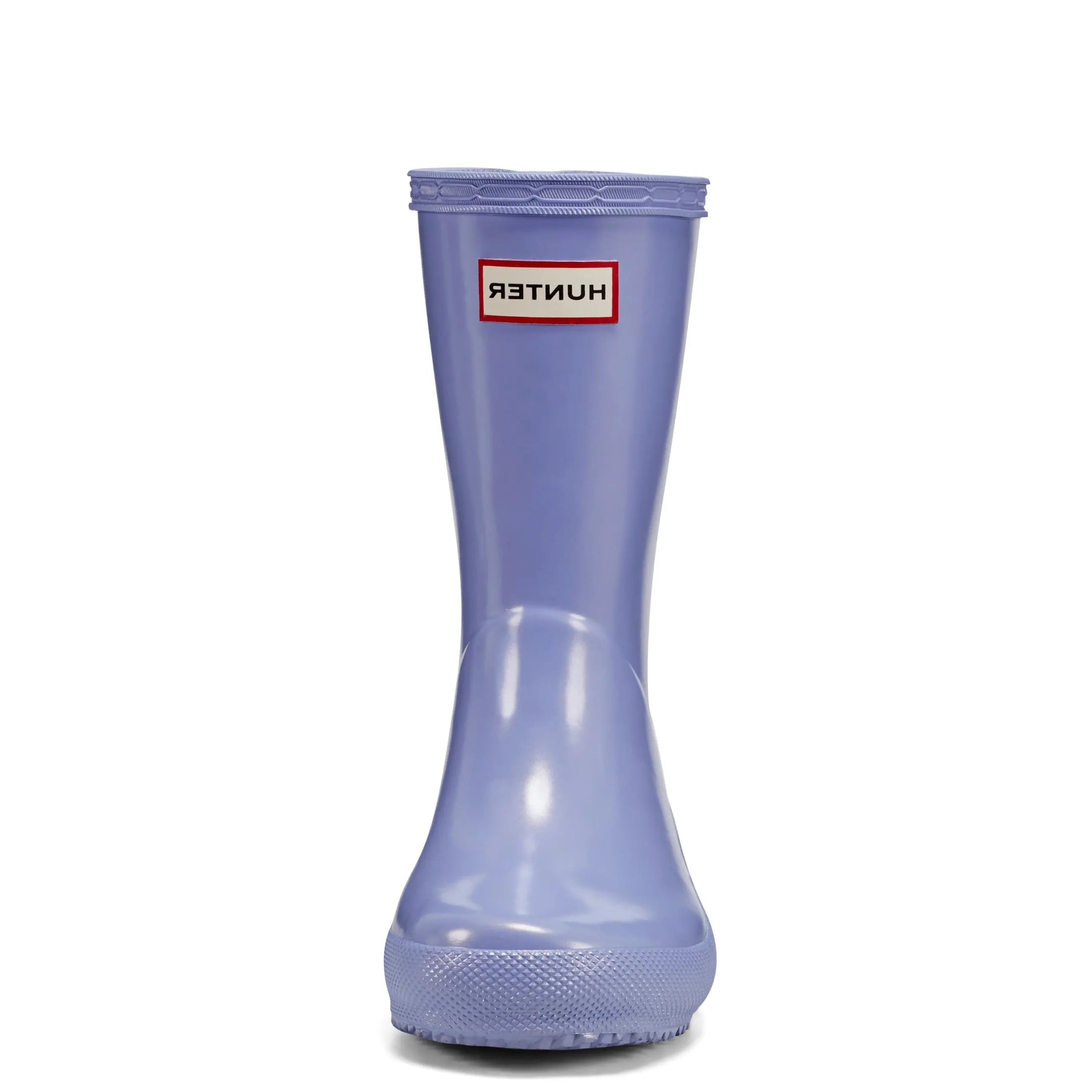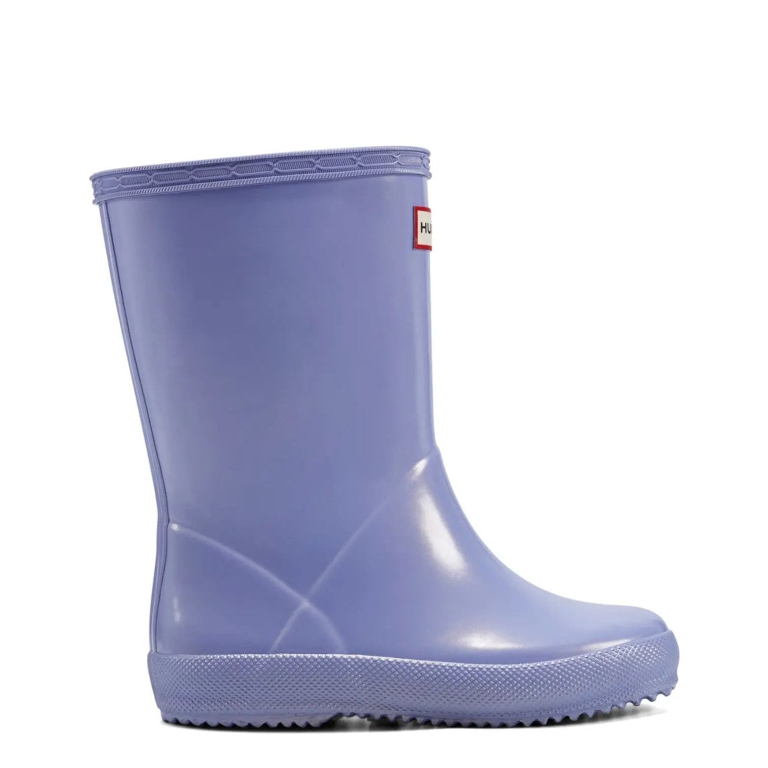 The Kids First Classic Boot is given a glittering update with a two-tone iridescent finish. Handcrafted from natural rubber, these fully waterproof boots have a flat outsole for stability and a rounded toe gives little toes room to move. Similar to the adults Original Boots, the specially developed tread on the calendered outsole provides grip across various terrains and the soft recycled polyester lining ensures comfort. Little feet will be protected on any adventure, rain or shine.