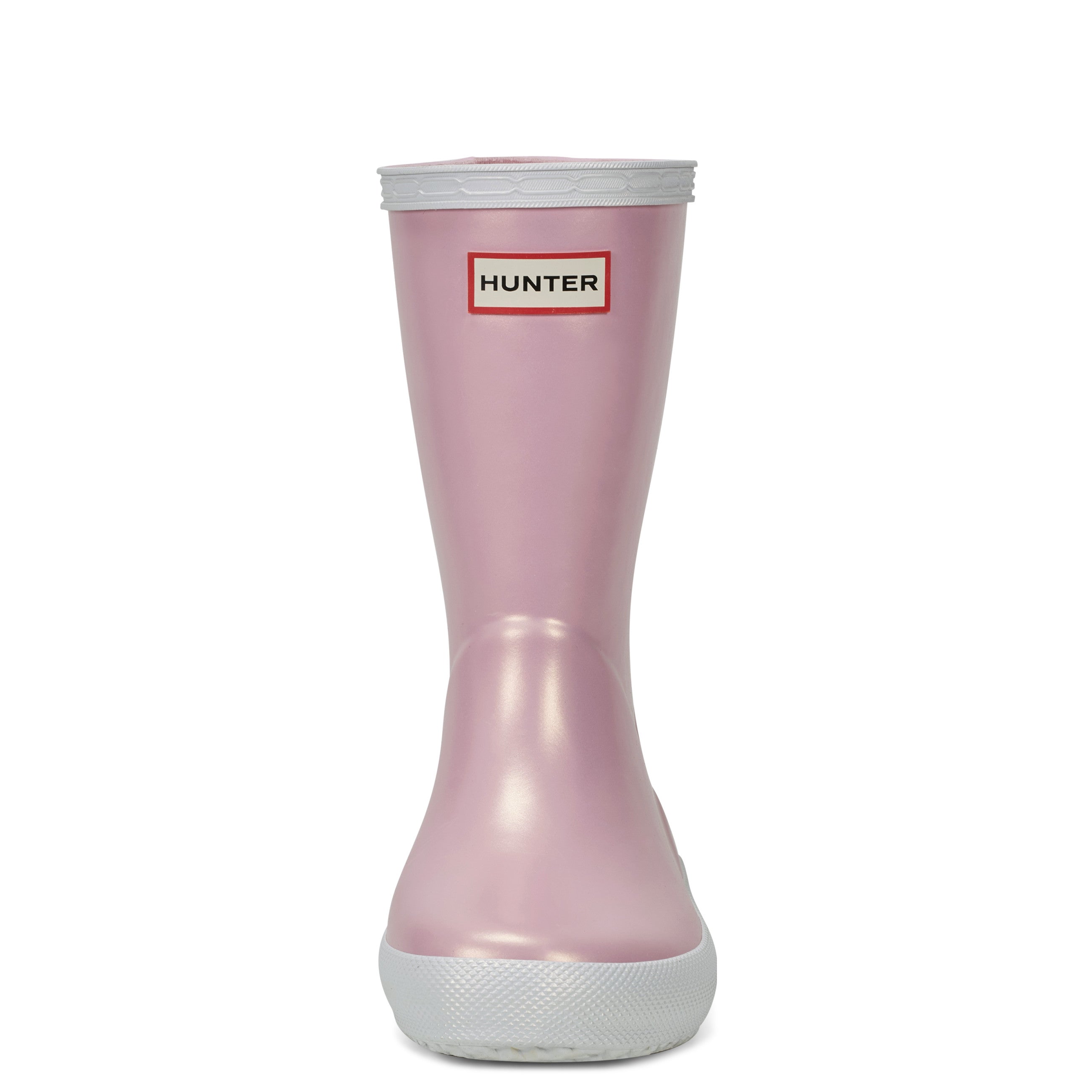 The Kids First Classic Boot is given a glittering update with a two-tone iridescent finish. Handcrafted from natural rubber, these fully waterproof boots have a flat outsole for stability and a rounded toe gives little toes room to move. Similar to the adults Original Boots, the specially developed tread on the calendered outsole provides grip across various terrains and the soft recycled polyester lining ensures comfort. Little feet will be protected on any adventure, rain or shine.