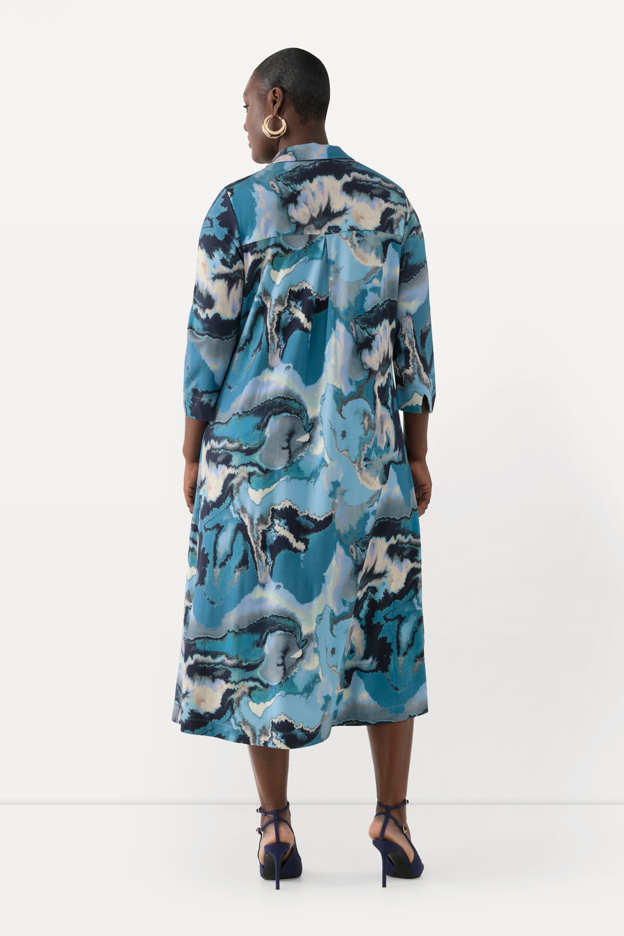 Kleid, Punto di Roma, A-Linie, Hemdkragen, 3/4-Arm