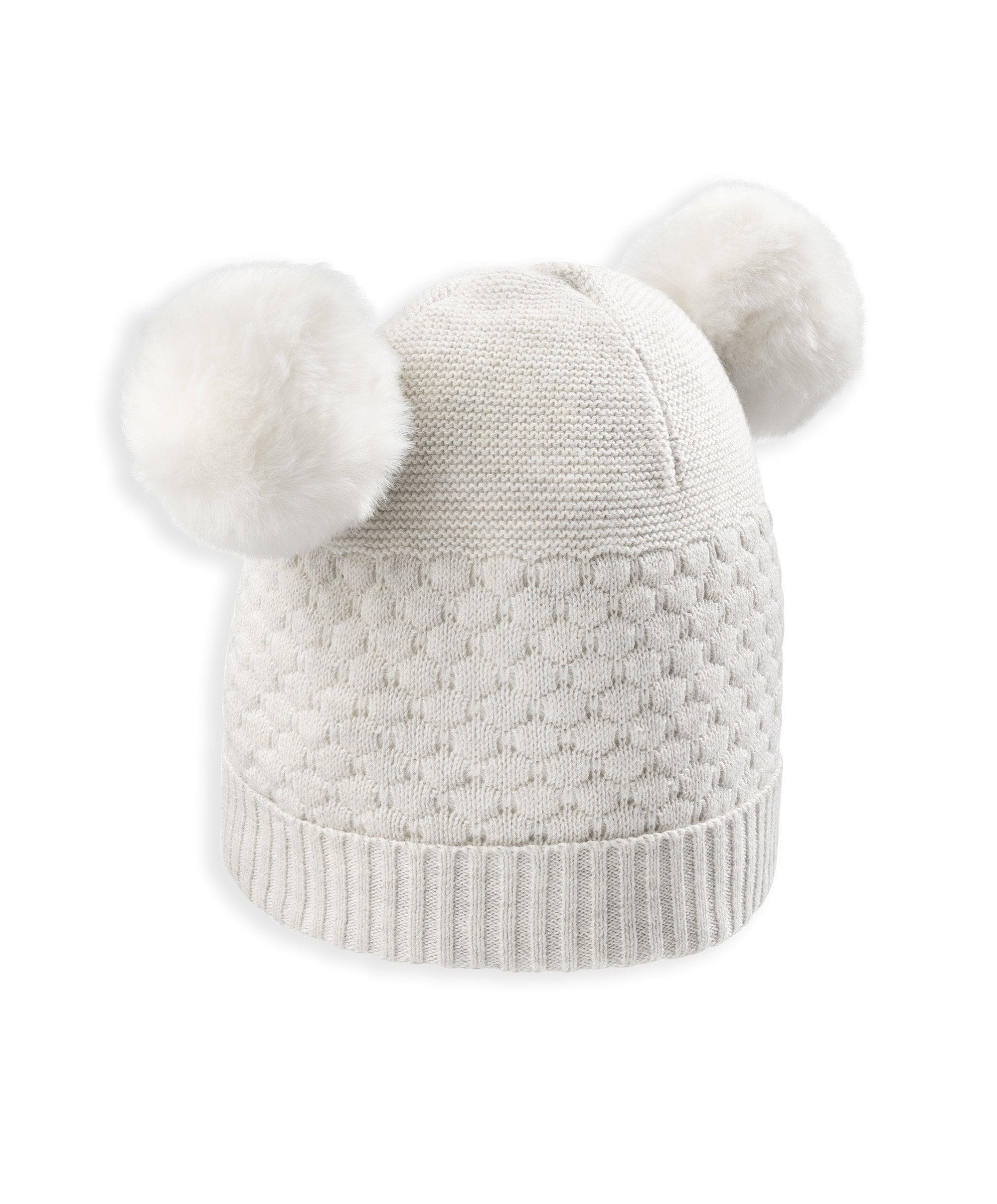 Keep their little ears nice and toasty with this soft beige knitted hat. Finished with cute pom poms, it's perfect for those winter walks.