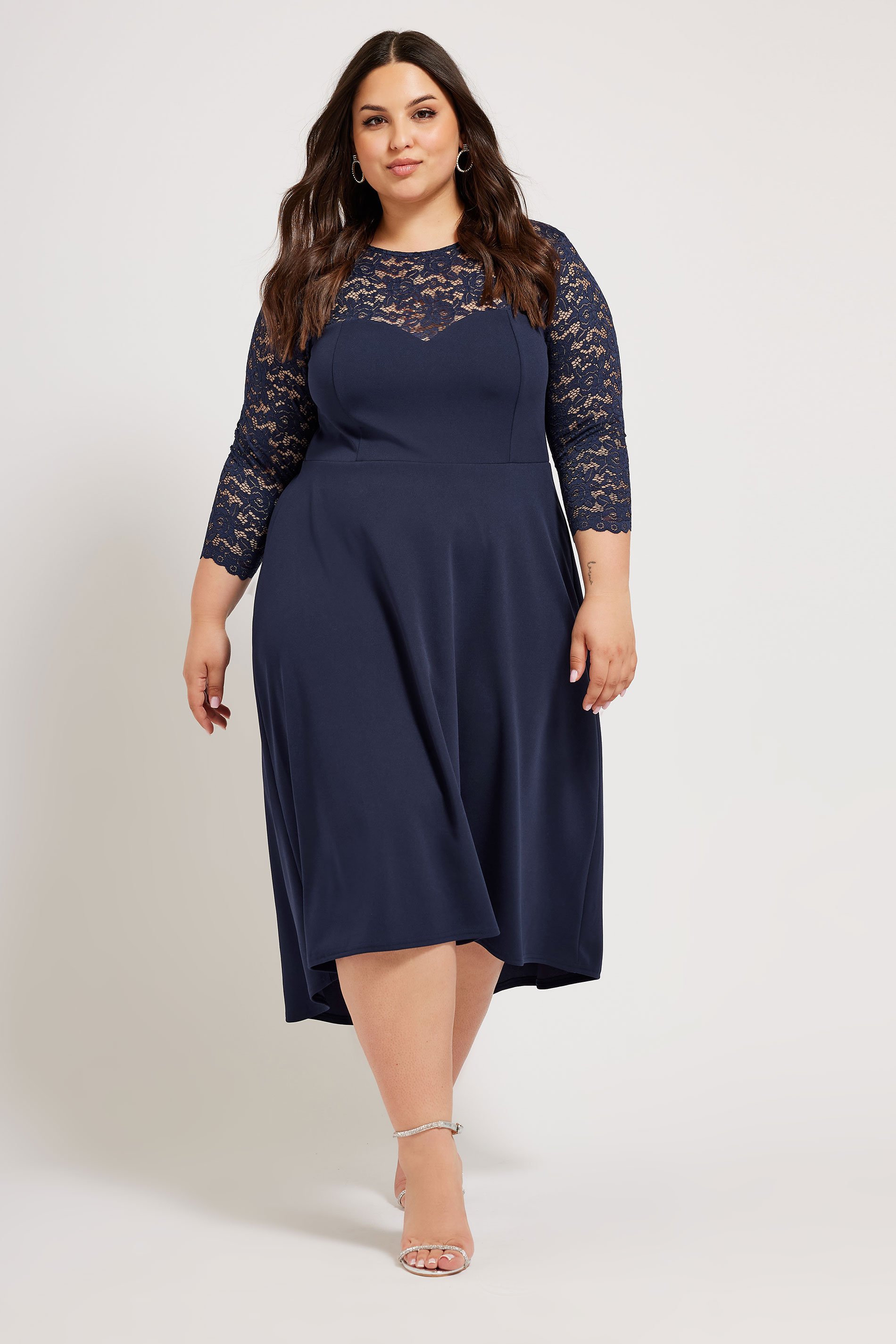 This new-in midi dress from Yours London is the perfect option for your next special occasion. Made from a comfortable jersey fabric, it features a dipped hemline, lace detail and a sweetheart neckline. Team with heels and a clutch bag for a look that you can wear with confidence.