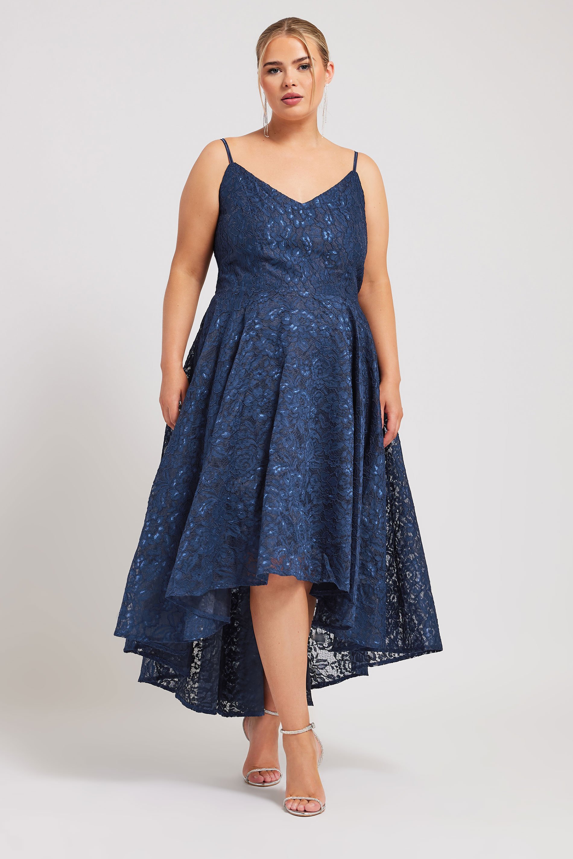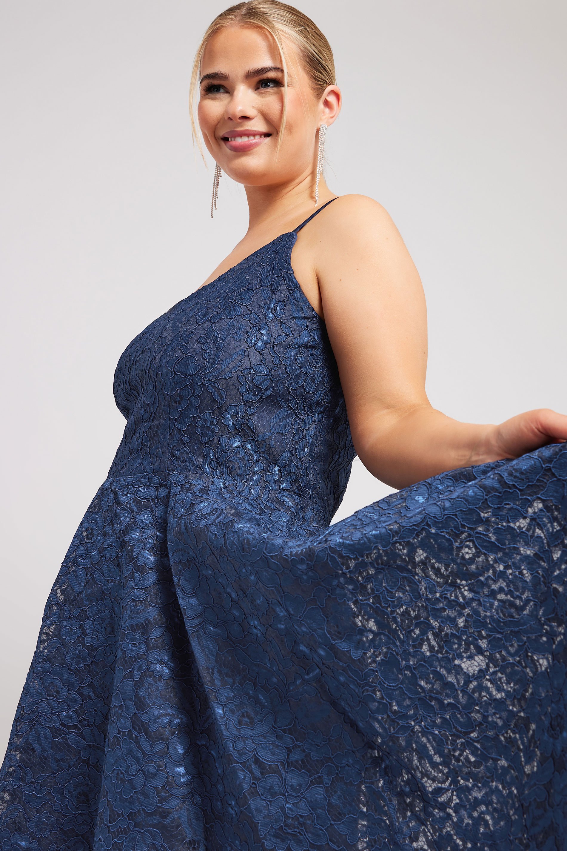 • YOURS LONDON Curve Navy Blue Lace Midi Prom Dress