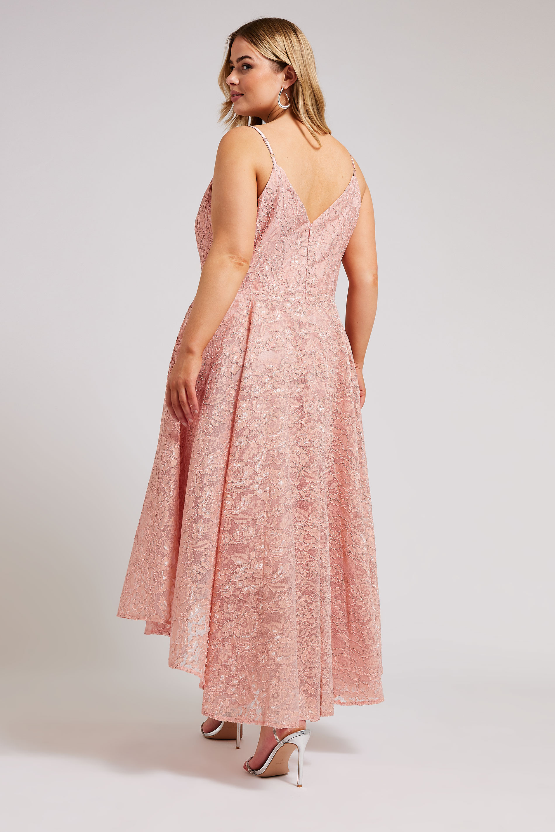 • YOURS LONDON Curve Pink Lace Midi Prom Dress