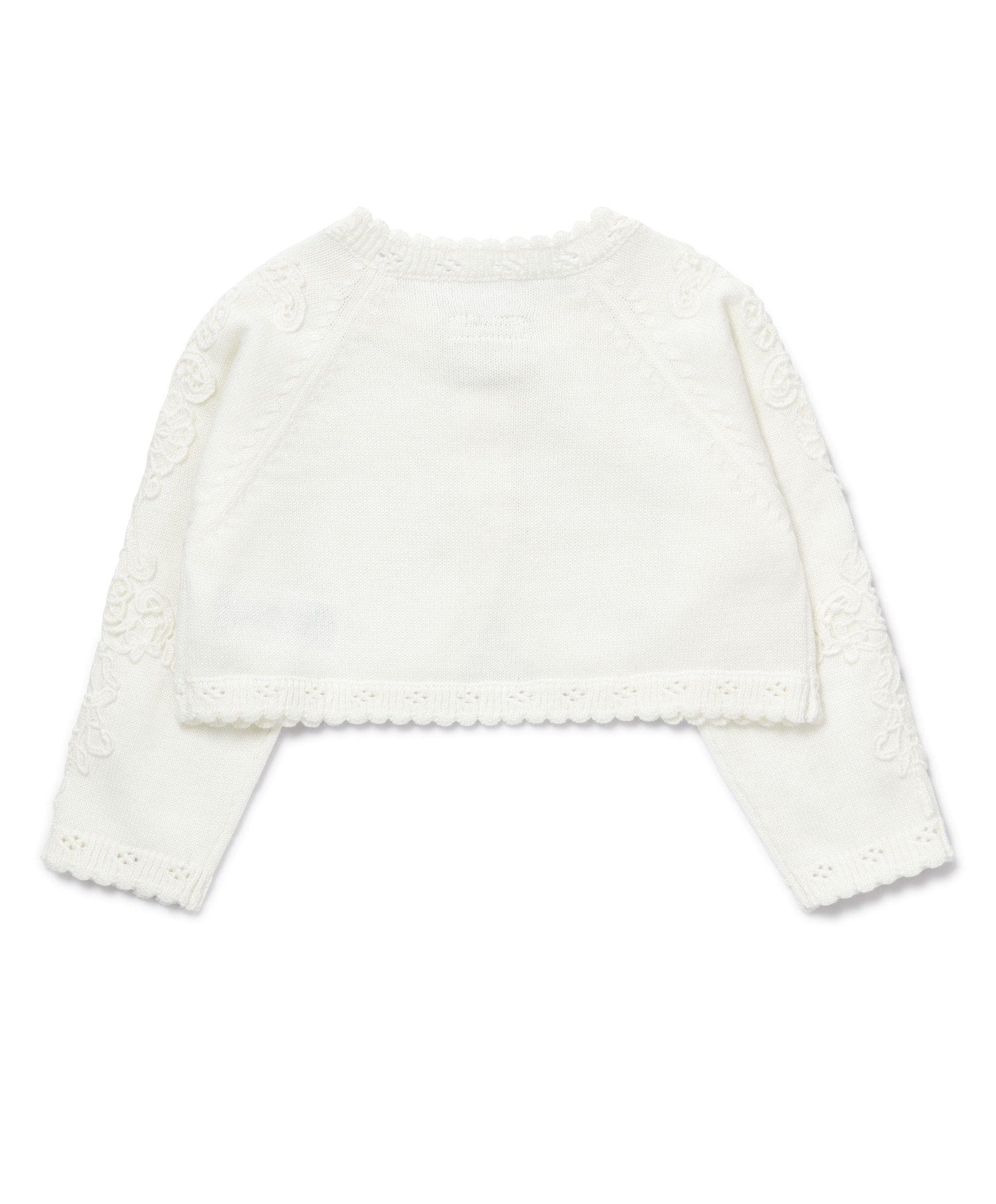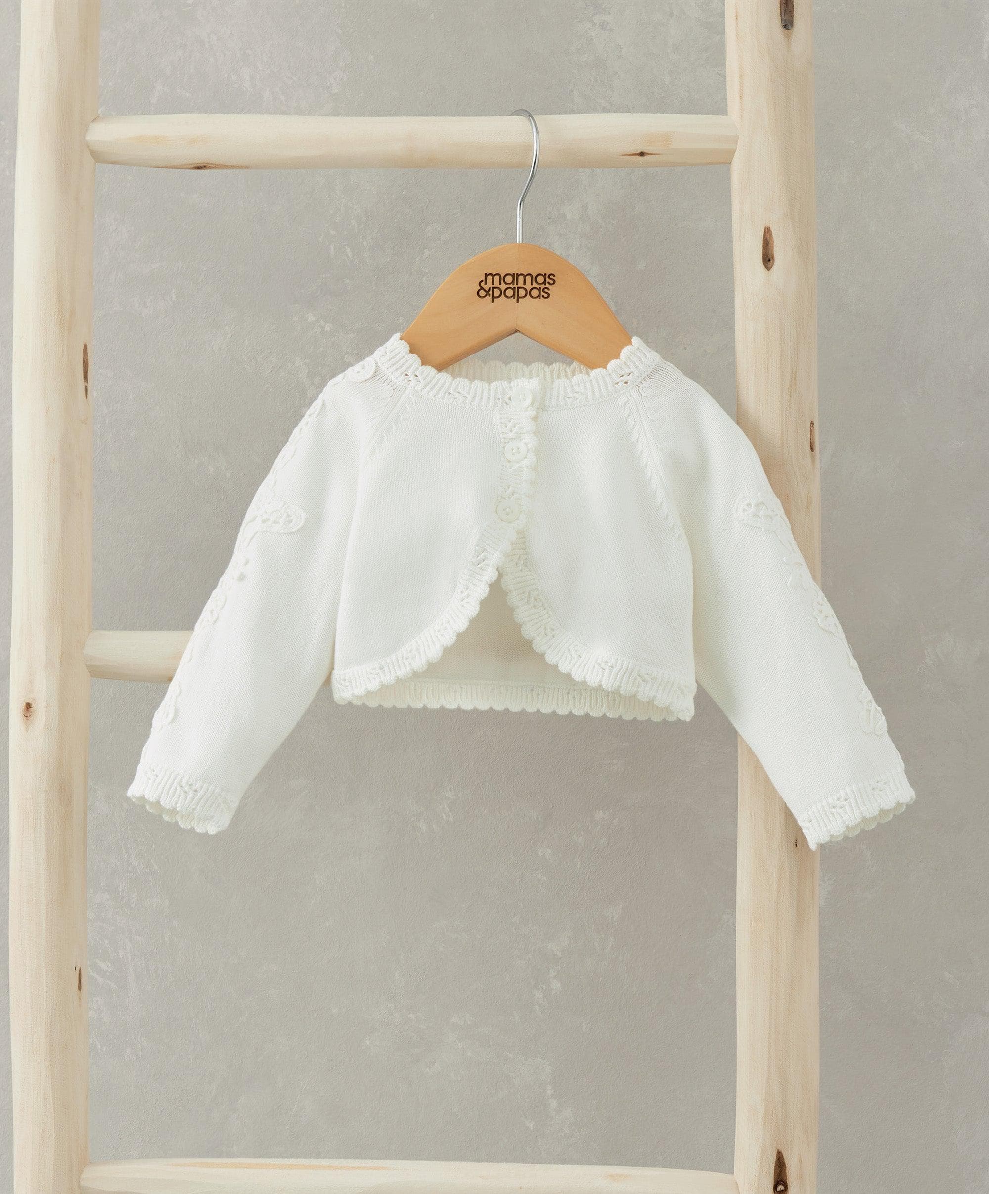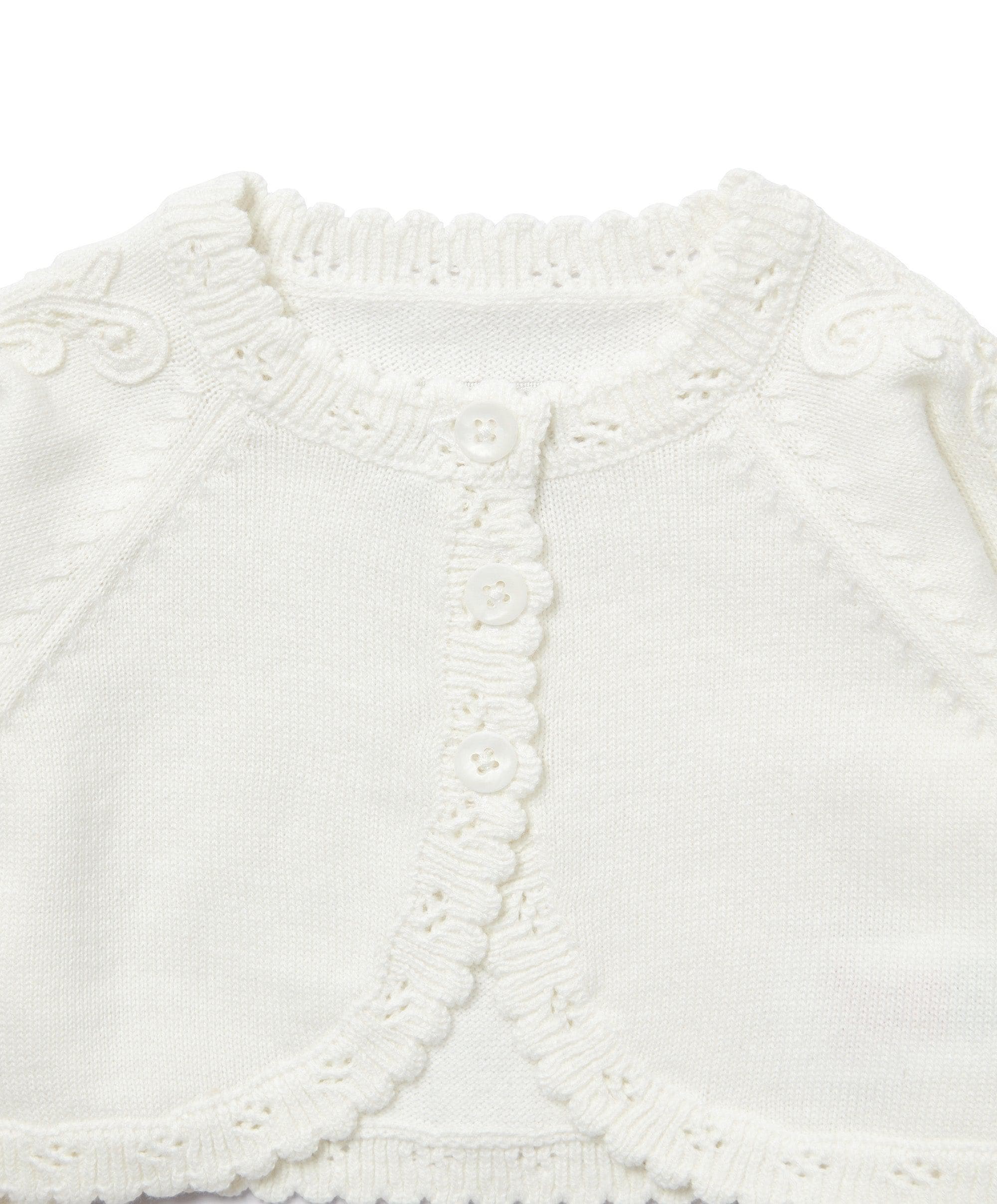 This lovely soft pink cardigan is perfect for finishing off that party outfit. It's made from a soft knit fabric and finished with delicate lace trims and scalloped edges, and its cropped length is ideal for layering up over dresses.