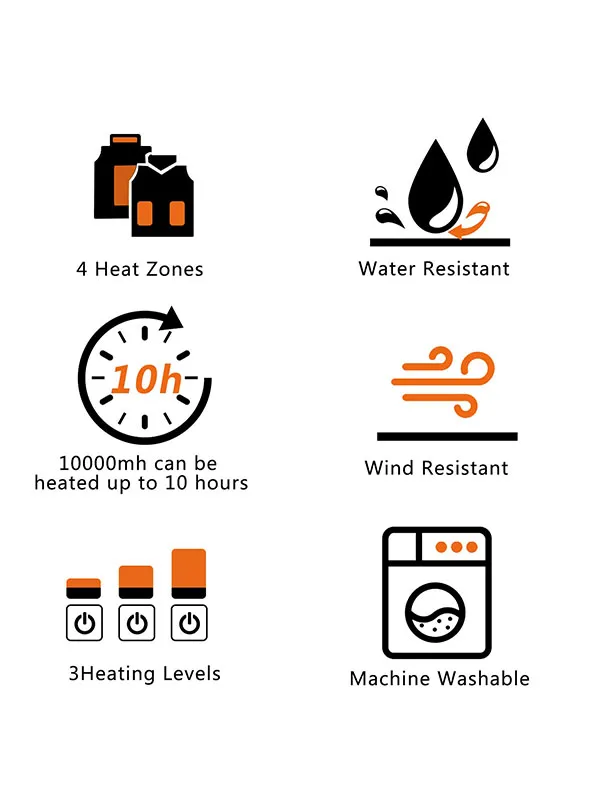 Long-lasting warmth-the large-capacity 10000mah power supply (not included) battery can provide more than 10 hours of heat and can be used to charge mobile devices. The waterproof outer layer ensures that you stay dry and comfortable.