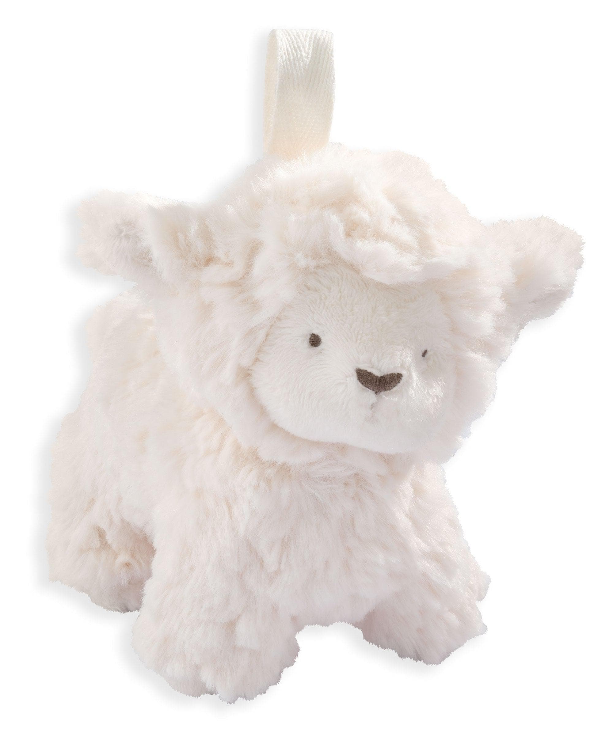 When they have a favourite soft toy they never want to be parted from them. So, we’ve added a ribbon loop to this cuddly lamb so he can dangle from their pushchair or car seat, hanging out with his new pal when out and about! Baa-rilliant!