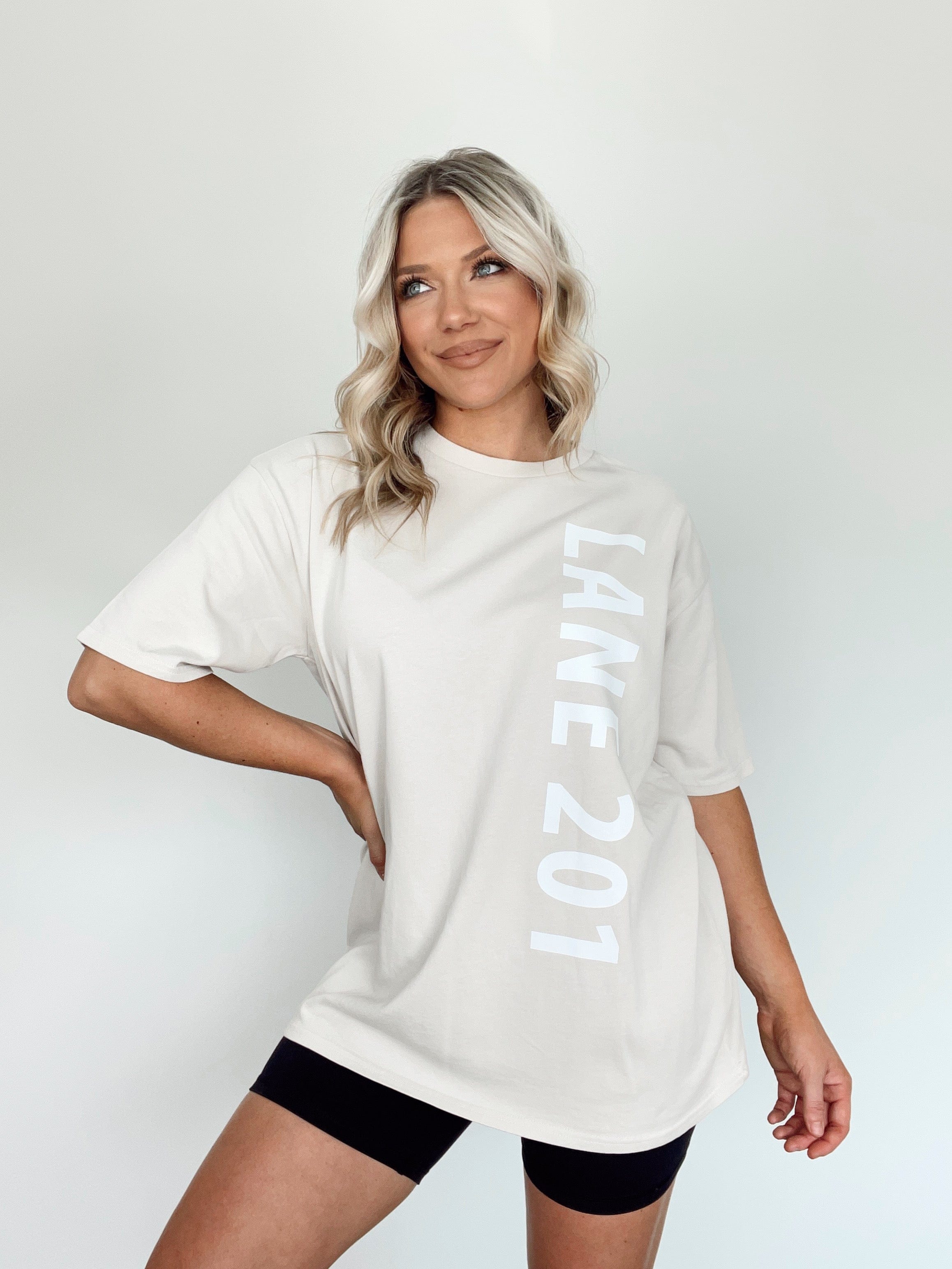 Elevate your off-duty wardrobe in the Lane 201 Oversized Tee. Attractively designed with a trendy "Lane 201" graphic, this garment is designed to provide optimum comfort without compromising on style. Cut with drop shoulders and crafted from a deliciously soft fabric, this tee is perfect for casual lounging or running errands in the spring and summer months. Make a stylish statement this season with the Lane 201 Oversized Tee.