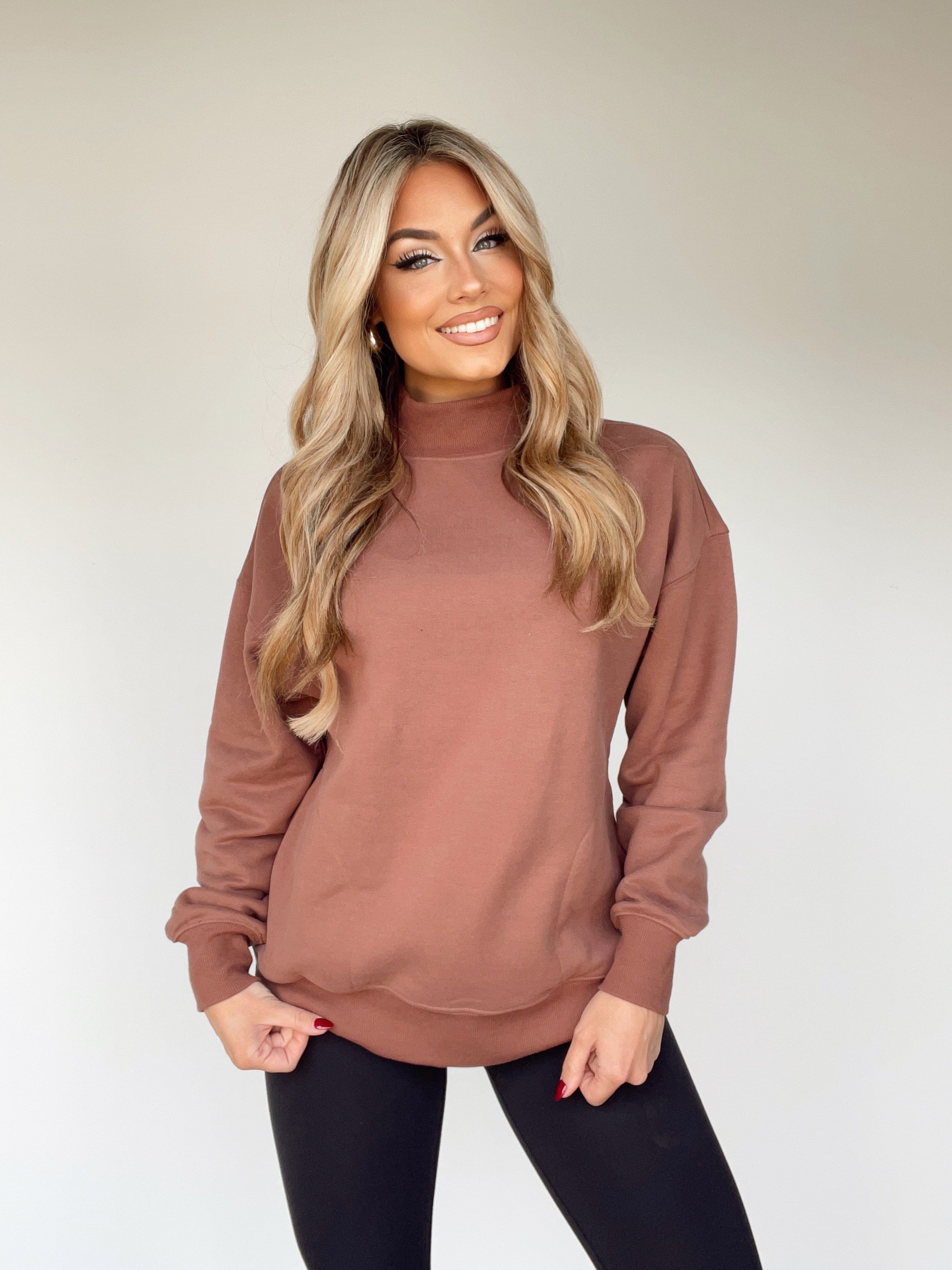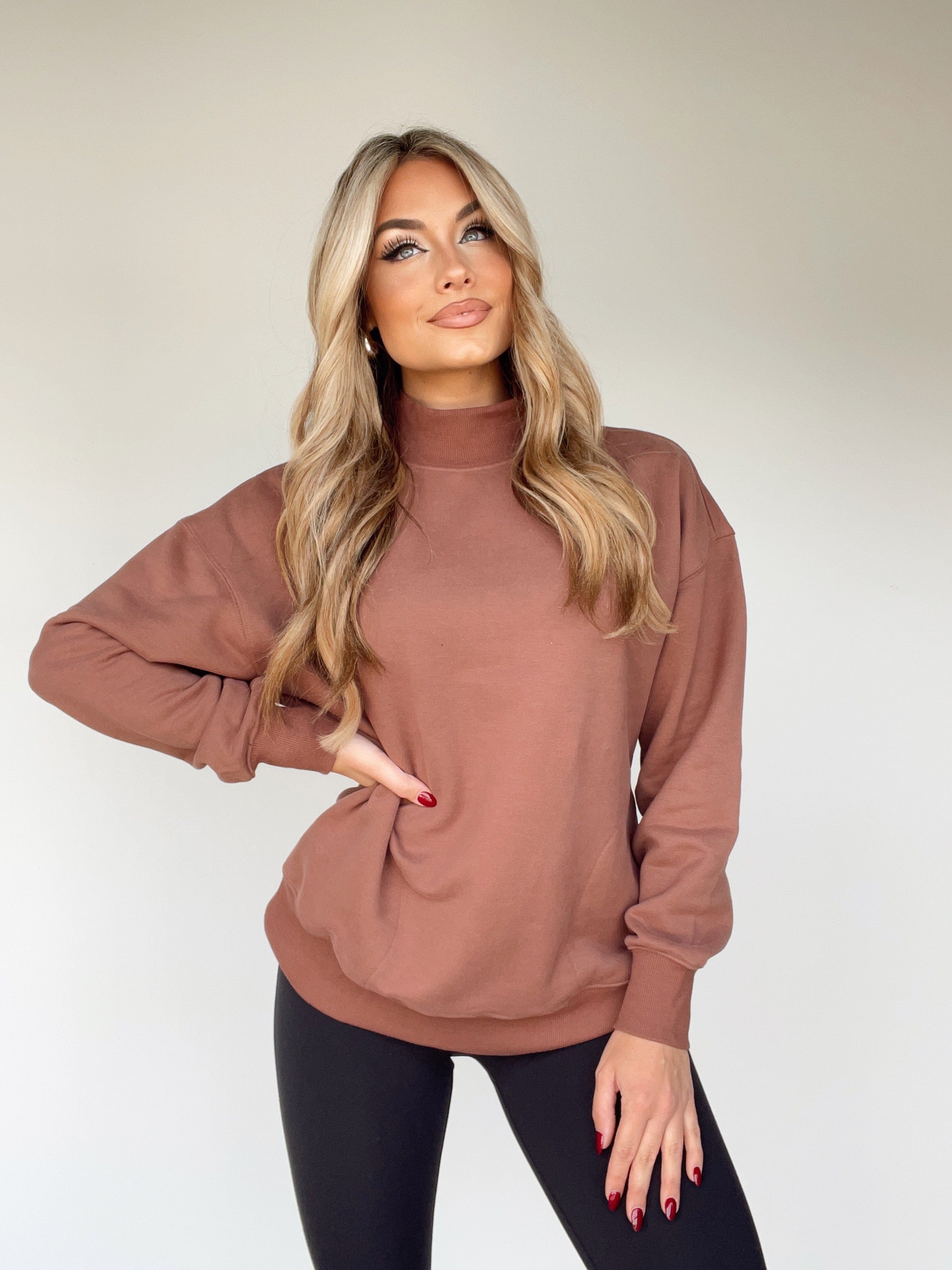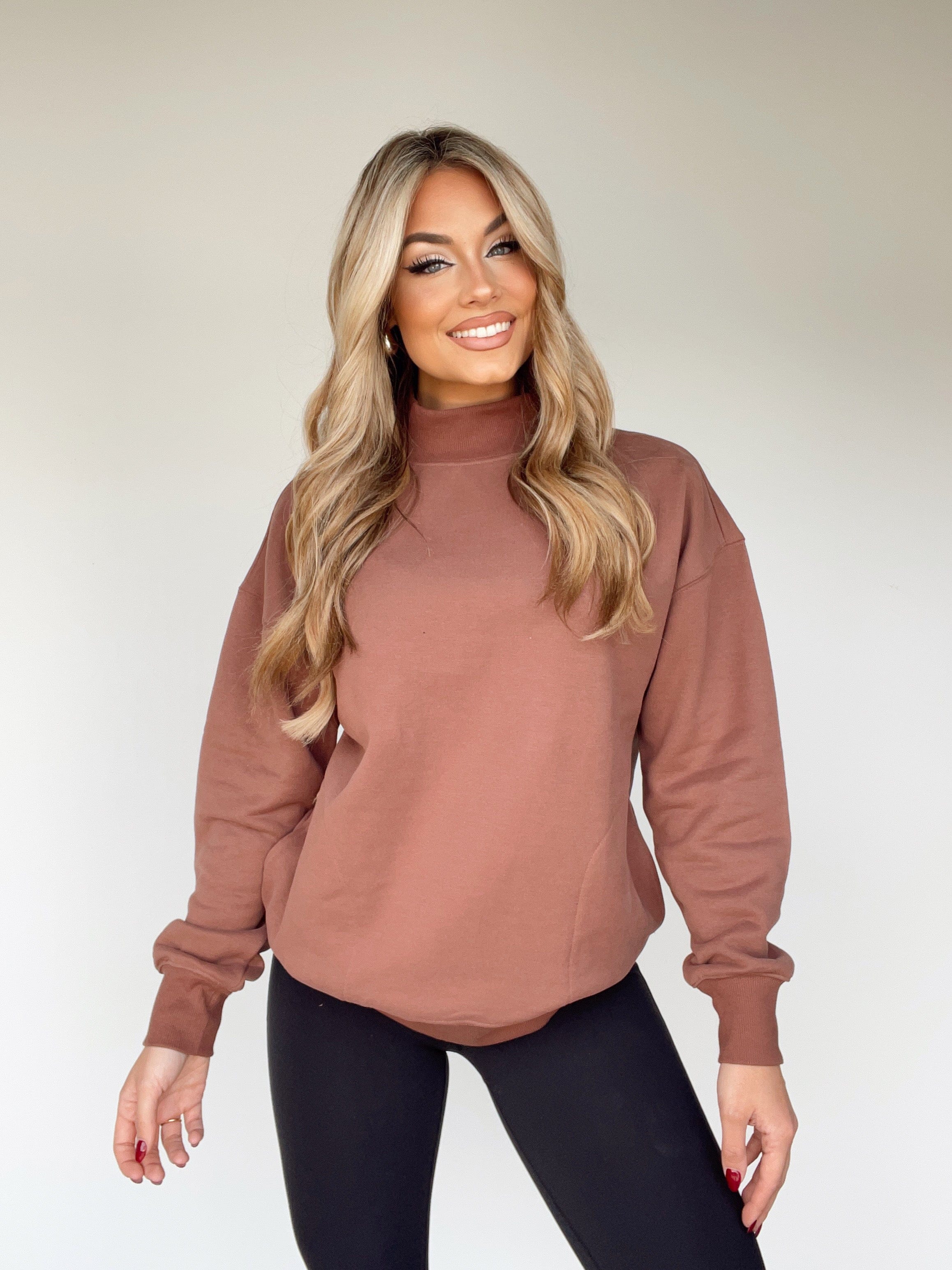 A cozy staple for the season, the Layering Season Pullover is crafted from a soft, stretchy knit for comfortable and relaxed style. Looking to keep warm outside during those crisp fall days? Throw on this elevated layering piece for a hot girl walk, a pumpkin patch outing, a coffee run, or any other cozy moments. With drop shoulders and a mock neck, it's the perfect transition piece for those cooler climes.