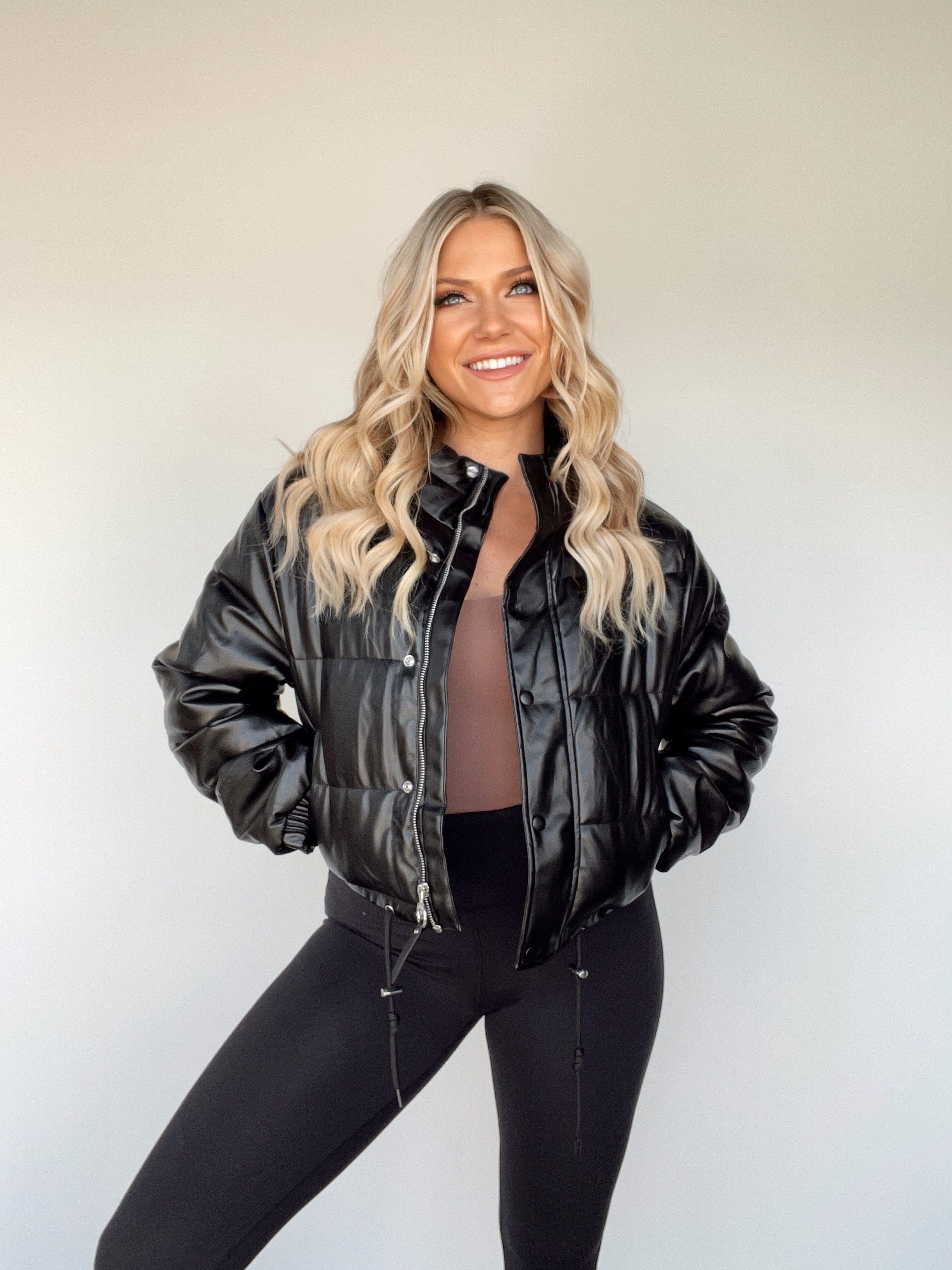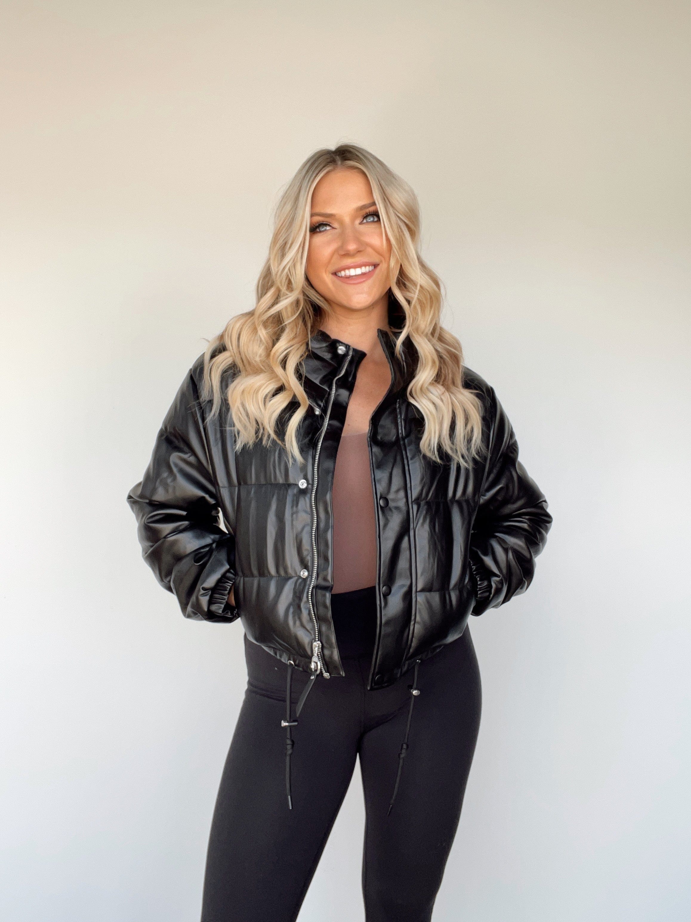Stay warm and fashionable this season with our Leather Puffer Coat. Crafted from high-quality faux leather, this stylish and trendy coat is designed to protect you from the elements, providing the perfect balance of fashion and function for the winter, fall, and snowy months. Complete with quilted details and zipper closures, this luxurious piece will keep you looking good and feeling great all season long.