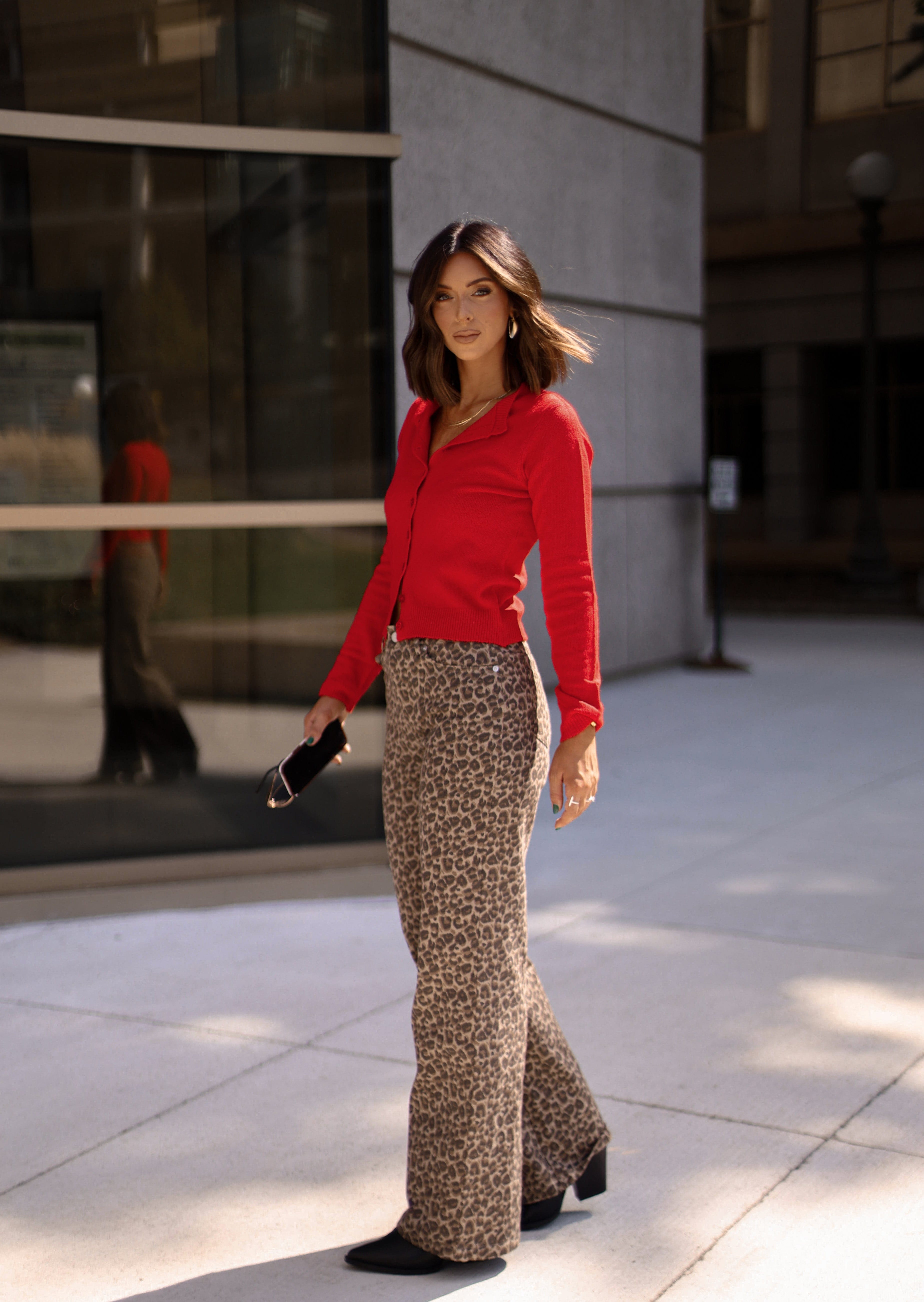Expertly crafted for a sleek and flattering fit, these high waisted pants feature a trendy wide leg design and bold leopard print. Complete with a convenient zipper closure, these pants are perfect for achieving both style and comfort.