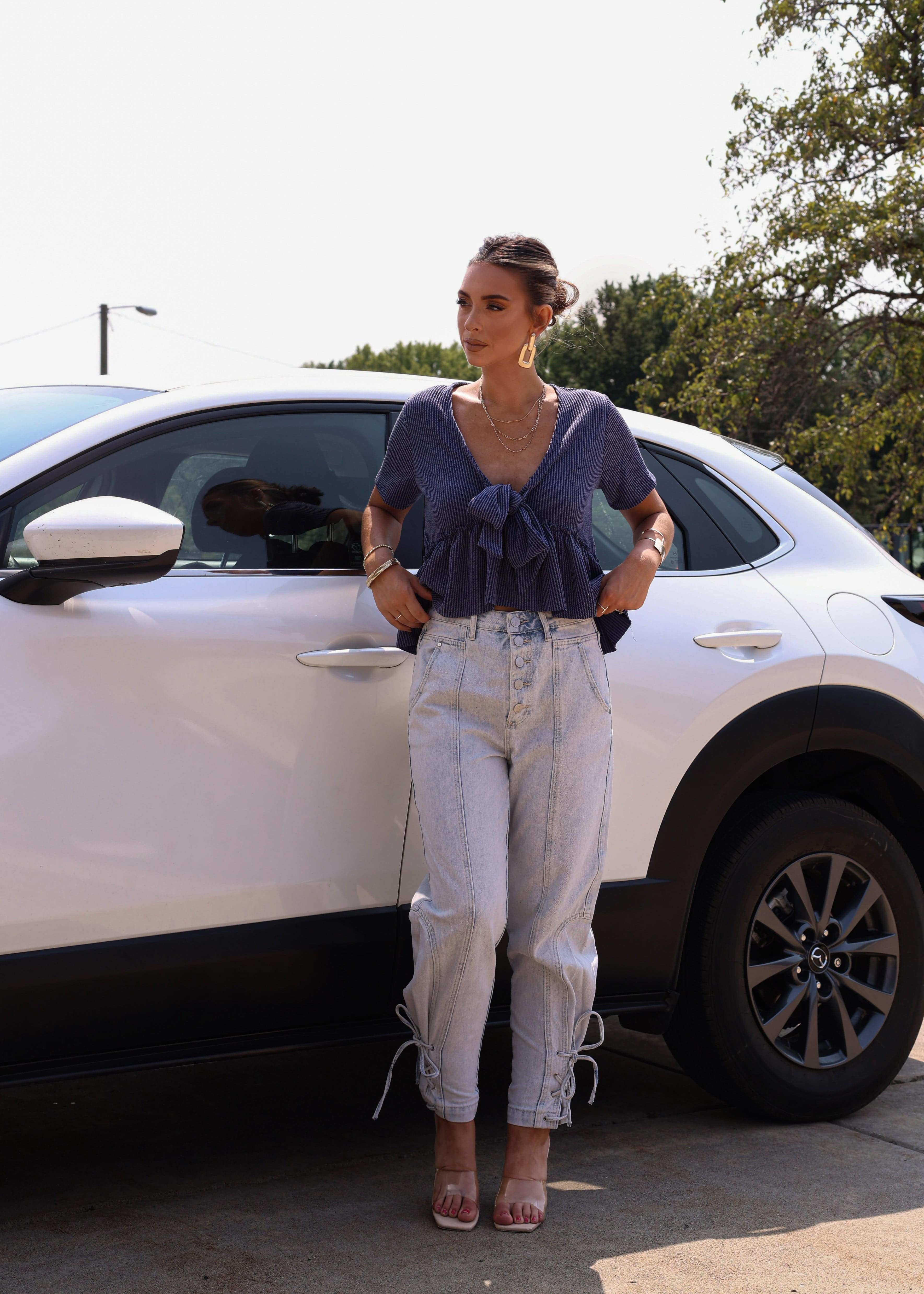 Light Wash Lace Up Denim