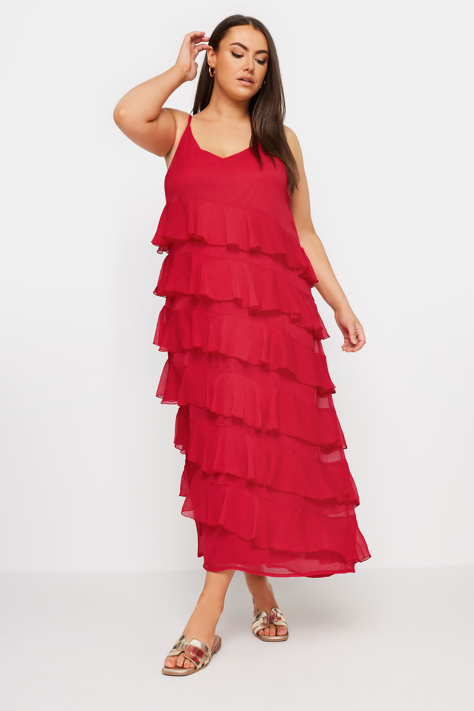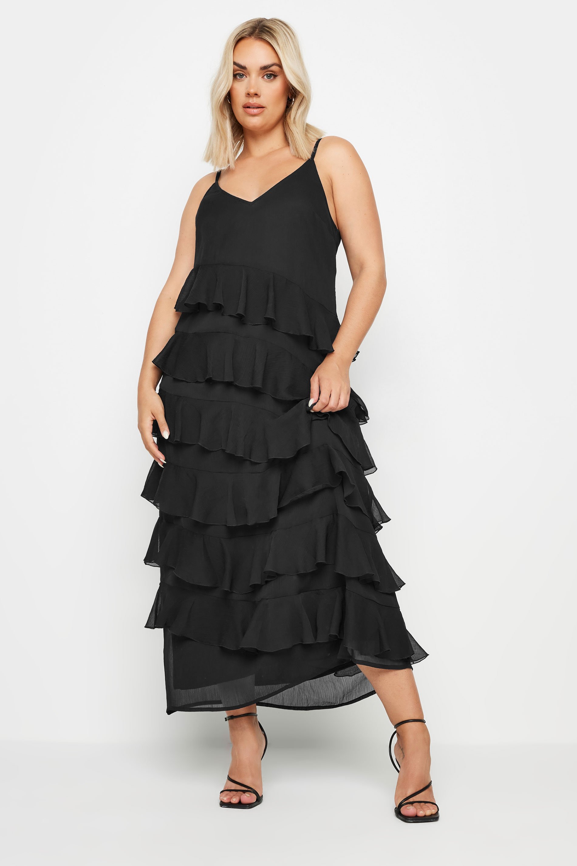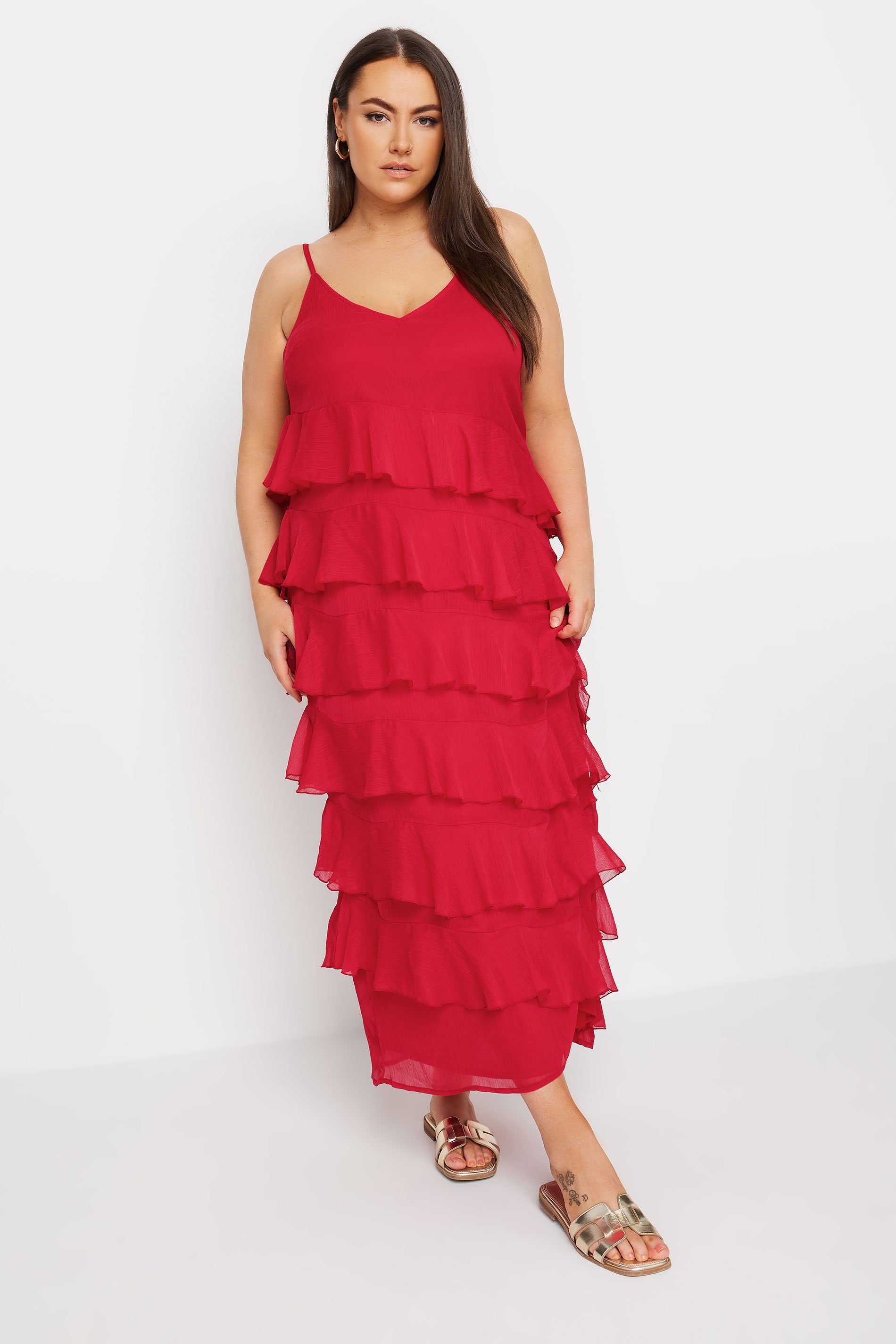 ["YOURS Curve Red Frill Maxi Dress\u00b710","YOURS Curve Red Frill Maxi Dress\u00b712","LIMITED COLLECTION Curve Black Frill Maxi Dress\u00b710","LIMITED COLLECTION Curve Black Frill Maxi Dress\u00b712"]