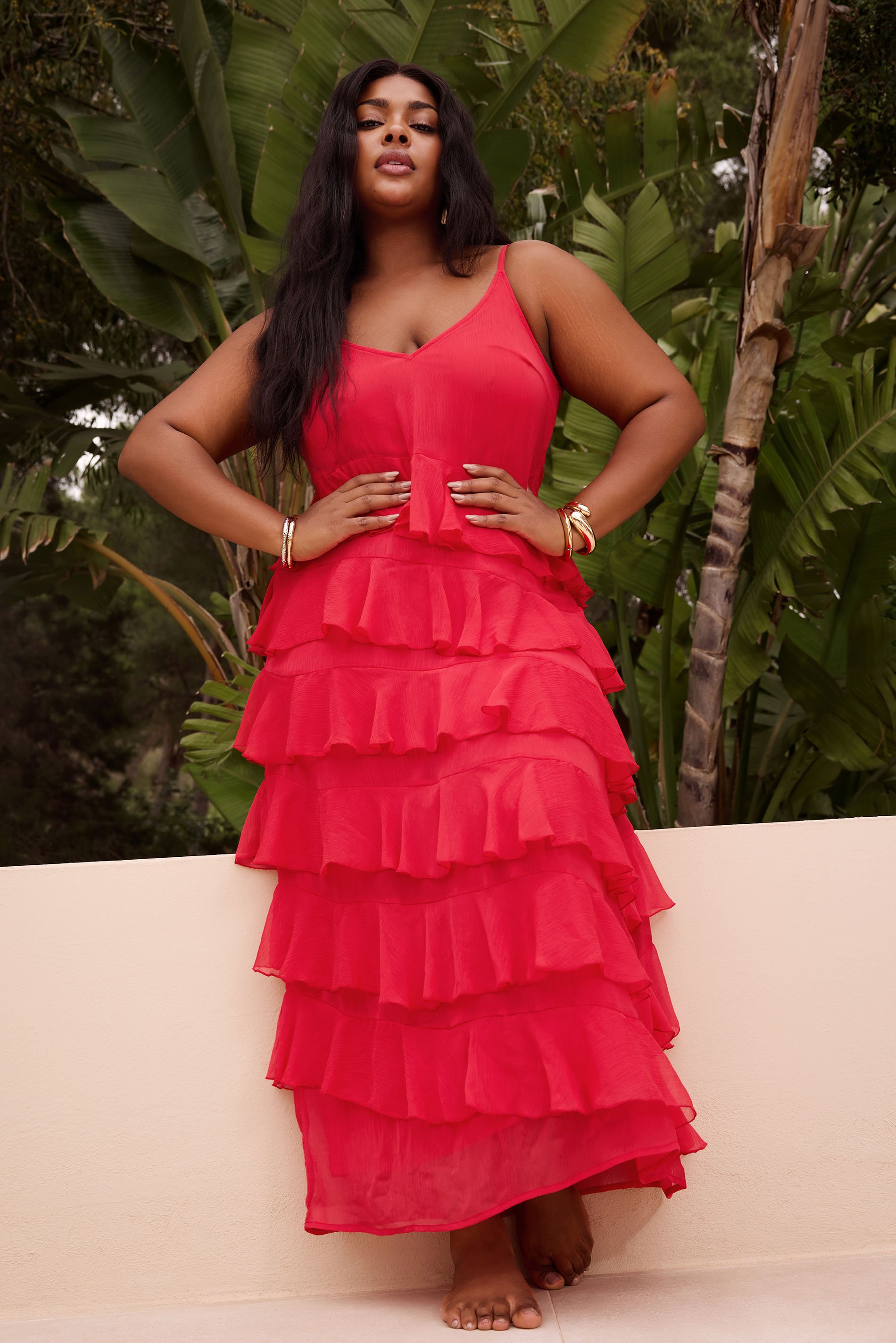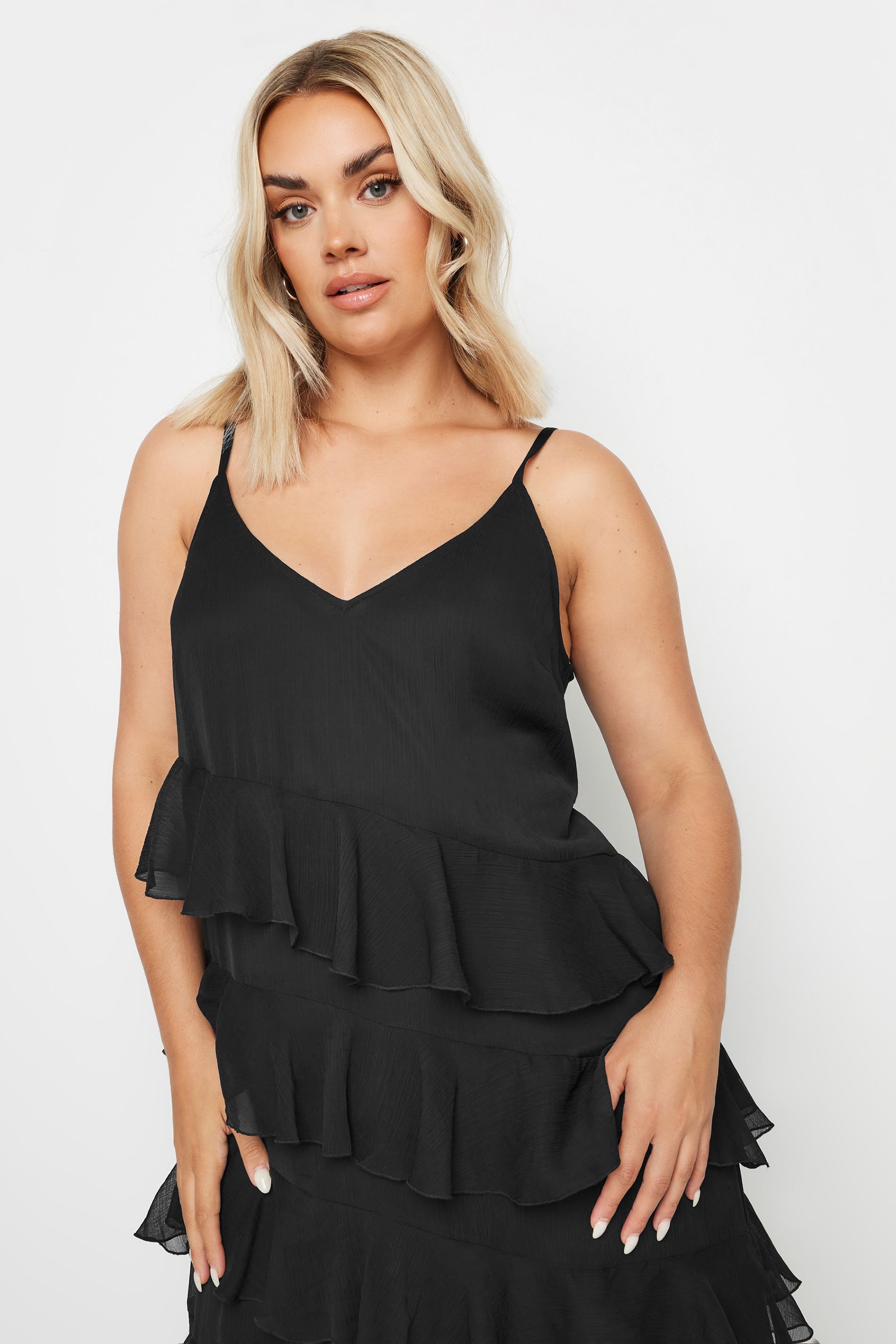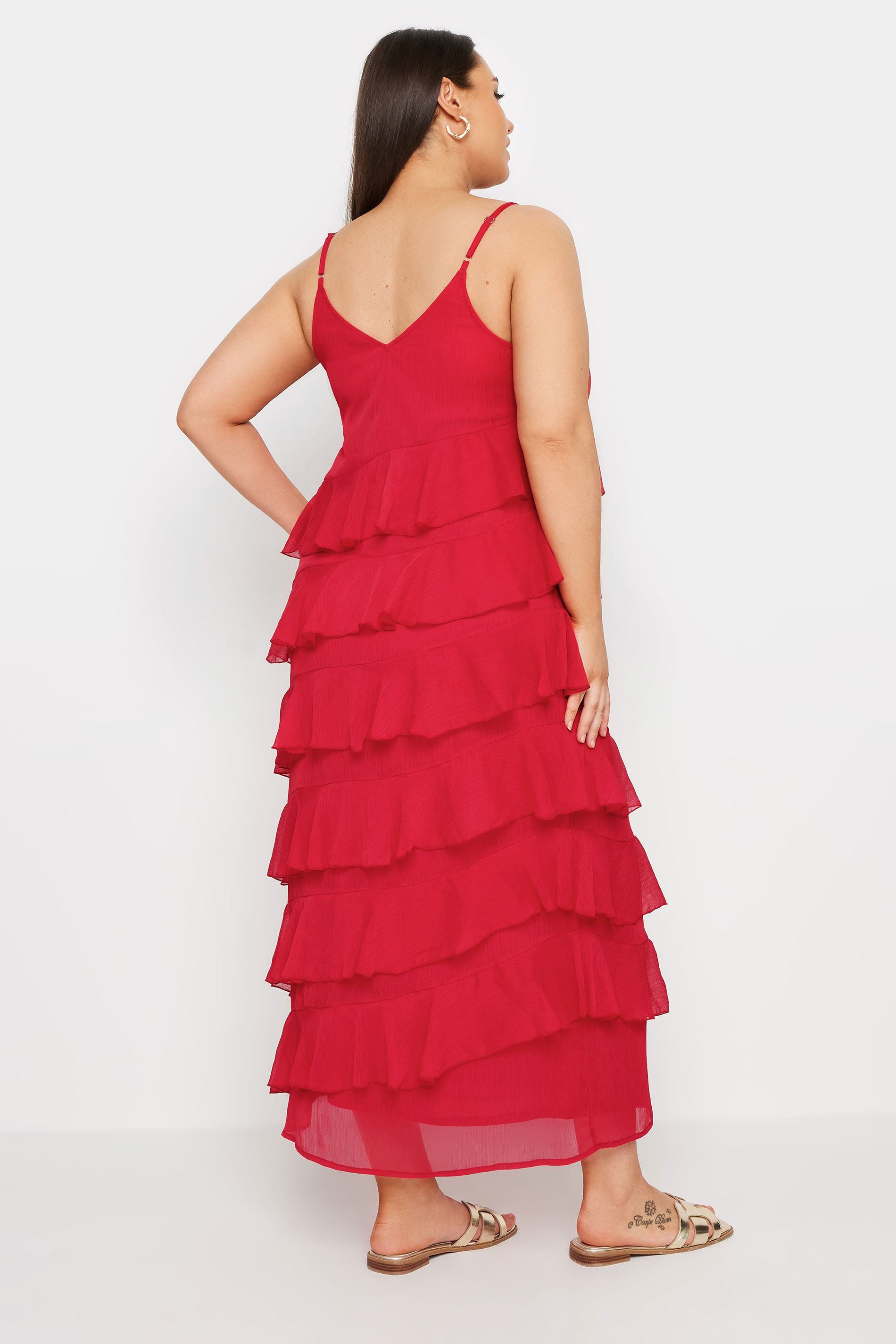 ["YOURS Curve Red Frill Maxi Dress\u00b710","YOURS Curve Red Frill Maxi Dress\u00b712","LIMITED COLLECTION Curve Black Frill Maxi Dress\u00b710","LIMITED COLLECTION Curve Black Frill Maxi Dress\u00b712"]