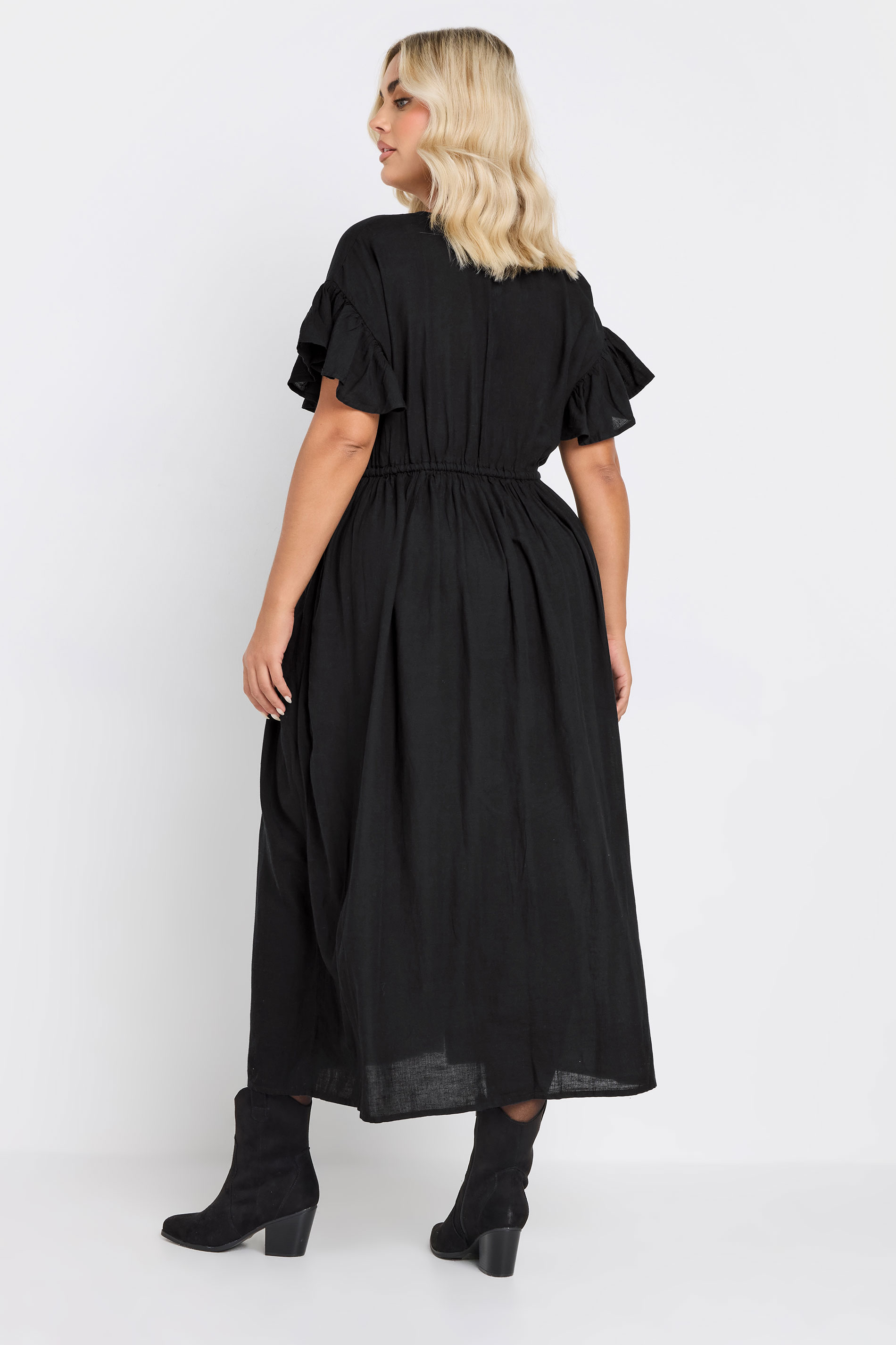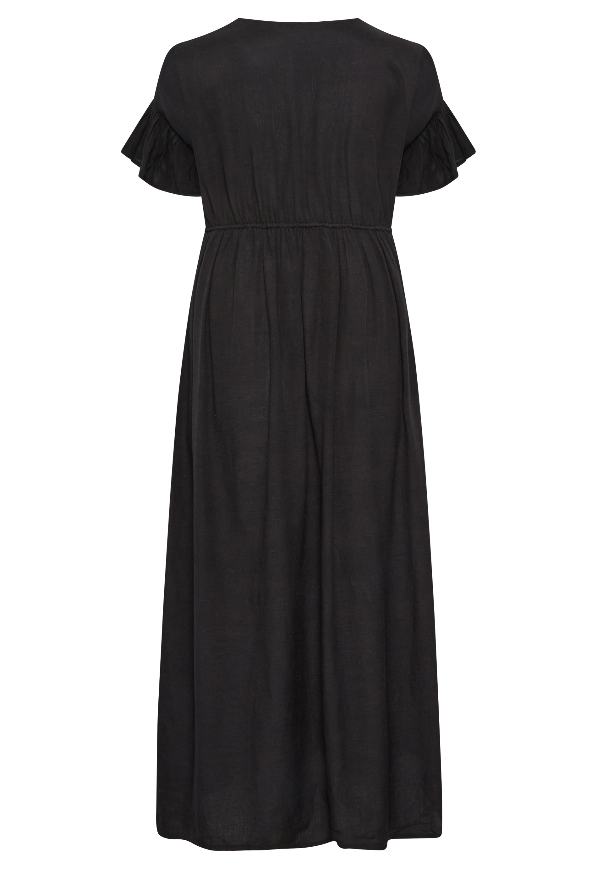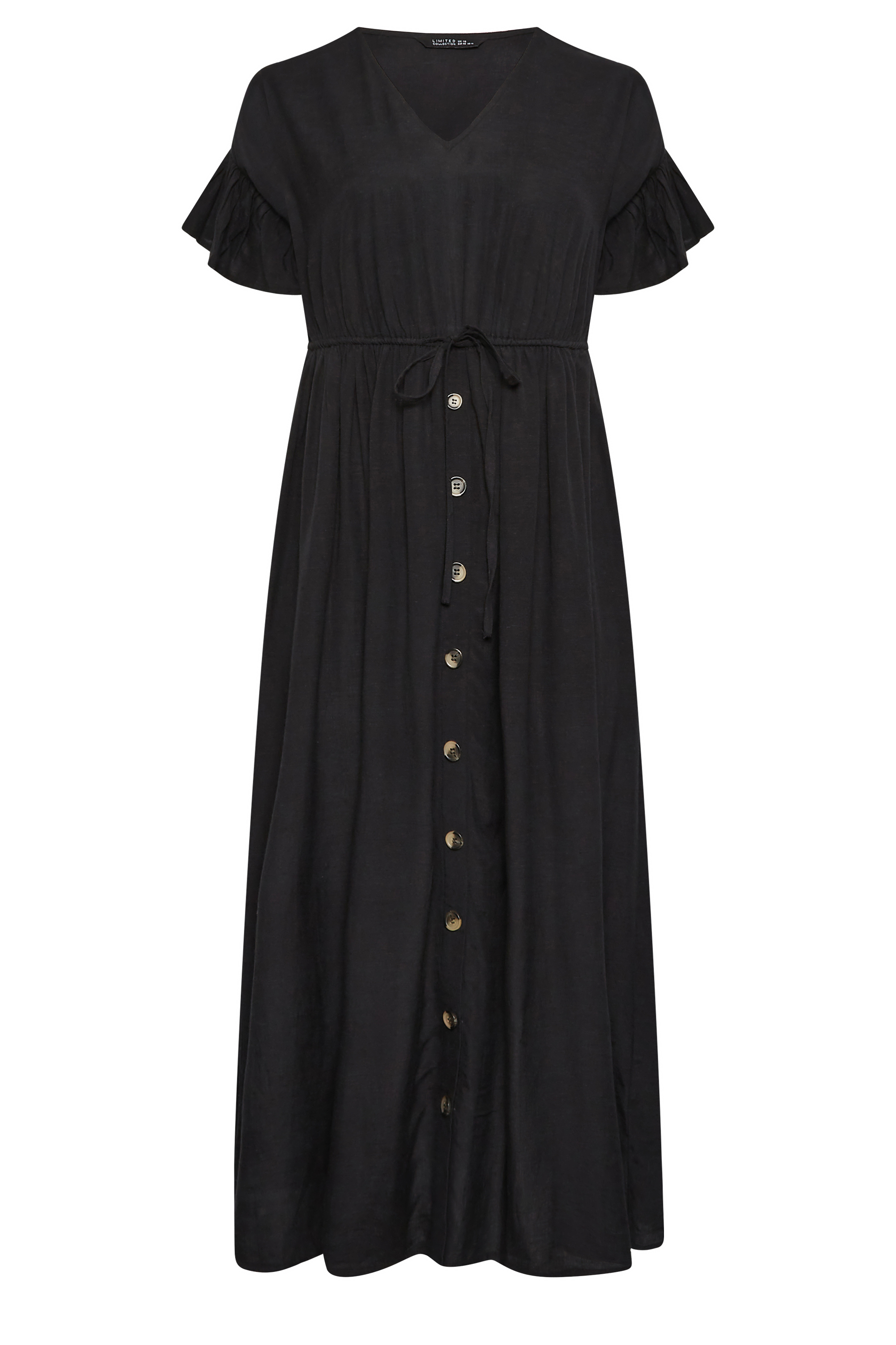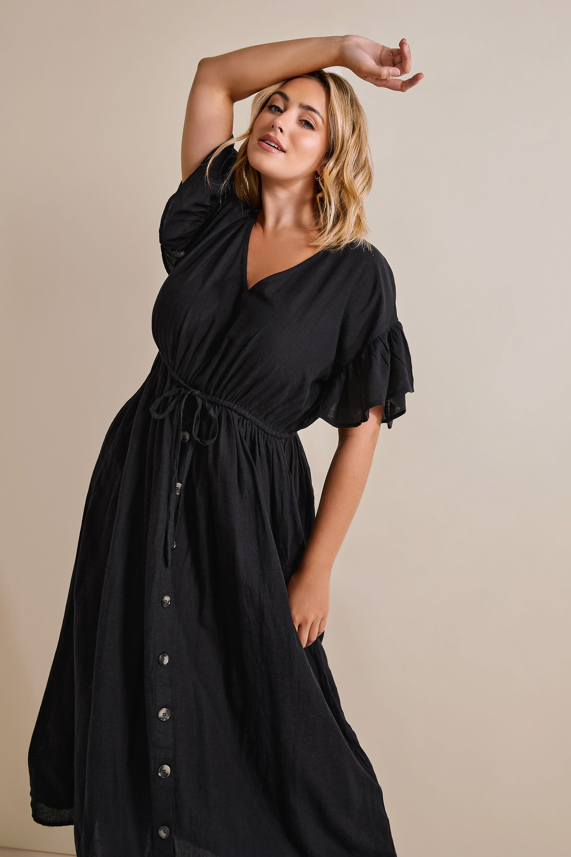This plus size maxi dress is a summer staple. Made from light cotton, it features short frill sleeves, a v-neckline, an adjustable elasticated waist, and button fastenings. Style with chunky sandals and sunglasses for an effortless summer look.