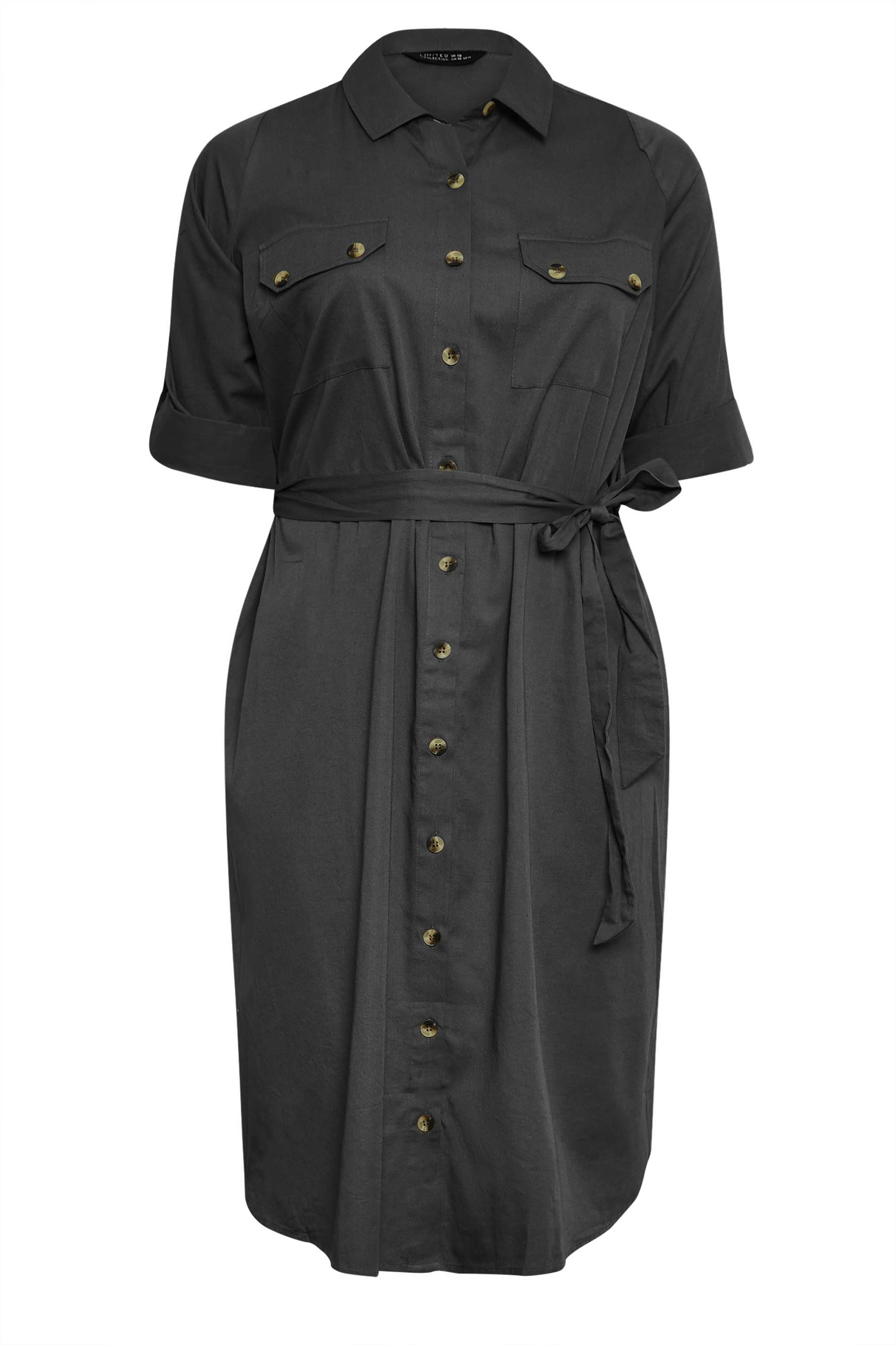 The perfect dress for the change in season. Made from a soft cotton fabric, this cotton dress features button fastenings, a classic collar, 3/4 length tab sleeves, two chest pockets, and an adjustable tie waist, complete at a midi length. Pair with trainers for a stylish daytime look.