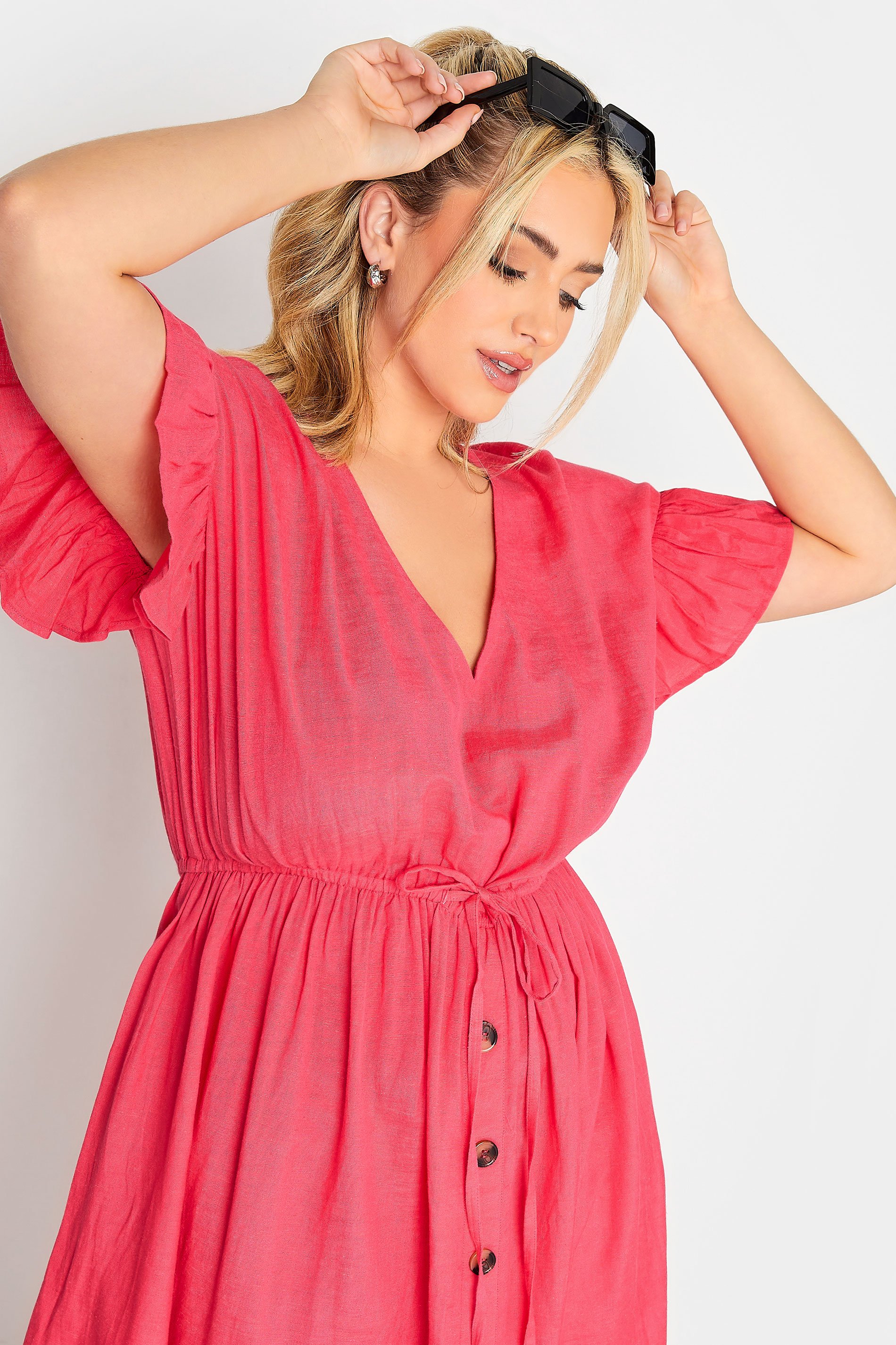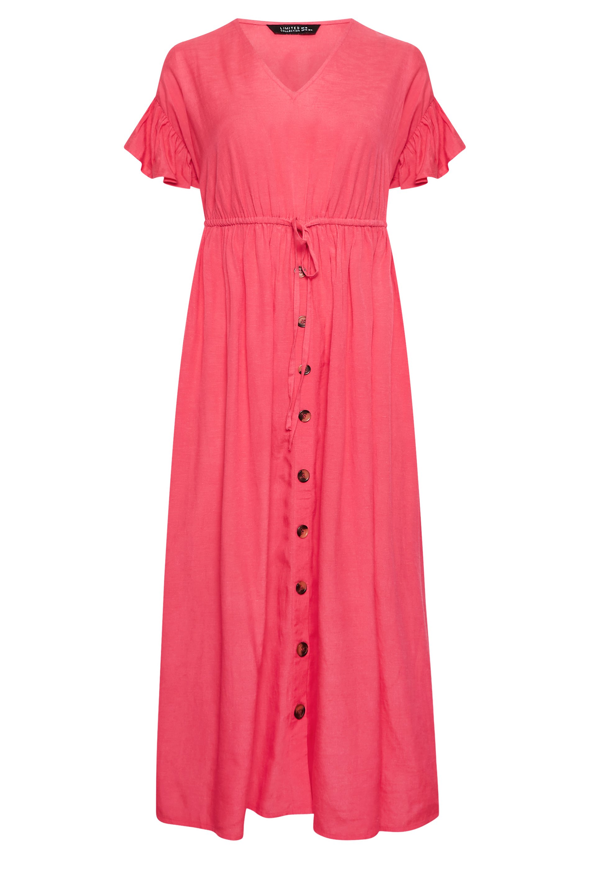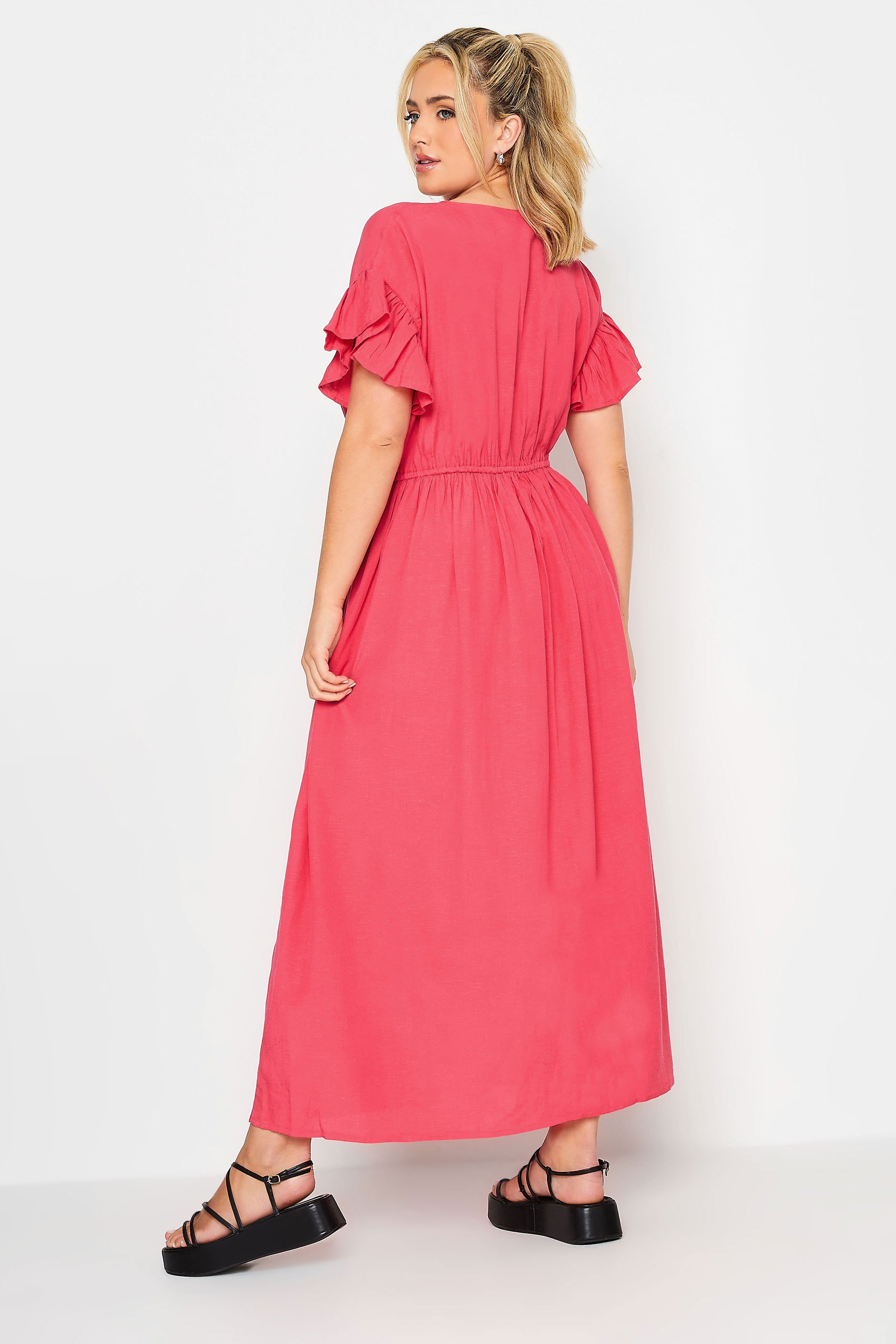 This plus size maxi dress is a summer staple. Made from light cotton, it features short frill sleeves, a v-neckline, an adjustable elasticated waist, and button fastenings. Style with chunky sandals and sunglasses for an effortless summer look.