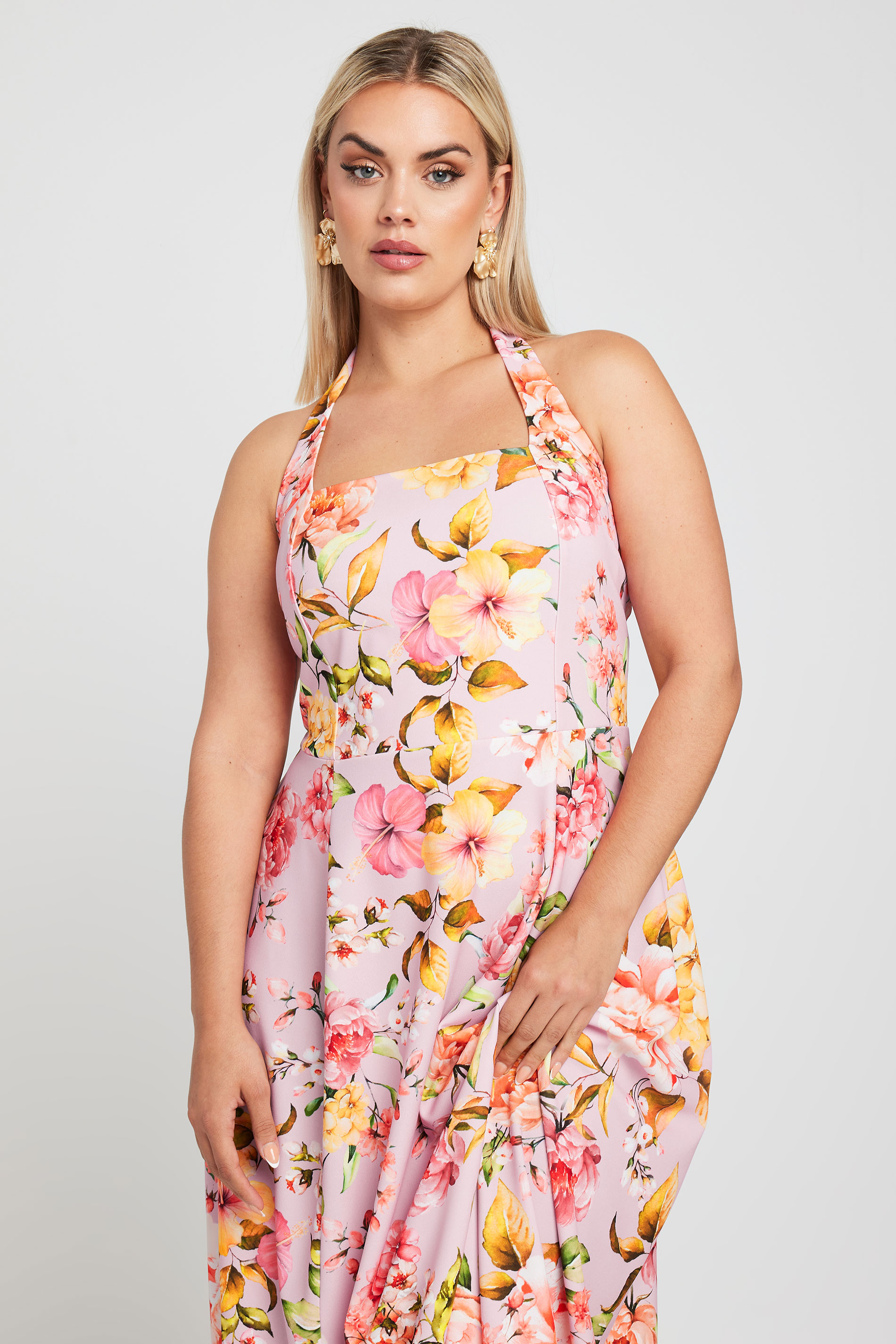This new-in midaxi dress from Limited Collection is perfect for your next special occasion. Made from a comfortable jersey fabric, it features a floral print, a halter neck with a tie back fastening and a sleeveless design. Team with heels for an effortless and elegant look that you can wear with confidence.