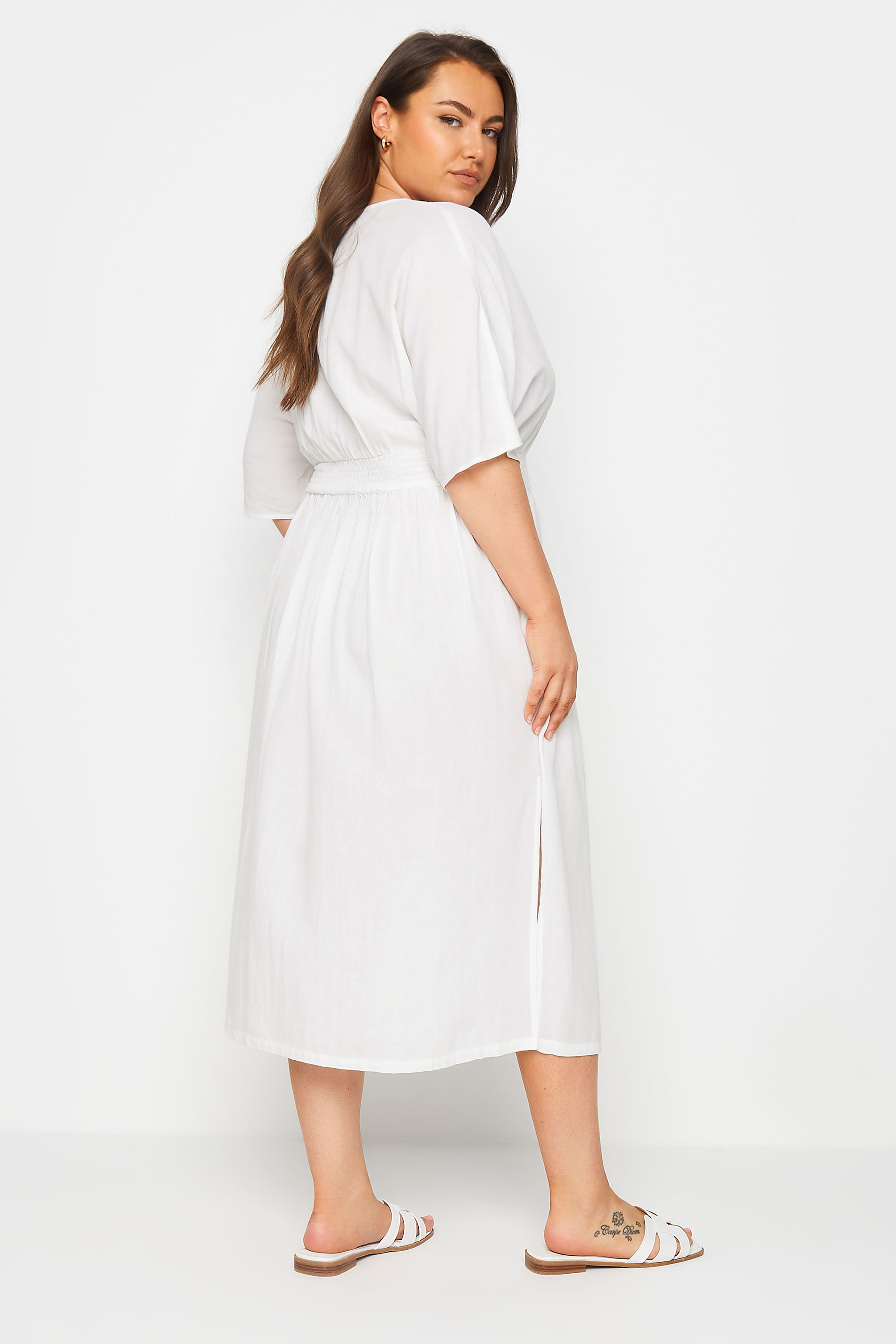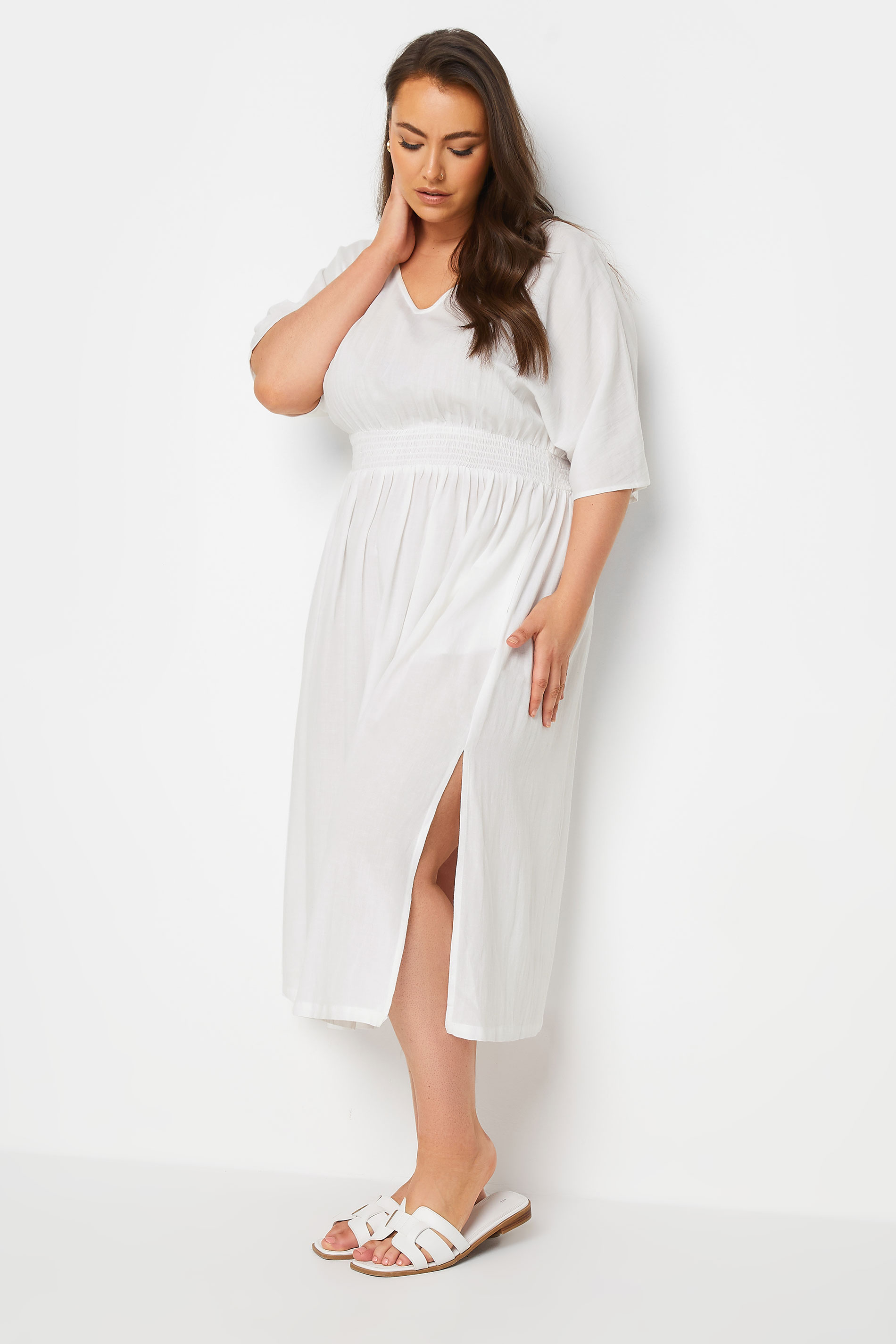 This dress will be a summer favourite! Made from a cotton fabric that contains linen, this dress features a shirred design, a split hem and two pockets. Pair with sandals or heels to dress this outfit up or down.
