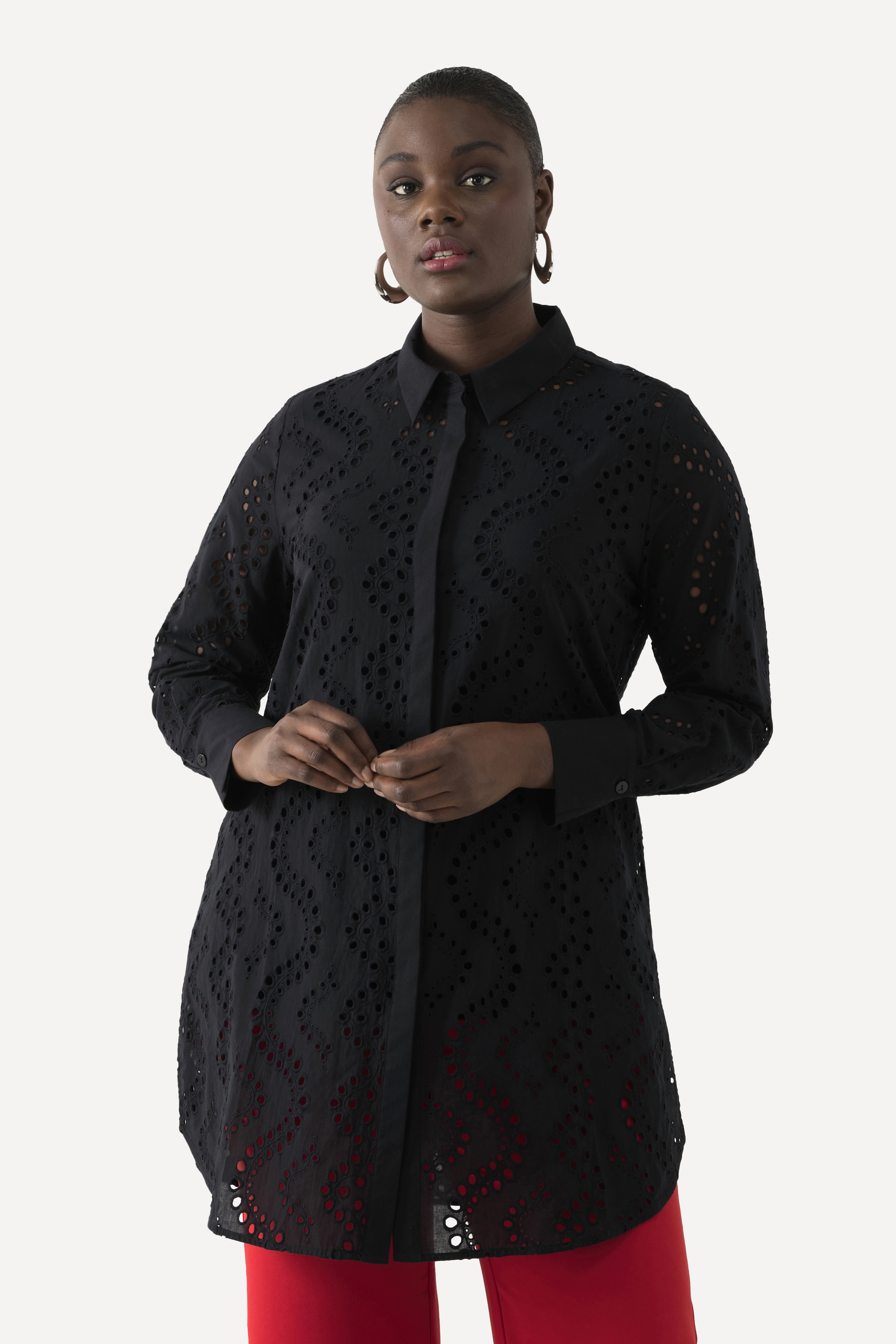 Longbluse Lochstickerei Hemdkragen Langarm 9511827