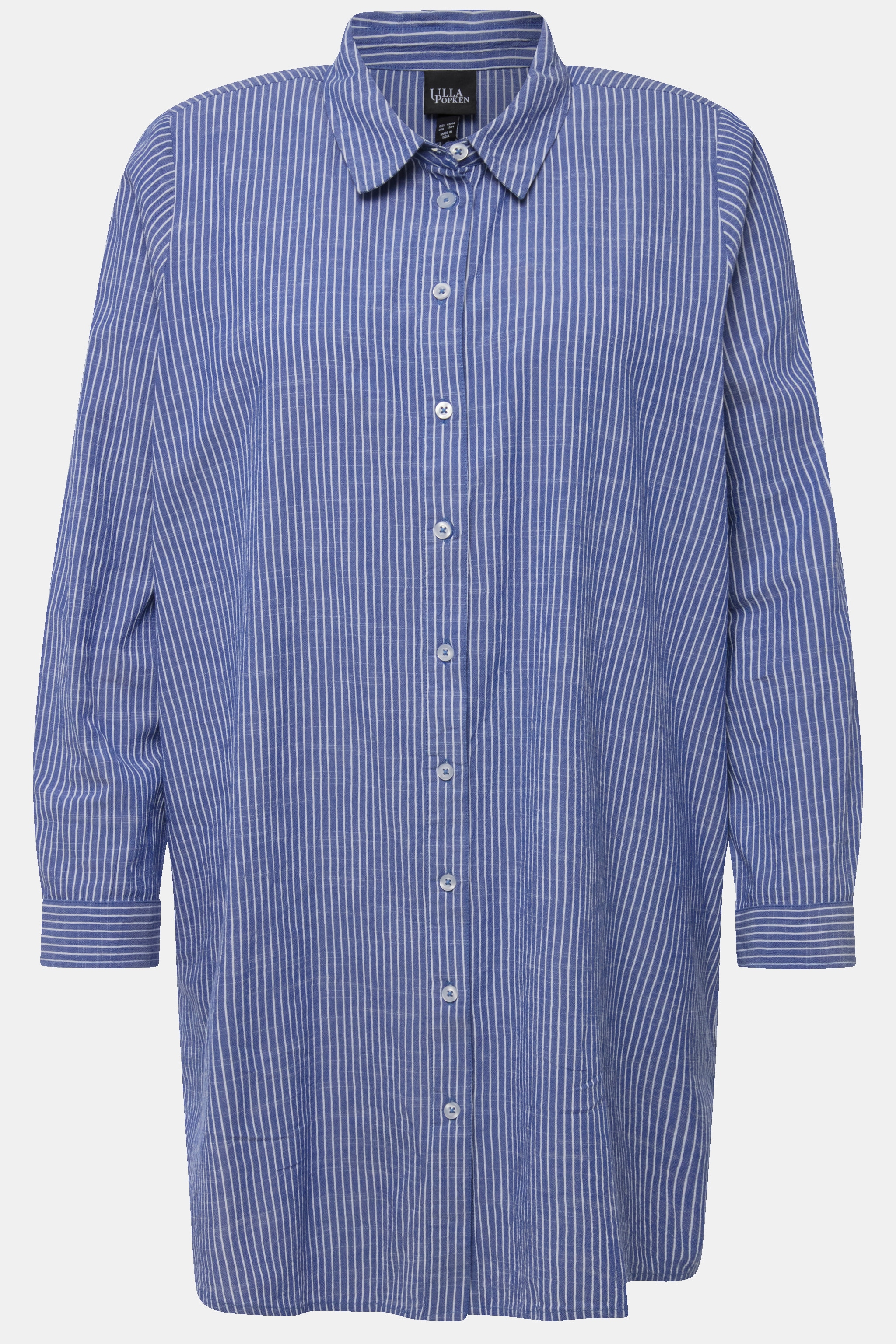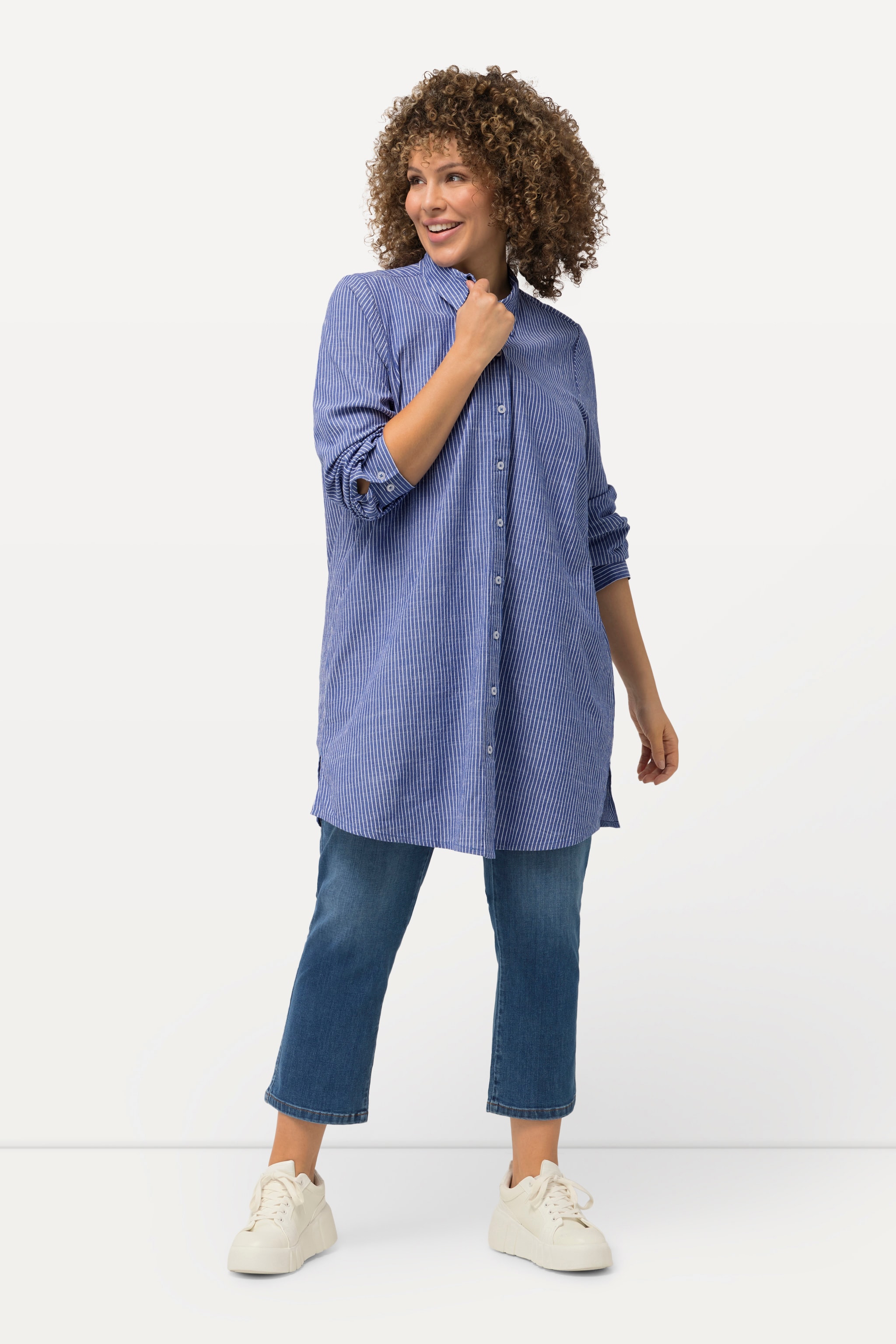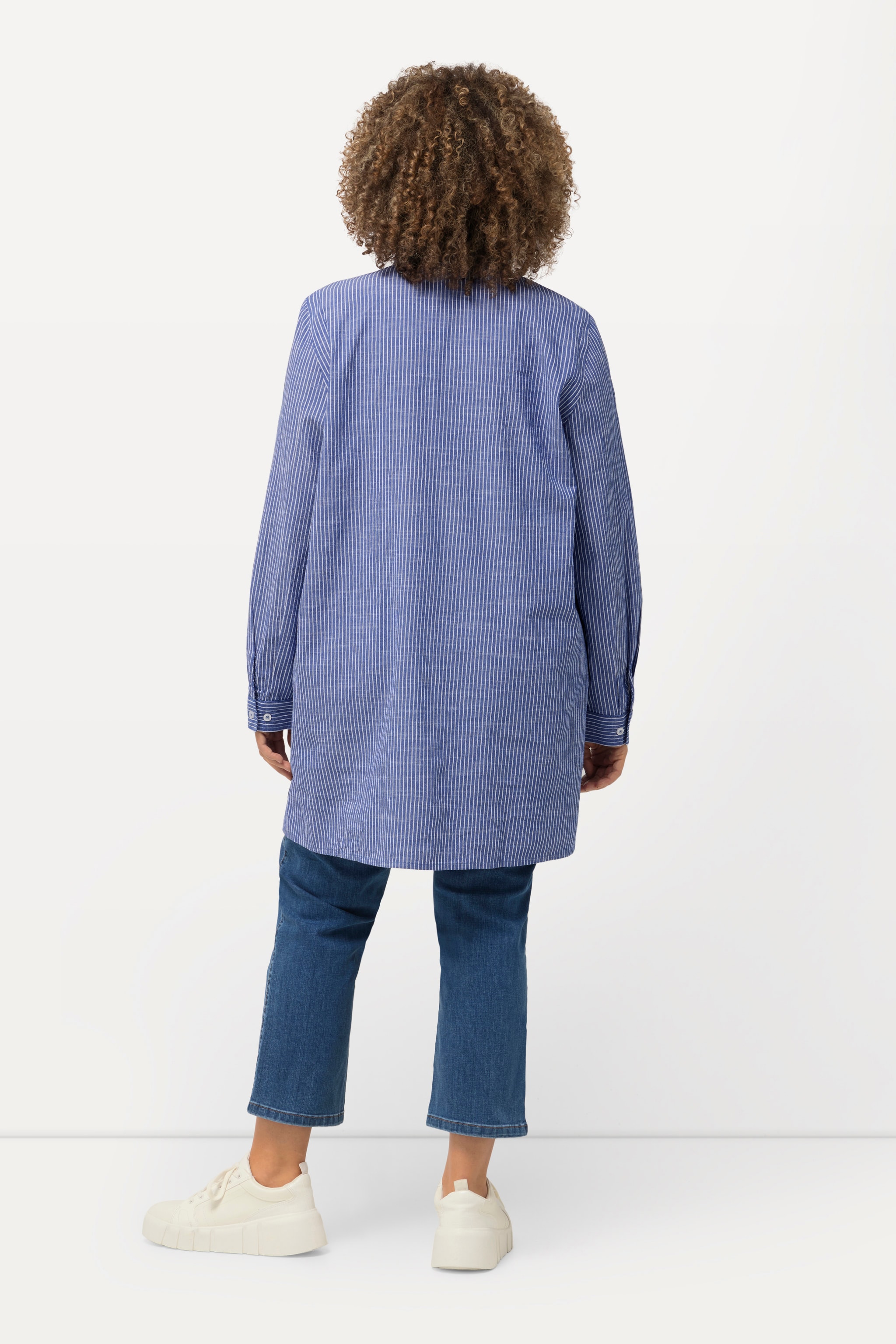 Longbluse Streifen A-Linie Hemdkragen Langarm