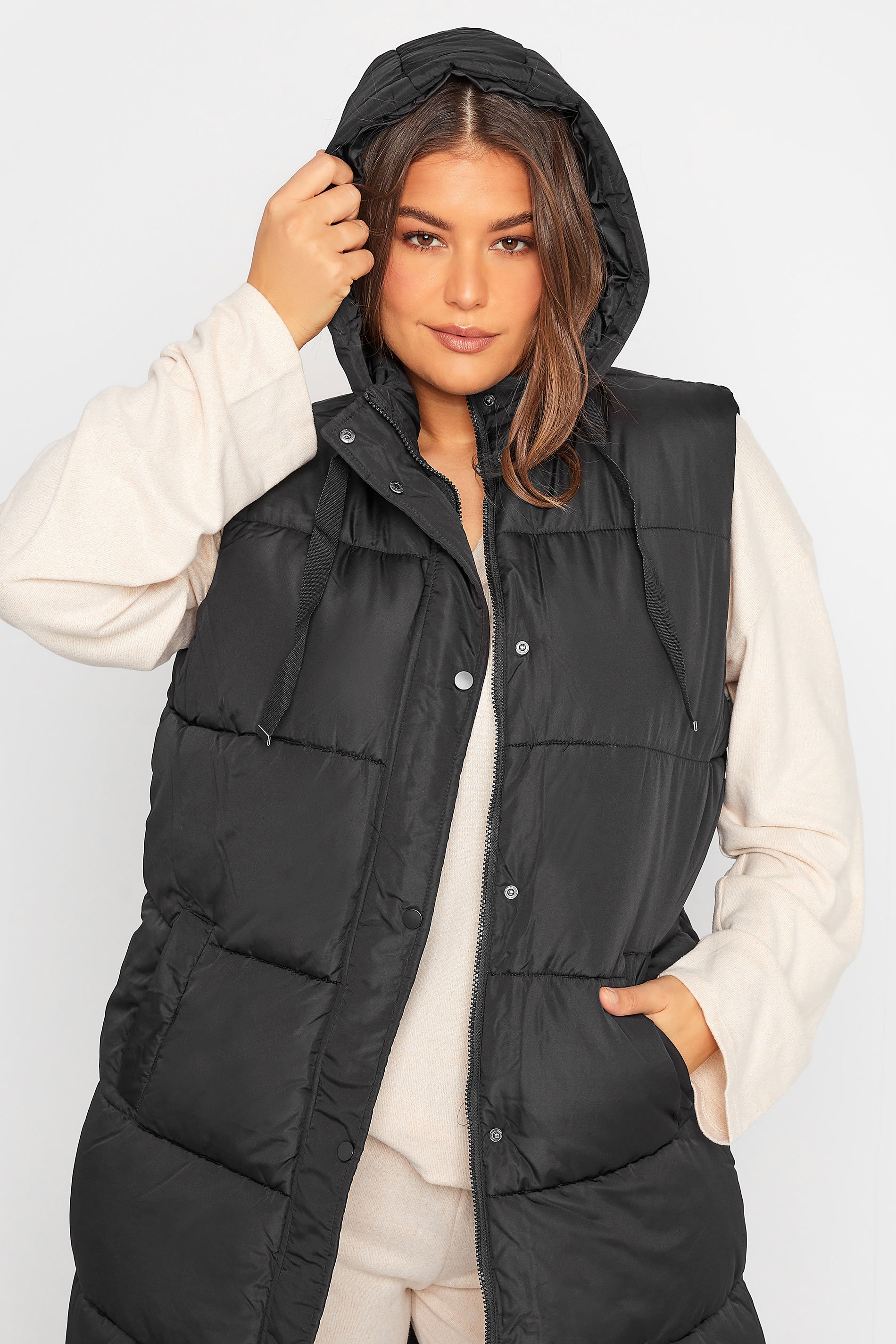 A classic with a longline twist. Comfortable in an insulating woven material, this LTS puffer gilet features side pockets, a functional hood drawstring, as well as a popper and zip fastening. Layer with a tracksuit and trainers, or dress up with heeled boots and a turtleneck for style without the effort.