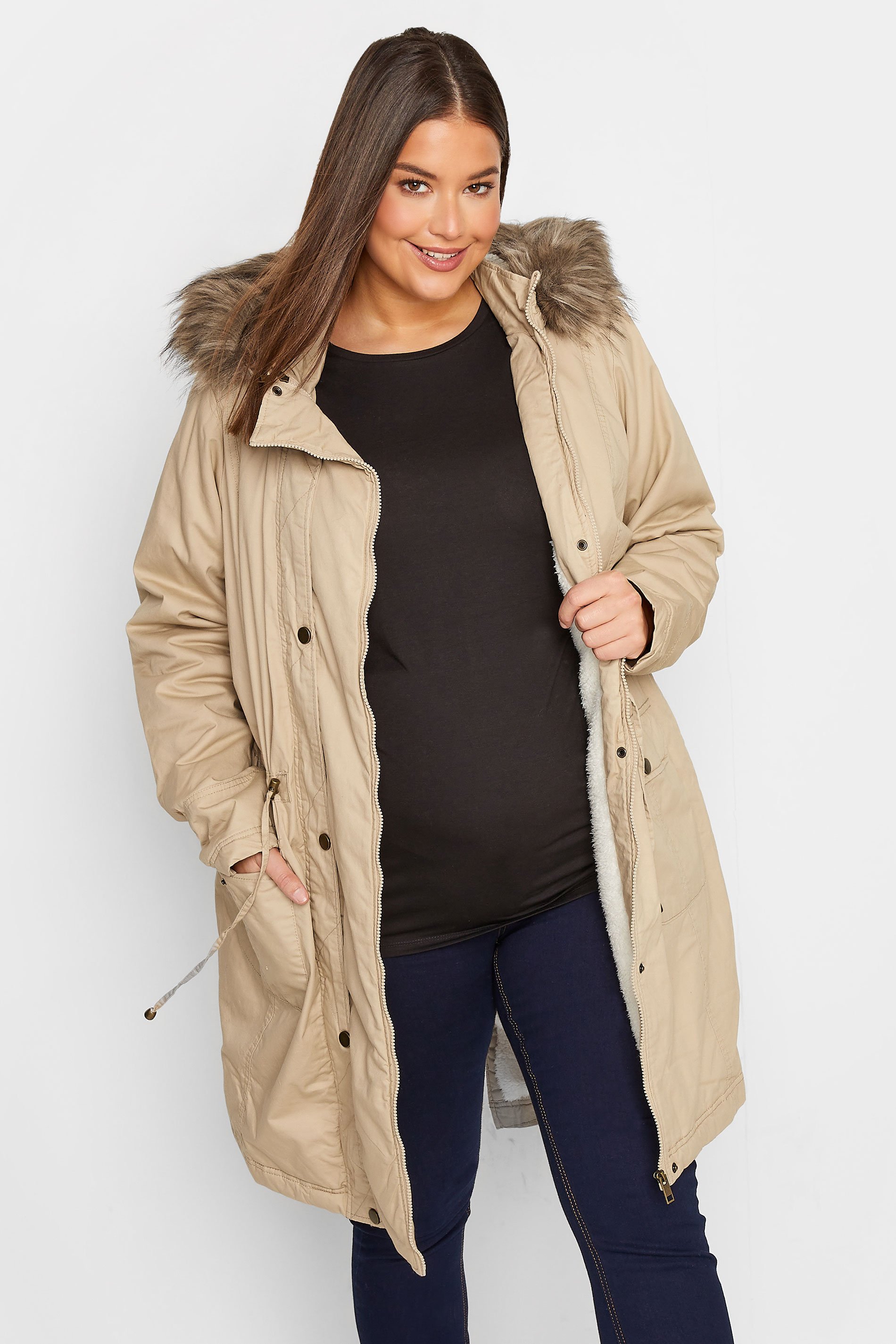 This new-in maternity midi parka coat is a must-have layer for the colder weather. Made form a durable woven fabric, it features a detachable fur trim, adjustable toggle waist and two front pockets. Fitted with a removable front panel, this coat was designed to grow with you and your bump for maximum comfort, seeing you through pregnancy into early motherhood.