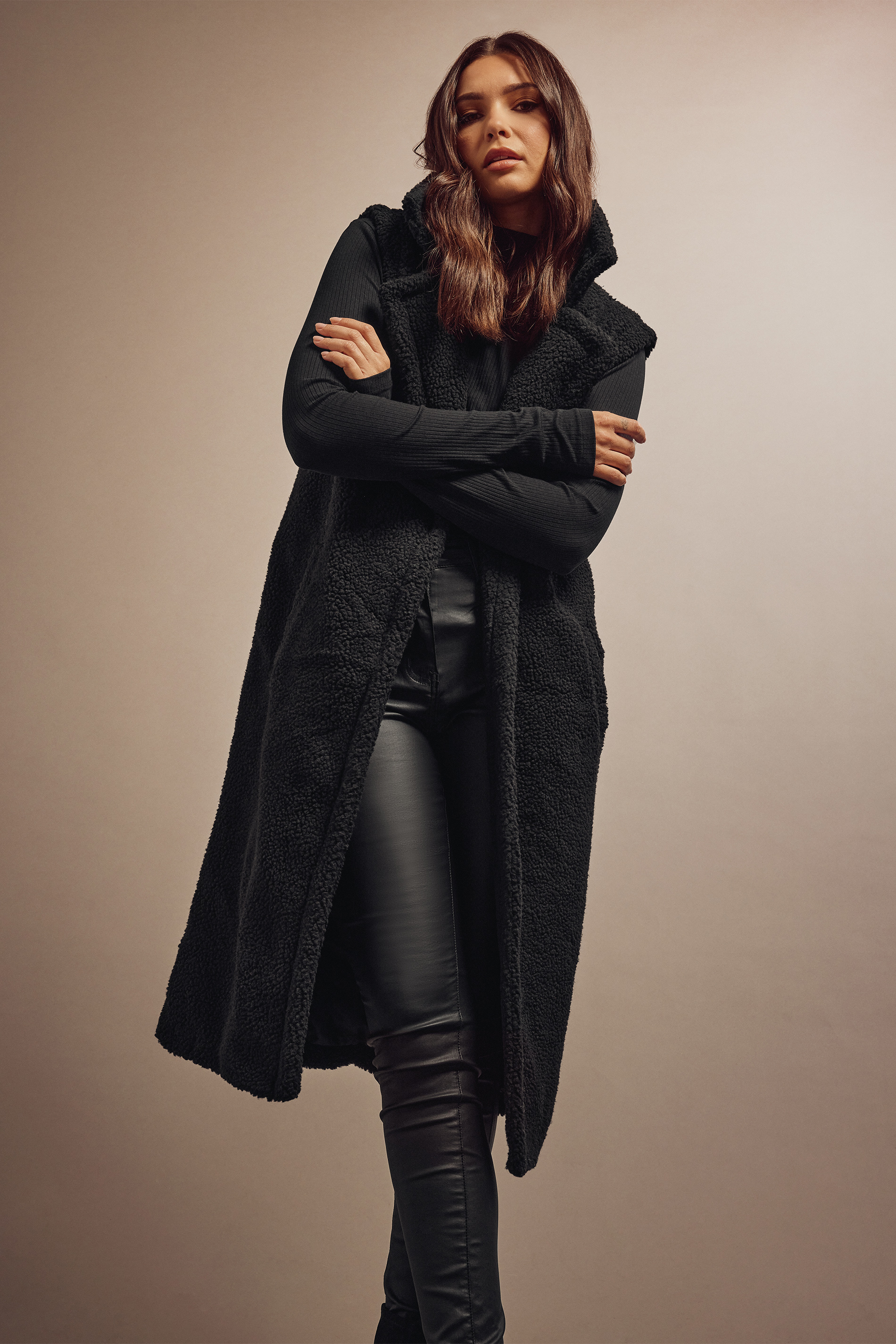 In need of an extra layer? This LTS gilet is a must-have this season. Made from a soft teddy fabric, it features two side pockets, a collar and is complete at a midi length. Style over a jumper, jeans and boots for the ultimate autumn outfit.
