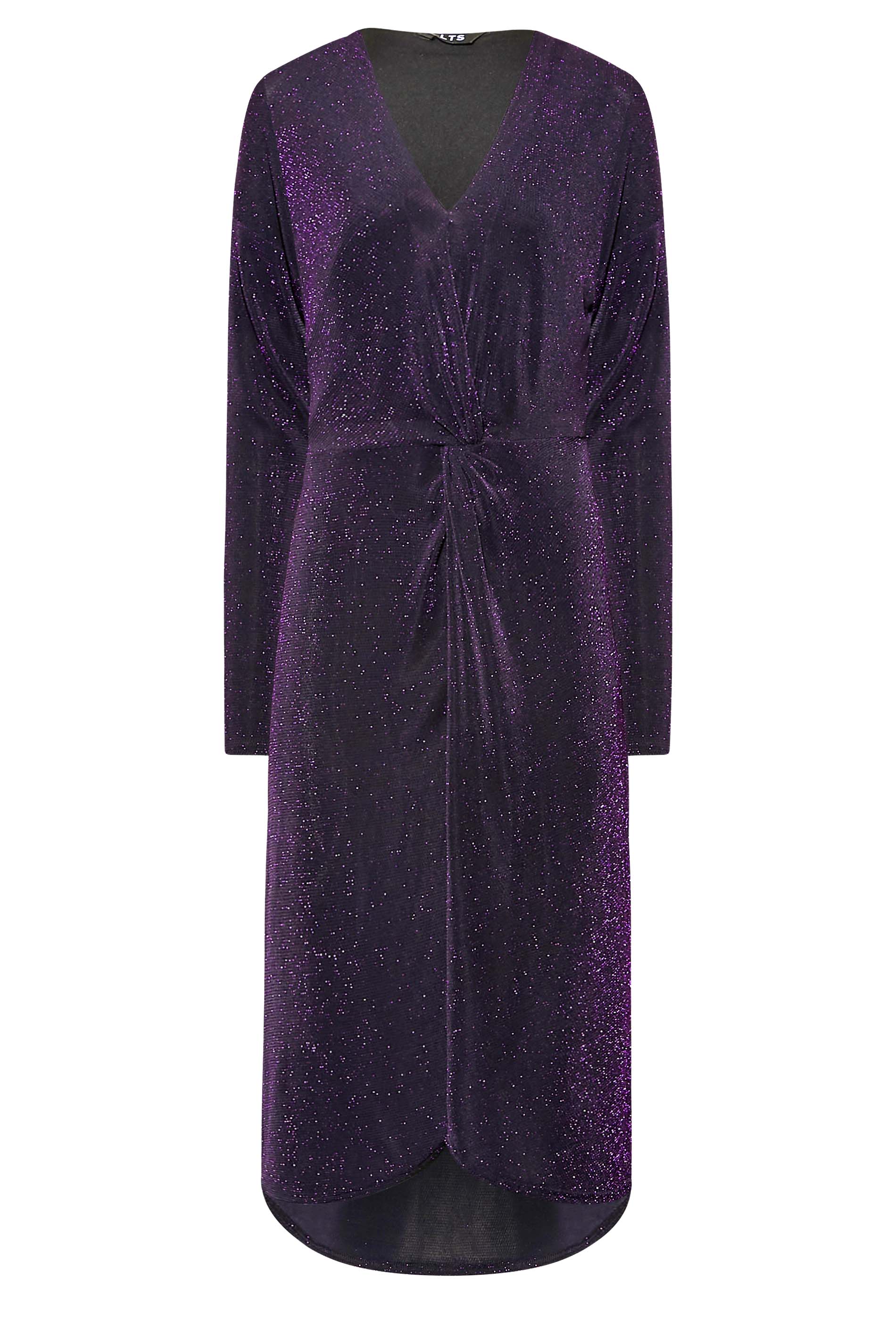 Amp up your occasionwear this season. This tall wrap dress features a v-neckline and twist detail with long sleeves, finished in a glitter fabric and midi length. Compliment with heels and a shoulder bag for your next special occasion.