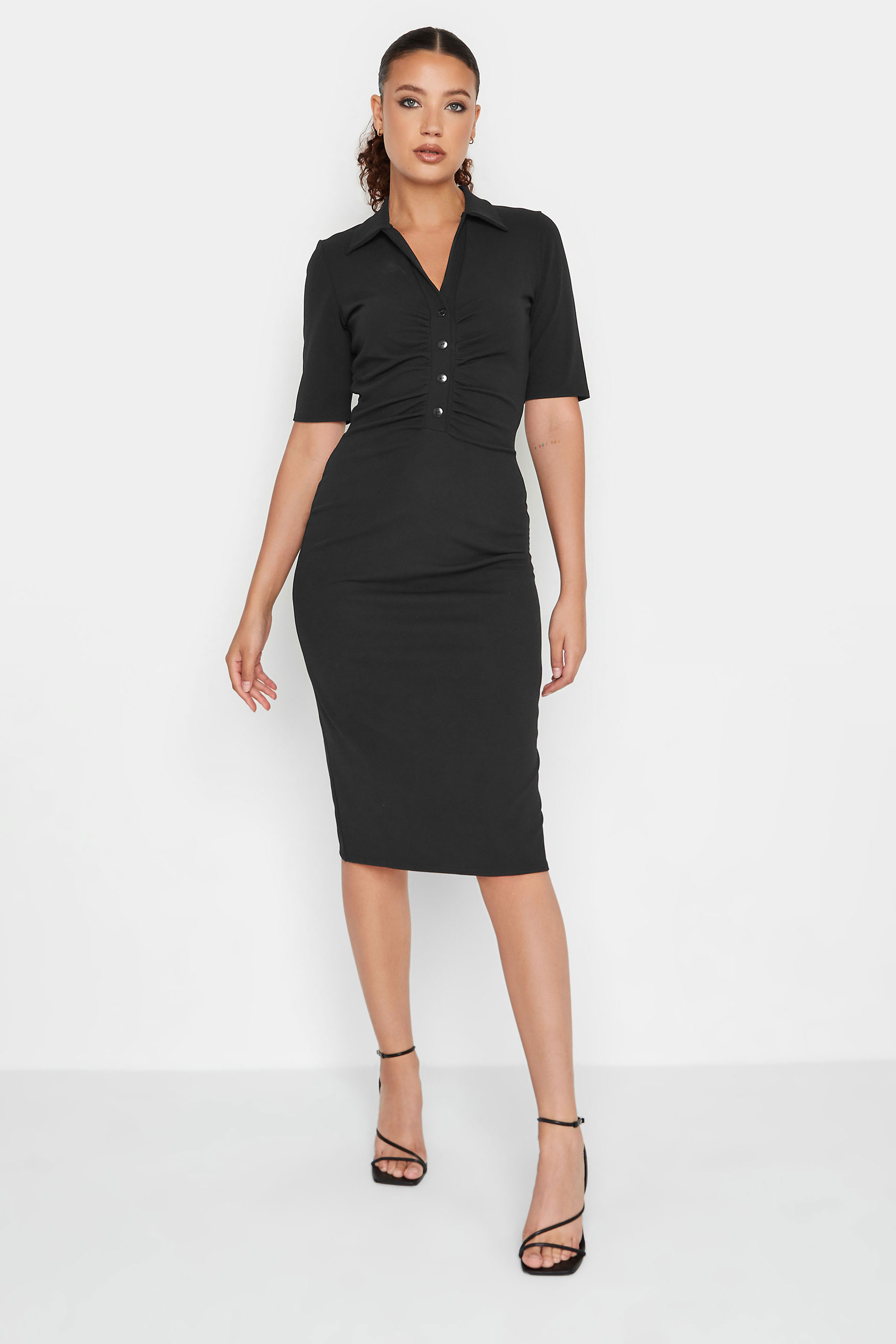 Go to work in style! Made from a comfortable jersey fabric this dress features a v-neckline, a classic collar, finished in a midi length. Wear with heels for a look you can wear with confidence.