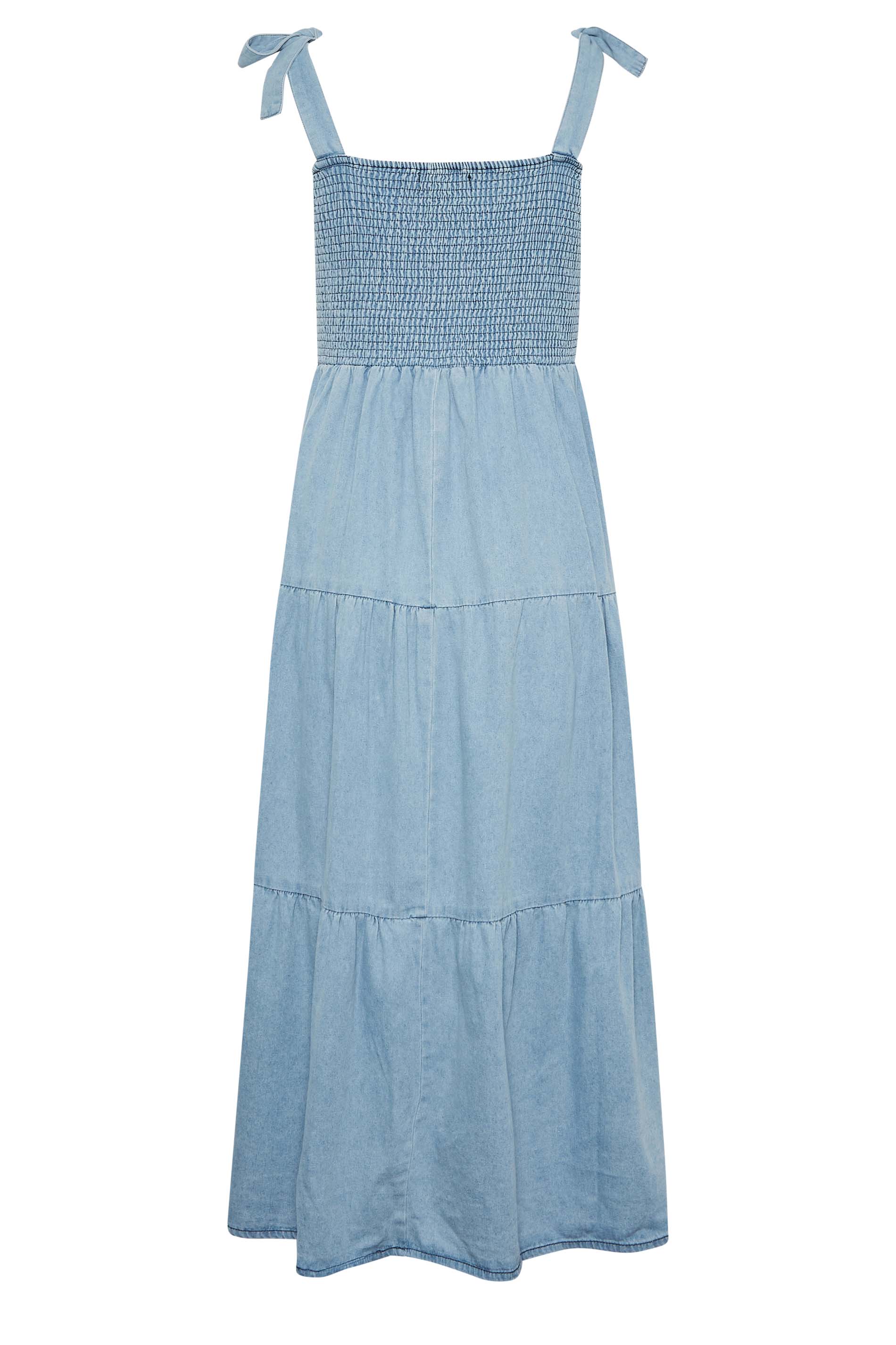 A staple for the season ahead. Made from 100% cotton, this LTS denim dress features shirred upper fabric for a comfortable fit with adjustable tie straps in a tiered style, complete at a midi length. Simply style by layering over a t-shirt paired with trainers for a weekend look.