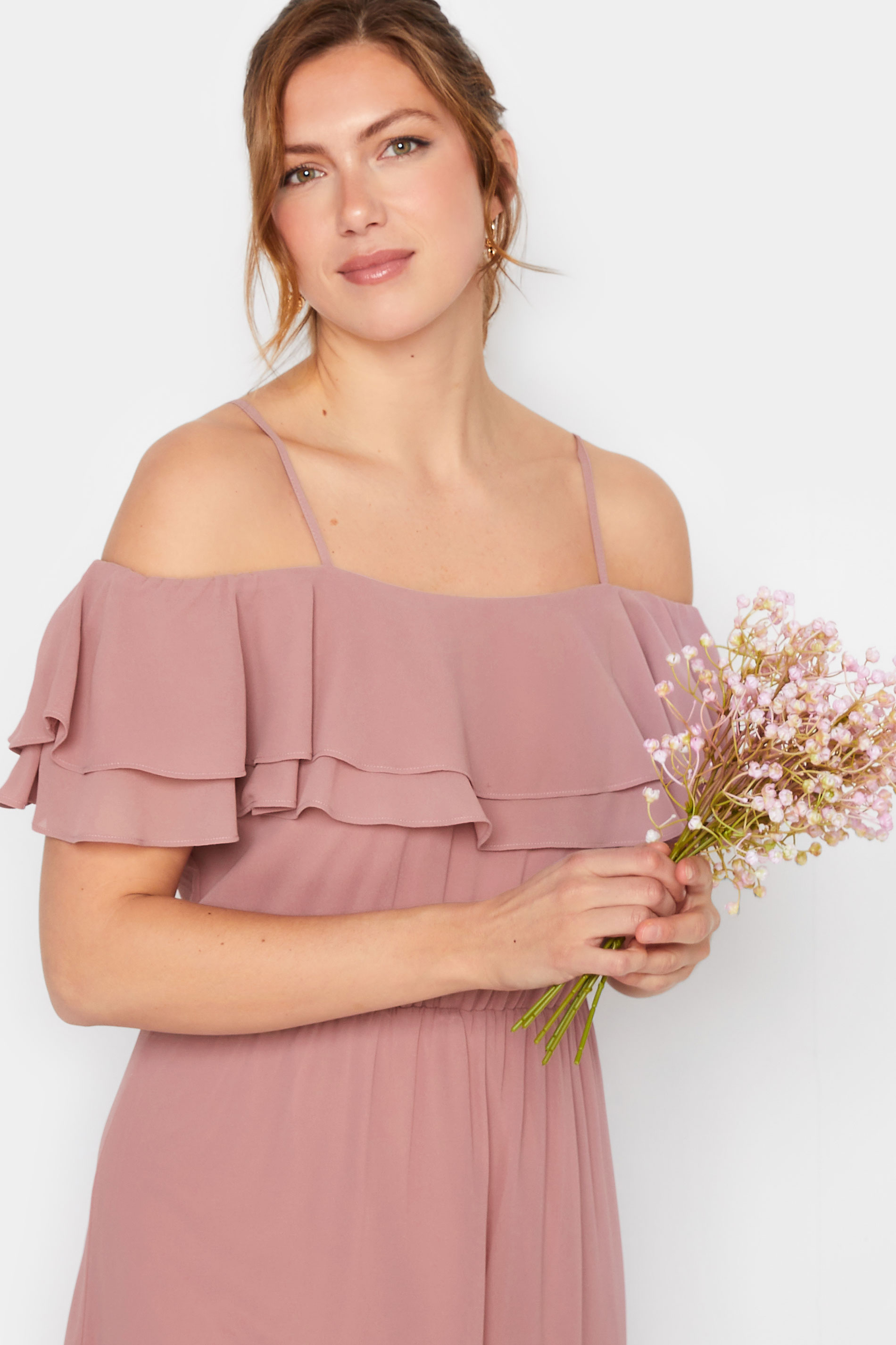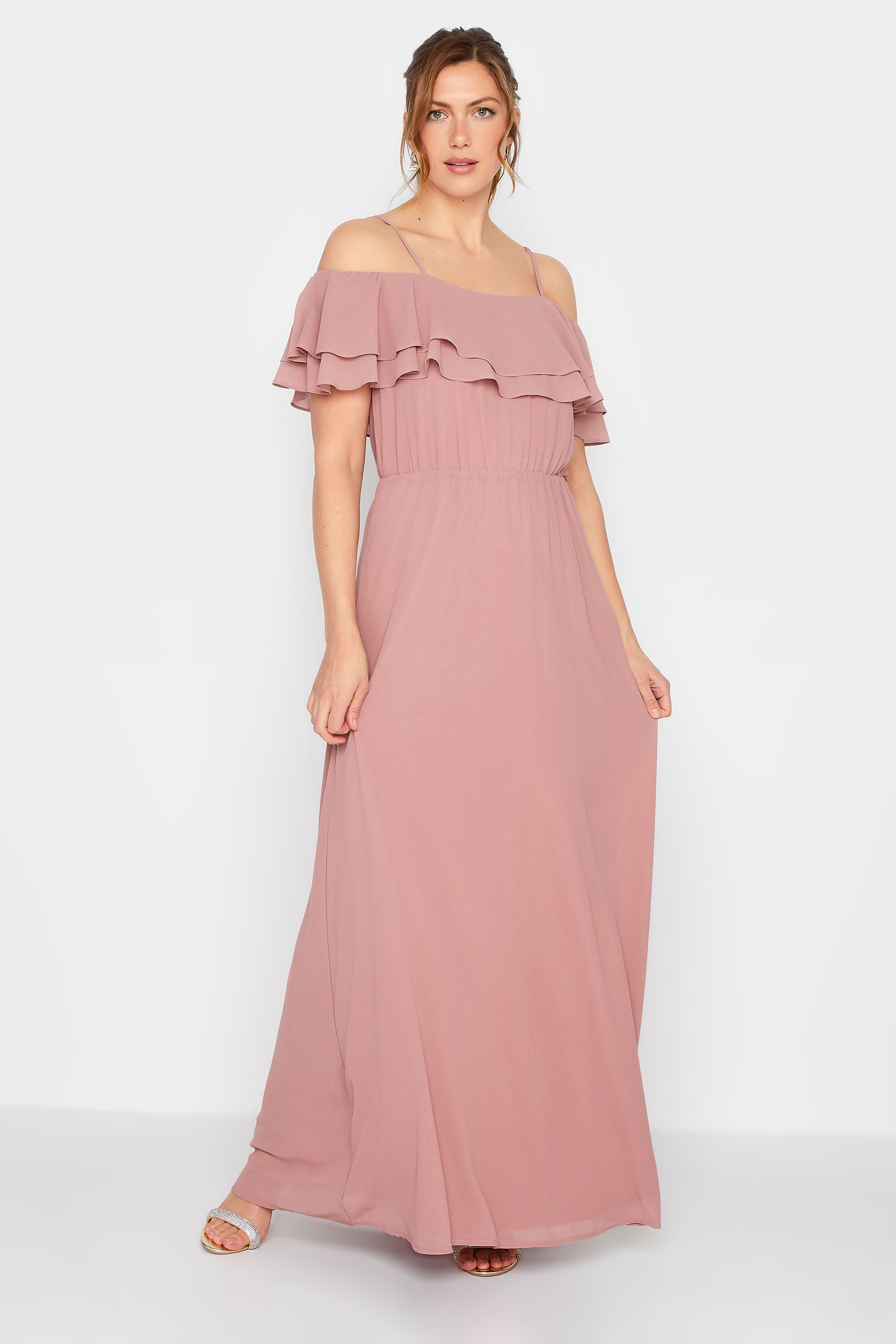 This new-in maxi dress is the perfect option for bridesmaids or attending guests. Made from a comfortable chiffon fabric, it features adjustable straps, with ruffle front detail and an elasticated waistband. Style with heels and a clutch bag for an effortless look that you can wear with confidence.